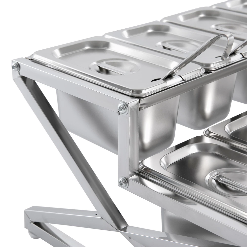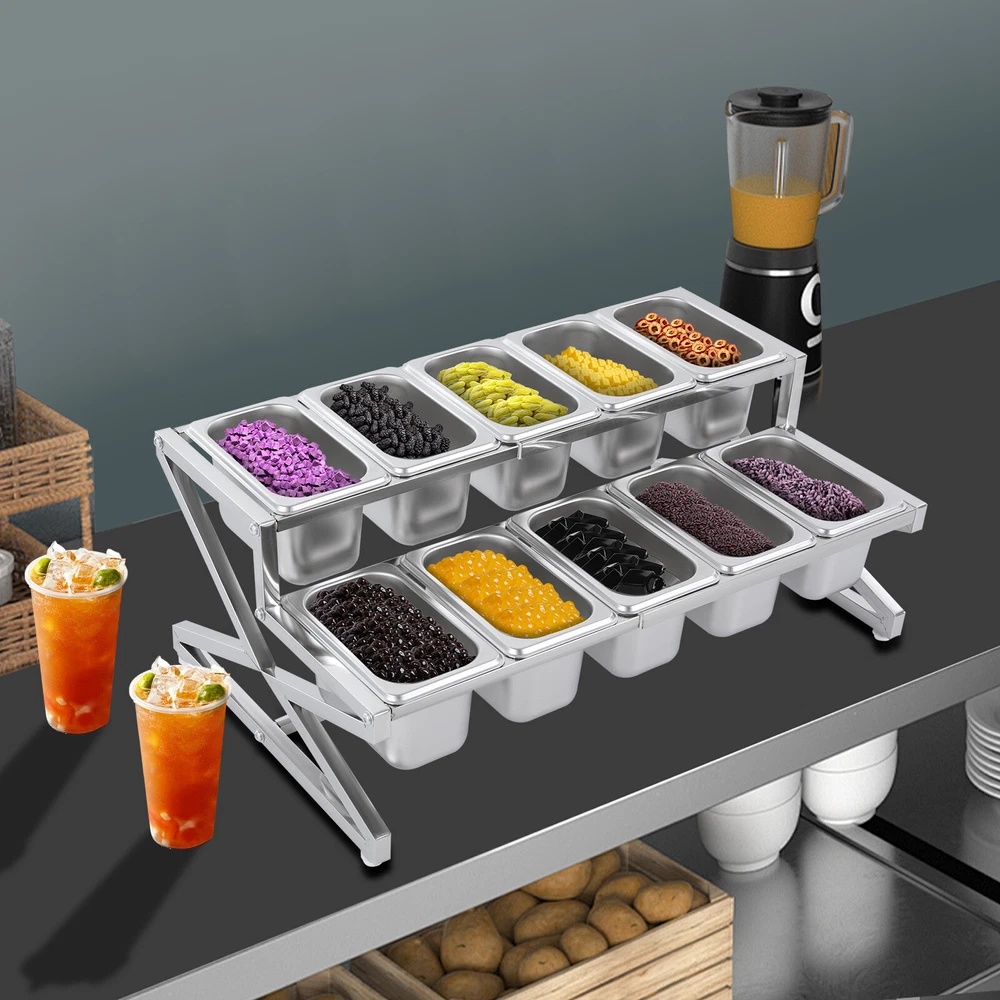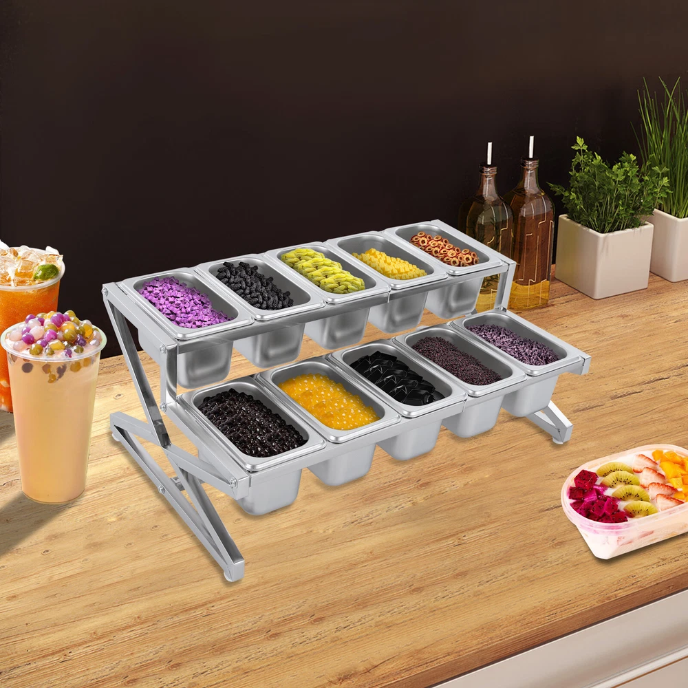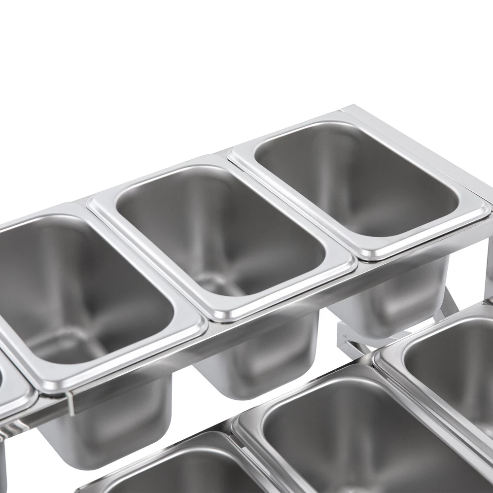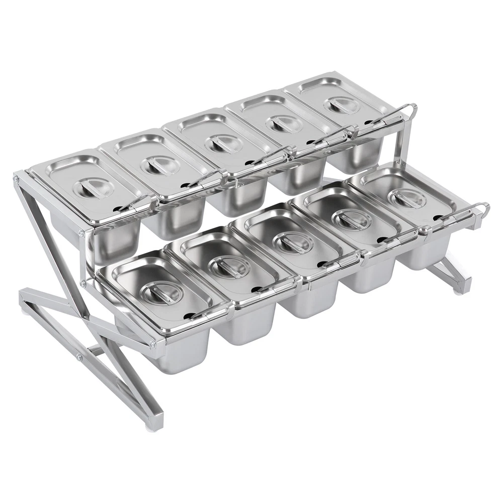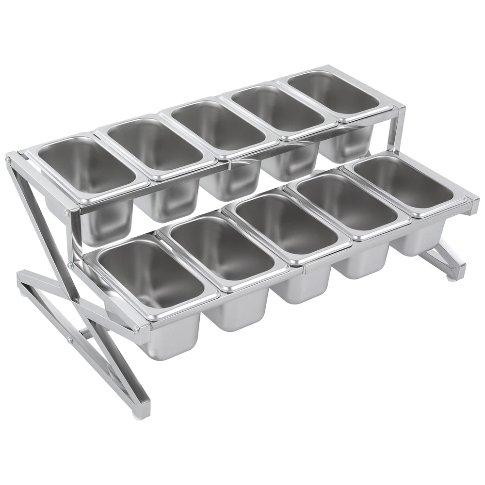Description This expandable spice rack set allows you to organize your kitchen spices in a unified way, so you can say goodbye to the chaotic arrangement. The product is made of stainless steel with a triangular structural design that is durable and resistant to warping. It features 10 stackable pans and a length-adjustable rack, so you can easily store the product in cabinets when not in use, or accommodate different numbers of pans according to your needs, making your kitchen tidier and your cooking easier. Key Features Build to Last: The 201 stainless steel is rust-resistant, abrasion-resistant, and hard to deform, which makes this product sturdy and durable. 10*spice Box W/ Handle Organizer Shelf,2-tier,201 Stainless Steel Seasoning Rack Description This expandable spice rack set allows you to organize your kitchen spices in a unified way, so you can say goodbye to the chaotic arrangement. The product is made of stainless steel with a triangular structural design that is durable and resistant to warping. It features 10 stackable pans and a length-adjustable rack, so you can easily store the product in cabinets when not in use, or accommodate different numbers of pans according to your needs, making your kitchen tidier and your cooking easier. Key Features Build to Last: The 201 stainless steel is rust-resistant , abrasion-resistant , and hard to deform, which makes this product sturdy and durable. Expandable Design: The retractable length (14-25.6 inches) allows you to adjust it to fit different-sized platforms or let it carry different numbers of pans according to your needs. Strong Structure: The product with a triangle structure, thick materials, and reinforced screws allows it to hold less than 88.18 lbs without deformation or wobbling. User-friendly Design: Each lid comes with a handle and a small opening for the spoon to protect against dust and moisture while allowing you to easily access it with its small spoon to avoid flavor cascading. Excellent Spice Organizer: The 10 1.59 quart pans allow you to store spices, seasonings, dried fruits, dried fruits, or other food items in categories for easy daily access while saving space in your kitchen. Easy to Store: The rack can be retracted to 14 inches and the pans are stackable, so you can easily store them in your cabinets when not in use. Effortless Clean: Individually removable pans and smooth surfaces allow you to easily disassemble them for cleaning with water or a damp cloth. Customer Service: We aim to provide quality products and services. If you have any problems, please feel free to contact us. We will reply and solve the problem for you as soon as possible. Details Non-slip Feet: They provide the product with sturdy support without easily sliding on a smooth surface and protect the table surface from being scratched. Rounded Corners: The corners are smooth and rounded, so you can use them without hurting or scratching your hands. Application The products can be used to store seasonings, spices, sauces, jams, sweet soups, coffee beans, fruits, vegetables, and other food products in homes, commercial kitchens, pantries, cafes, beverage stores, restaurants, cafeterias, food trucks, and catering events. Specifications Color: Silver Style: Modern Material: 201 Stainless Steel Mount Type: Table Standing Assembly Required: Yes Number of Tiers: 2 Food Pan Quantity: 10* 1/9 Pans Load Bearing Capacity: <40kg/88.18lbs Each Pan Capacity: 1.5L/1.59qt Product Size: 35.5-65*35.5*20cm/14-25.6*14*7.9in Packaging Size: 41*31*16cm/16.14*12.2*6.3in Gross Weight: 4.3kg/9.48lbs Net Weight: 4kg/8.82lbs Package Included 1*Stainless Steel Frame 10*Pans 10*Lids 10*Ladles 1*Chinese Installation Instruction Other Needed Accessories Notes Please check the size carefully before ordering. Please allow the slight color difference caused by the shooting light and 1-3cm error due to manual measurement, and make sure you do not mind before you order. Payment Delivery details Terms of sales About us Contact us Payment We accept ebay payment 。 Fees such as import duties, taxes are not included in the item price or shipping costs. These charges are the buyer's responsibility. Delivery details Shipping: 2-9 working days to: USA Terms of sales We maintain high standards of excellence and strive for hundred percent customer satisfaction. Feedback is very important to us. We hope that you contact us immediately before you give neutral or negative feedback, so that we can address your concerns. It is impossible to address issues if we do not know about them! About us Your satis faction is our ultimate goal. We work hard to earn your trust and future business. Our certified technicians have tested each item before shipping. The unit comes with 1 year limited warranty on all manufacturing defects. a) If you receive a defective item, you may return it or ask for a discount. Please contact us within 14 days after you receive the package. b) What you returned must be intact and in its original packaging as re? u. Customer is responsible for shipping costs of the returned item. c) We will cover the cost of shipping back t with the shipping rate indicated in the registration page. We will send you a new unit or refund the full payment you paid. Thank you. Contact us Business Hour Business Hour: Monday To Friday: 8:30 AM to 5:00 PM (Beijing China time) Due to time zones, our reply to your questions may not be immediately. But within above working time, we will reply your email within 24 hours. If it's non-workdays, please kindly be patient and wait till Monday. Please contact us with ebay message. Please feel free to contact us if you have any questions. Monday To Friday: 8:30 AM to 5:00 PM (Beijing China time) Due to time zones, our reply to your questions may not be immediately. But within above working time, we will reply your email within 24 hours. If it's non-workdays, please kindly be patient and wait till Monday. Please contact us with ebay message. Please feel 