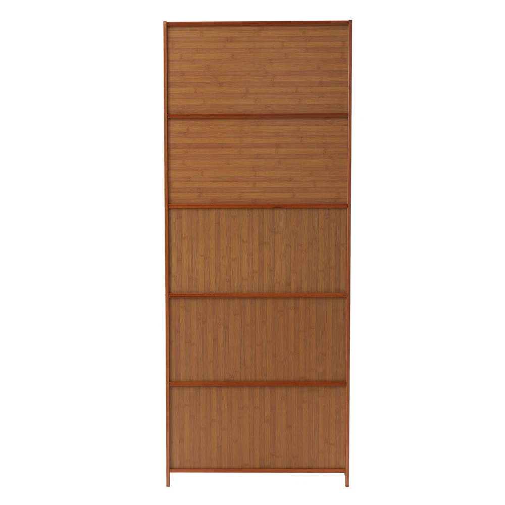 10 Tiers Bamboo Shoe Rack Cabinet, Wood Shelf Stand Storage Book Shelf Organizer 10-Tier Bamboo Shoe Rack Cabinet Wooden Shelf Stand Storage Book Shelf Organizer How to assmeble? Remember to override the side of the door suction with the iron plate 1. Remove the door suction laminate and the small screws for the door suction 2. Fix the door suction laminate to the side brackets with the large screws 3. Take out the back plate and insert it along the groove of the bracket. Remember to insert the metal strip into the hole, not into the groove Do not screw the front screws yet 4. Remove the door suction laminate and the back panel in turn 5. Take out the top laminate and the inner door laminate and install them with large screws 6. Remove the metal strip and insert it into the side brackets in turn. Door puller, door spacer with medium screws The metal strips are inserted into the recesses of the brackets As the screws are not screwed in step 5, the side brackets can be gently broken open Insert the metal strips into both ends of the door 7. Remove the door panel, door gasket, door pull ring and metal tabs and install them as shown in the picture 8. Break off the side brackets to the right, then snap the door panel into the brackets 9. Install the remaining door panels in sequence and tighten the screws. 1.Description Are you still troubled by the messy entryway? Are you still looking for a suitable entryway shoe rack? This shoe cabinet can not only give you a neat door but also meet your shoes storage needs. Its fully enclosed design protects against dust and moisture, while you can open the door to ventilate and disperse the smell, giving your shoes a dry, clean storage environment. It will be the ideal choice for you! Specification Material: Nan Bamboo and Laminate Finish: Varnished Color: Brown Doors Included: Yes Shoes Capacity: 30 Pairs Assembly Required: Yes Mount Type: Floor Mount Shape: Rectanglar Packing Size: 181*36.2*16.5cm/71.25*14.25*6.49in Each Tier Height: 15cm/5.91in Product Size: 70*32*172cm/27.58*12.60*67.72in Gross Weight: 18kg/39.68lbs Net Weight: 17kg/37.47lbs Bearing Weight of Each Tier: 20kg/22lbs 2.Package Included 1 x Shoe Cabinet 1 x Chinese User Manual All Accessories for Installation 3.Key Features High Good Material made of high-quality Natural Nan bamboo and laminate with a varnished surface, which is sturdy and waterproof to ensure a long service life Top Surface Platform can be used to place bags, keys, umbrellas, and other personal items , and you can also place some ornaments to decorate this shoe rack, which is pleasing to the eye Water-Resistant The smooth, waterproof surface makes it easy to clean. You can easily wipe off dust and stains with a damp rag. Durable Handle with a sophisticated rounded handle that fits comfortably in your hand and allows you to open and close the door with ease. Push-in Invisible has a concealed sliding design that slides up and pushes into the top for storage, so it won't take up external space. In addition, the magnetic iron tabs attach the doors more securely High Load-bearing Capacity The solid construction and thicker laminate ensure a strong load capacity of up to 20kg/44lbs per tier to meet your daily needs. Large Capacity: This 10-tier shoe cabinet can hold up to 3 pairs of adult shoes per tier, providing enough storage space to keep family members' shoes organized, and free from cluttering up the entryway for a cleaner and tidier room. All-around Protection: The back-sealed composite baffle will provide all-around protection for your shoes to avoid dust or being moistured. High-quality Material: It is made of high-quality Nan bamboo and laminate with a varnished surface, which is sturdy and waterproof to ensure a long service life. The natural bamboo is very healthy and environmentally friendly, which will not emit harmful gases or substances and makes it more secure for your family to use. Tiered Storage: Its multi-tiered design makes it easy to sort and store your shoes, either by type or by the owner, for easy selection and access. The intermediate laminates are also freely removable according to your needs, enabling the storage of tall boots or high heels. Versatile Decoration: The overall design of this shoe cabinet is simple and the color is vintage brown. Whether it is placed at the door or in the living room, it is very harmonious and brings a warm atmosphere to your space. Extra Storage Platform: The top platform can be used to place bags, keys, umbrellas, and other personal items, and you can also place some ornaments to decorate this shoe rack, which is pleasing to the eye. Easy to Assemble: The package includes installation instructions and the required accessories for your convenience. You can enjoy the pleasure of assembling it. Stable Placement: The wider tier plate provides better accommodation for larger sizes of shoes. At the same time, the raised strips on the front edge of the tier help to keep shoes securely in place and prevent them from falling out. High Load-bearing Capacity: The solid construction and thicker laminate ensure a strong load capacity of up to 20kg/44lbs per tier to meet your daily needs. Space Saving : This shoe cabinet makes full use of the vertical space and occupies a small area(27.58*12.60in), so it can be placed in every corner of the home without taking up too much space. Easy to Clean: The smooth, waterproof surface makes it easy to clean. You can easily wipe off dust and stains with a damp rag. 4.Details Raised Legs: The raised leg avoids direct contact with the floor, which effectively protects against mold and moisture for a longer lifespan of the cabinet. It also makes it easier to clean the floor at the bottom of the cabinet. Novel Cabinet Door: The cabinet door has a concealed sliding design that slides up and pushes into the top for storage, so it won't take up external space. In addition, the magnetic iron tabs attach the doors more securely. Sophisticated Handle