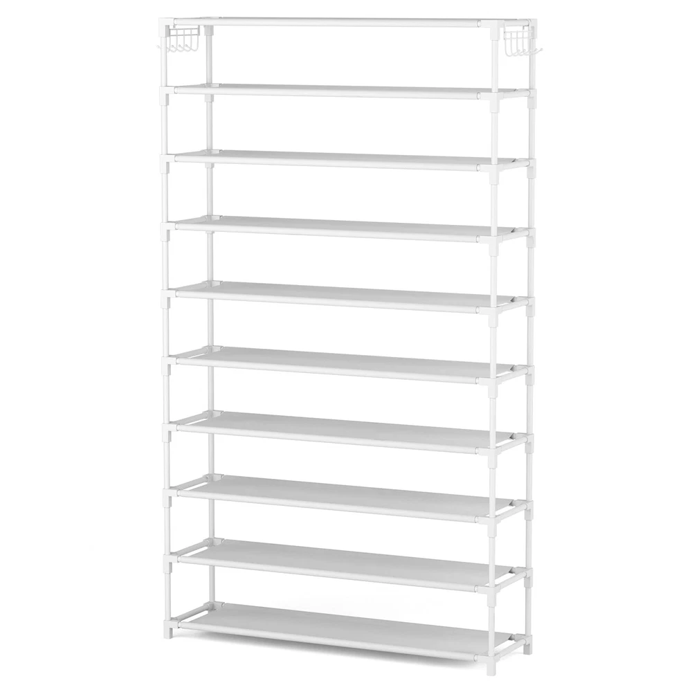 10-Tier Tall Shoe Rack with Metal Shelves, Hooks & Storage Pockets