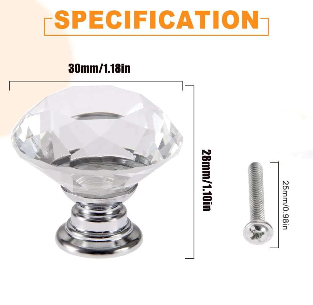 10X 30MM Diamond Crystal Glass Door Knob Drawer Kitchen Cupboard Cabinet Handle Features: Design & Aesthetic: Elegant & Decorative: The diamond crystal glass knobs add a touch of elegance and sophistication to any room. Brilliant Reflection: The crystal knob shines in the light, reflecting various brilliant colors, enhancing the overall ambiance of the room. Versatile Use: Suitable for a variety of doors and drawers, including wardrobe doors, cabinet doors, cupboard doors, and more. Material & Build: High-Quality Materials: Made from clear cut crystal glass and durable aluminum alloy. Finish: Features a shiny polished chrome finish, adding a sleek and modern look. Comfort & Usability: Comfortable Grip: The crystal knob has a wonderful feel in the hand, offering a comfortable and perfect texture. Practical & Economical: A simple yet effective way to decorate and refresh any room. Specifications: Type: Diamond Crystal Glass Door Knobs Color: Clear Material: Clear cut crystal glass and aluminum alloy. Finish: Shiny Polished Chrome Size: Diamond Shape: Diameter: 1.18 inches (30mm), Height: 1.18 inches (30mm). Screws: Length: 0.98 inches (25mm), Diameter: 0.16 inches (4mm). Attention: The screws provided are 25mm in length and may not fit all furniture. Additional screws may need to be purchased for proper installation. Package Includes: 10 x Diamond Crystal Glass Door Knobs Shipping Payment Return & Refund policy Feedback Customer Support - Contact Shipping FREE SAME BUSINESS DAY MONDAY- FRIDAY SHIPPING FROM USA. All orders and payments received before 4PM EST (1PM PST) will be shipped the same business day. All other orders within 1 business day. No shipping on Weekends or US Public Holidays. No responsibility for any custom duty Shipping information will be updated when available. Payment We accept payment via PayPal. Use PayPal at checkout to pay with credit or debit. Immediate payment is required. Shipping will be arranged within 1 business day once payment is cleared. Return & Refund policy 1.We stand behind our items and offer 60 days warranty. All items are in new and working condition unless specified otherwise elsewhere in the description. 2.All Returns - defective or otherwise - MUST BE PREAUTHORIZED to guarantee refund or exchange. Please contact us to get an authorization and return address. 3.Buyer agrees to pay for the cost of re-shipment for undeliverable or wrong addresses. 4.Buyer is responsible for Return Postage as well as a 20% restocking fee if return/replacement is not a result of our mistake such as wrong item. 5.Replacement or Refund will be made upon receipt of the returned item. Please include tracking number so we can process ASAP. If you do not wish to wait for a replacement, please repurchase the item. 6.ALL REFUNDS will be processed via PayPal. Please double check via PayPal history and transaction for confirmation. PayPal will send it back to whatever you used to pay within 3-5 days. Feedback We strive to provide the best products and services. If anything about your transaction did not meet expectations, please CONTACT US and give us the opportunity to make things right. We are always here to help. Customer Support - Contact Please do not hesitate to CONTACT US. You can message 24/7 on eBay for all questions and inquiries. We will get back to you within 1-2 business days at the latest.