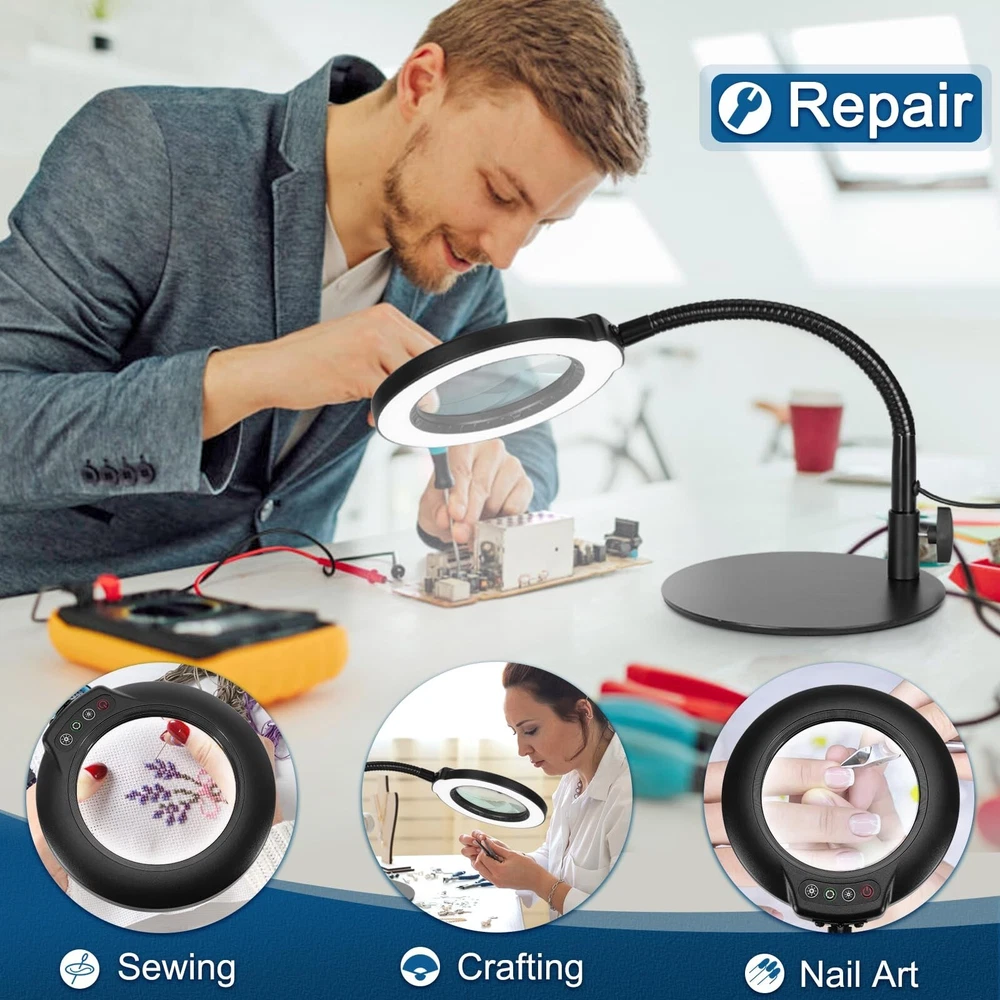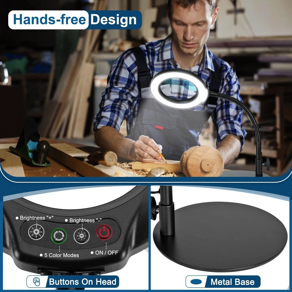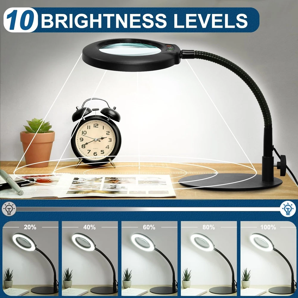 10X Magnifying Glass with Light, Flexible Gooseneck Lighted Magnifier with St...