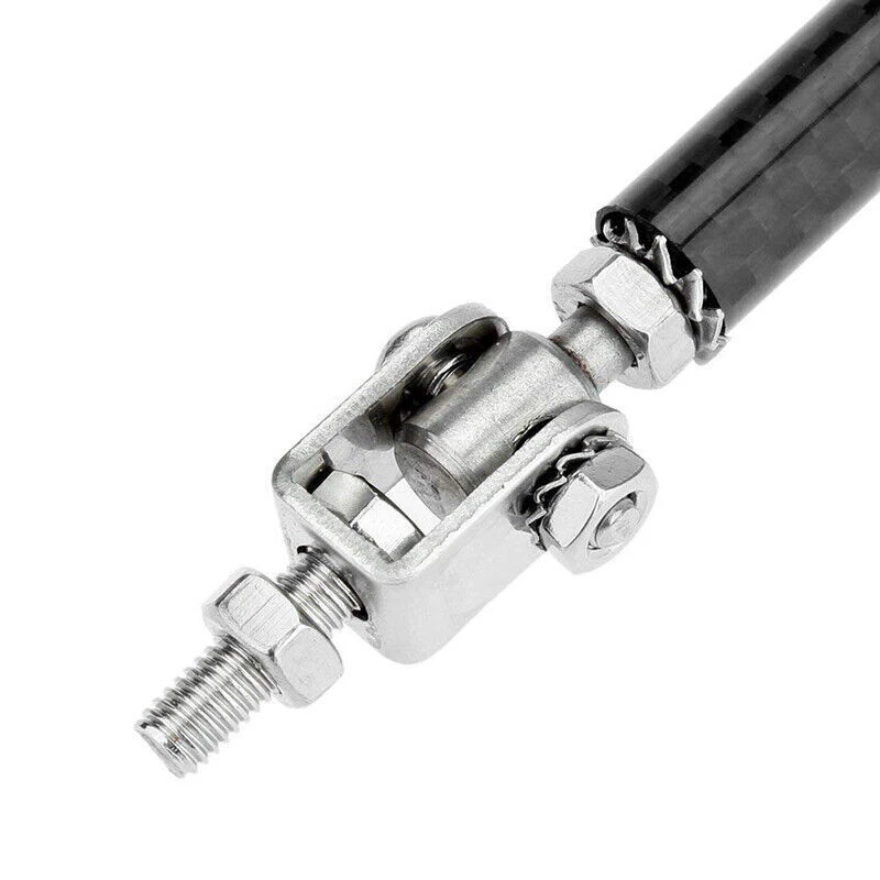 Specification: Type: Strut Rod Color: Black Fitment: Universal Material: Made with premium quality aluminum alloy chrome finish Length: about 10cm , Len gth can be adjustable Function: fixed to the body components front and back (surrounding, skirt, head and tail lips) Feature: - These include fully articulated top and bottom joins which allow them to be installed at any angle. - It will support your vehicle bumper lip splitter stronger with and awesome eye-catching look. - Made with premium quality aluminum alloy chrome finish, high quality and durable. - These front bumper lip support rods are used to reinforce your front splitter or rear diffuser. - It is universal fit for any cars, SUVs, trucks. - It will give your Car a eye-catching look in a minute. Installation: 1.Require drilling holes into the bumper lip diffuser to attach safely to the vehicle. 2.Professional installation is highly recommended. Package Included: One pair (2 pieces) front bumper lip splitter rod strut tie bar