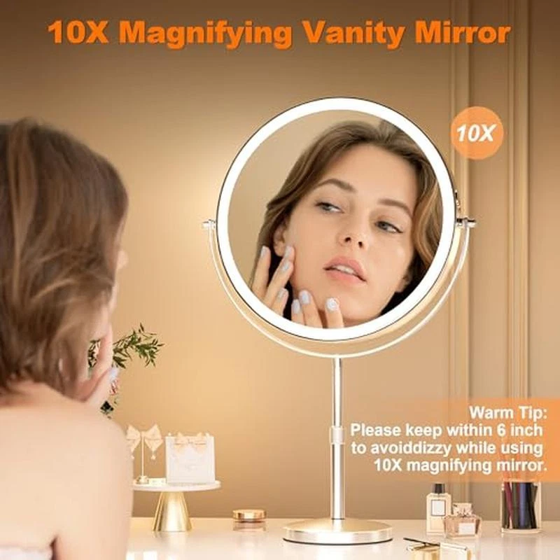 You may also like Simple Design Computer Writing Desk W/ Shelves Durable Compact Easy Assembly New 36.11 USD 38.01 USD Free shipping 5% off Eco-Friendly Computer Desk W/ CPU Shelf Two Drawer Storage Home Office Portable 39.01 USD 41.06 USD Free shipping 5% off 30ft Heavy Duty Waterproof 10/3 30A RV Extension Cord TT-30 Plug UL Listed New 37.06 USD 39.01 USD Free shipping 5% off Rechargeable Wall Mounted Lighted Makeup Mirror 10X Magnifying 3 Color Lights US 38.88 USD 40.93 USD Free shipping 5% off 36in Four Shelf Adjustable Utility Wire Shelving Stainless Steel Storage Rack US 59.48 USD 62.61 USD Free shipping 5% off 10ft Graphite Jig Fishing Rod Lightweight Crappie Pole High Sensitivity Guides 36.08 USD 37.98 USD Free shipping 5% off Handmade Pirate Treasure Chest Vintage Wooden Storage Trunk Lock Keys Decor Box 59.56 USD 62.69 USD Free shipping 5% off 18x24 Picture Frames Set of 5 Posters Certificates Documents Wall Mount Display 59.83 USD 62.98 USD Free shipping 5% off Compact Portable Ironing Board Tabletop Space-Saving Folds Flat Easy Storage New 31.4 USD 33.05 USD Free shipping 5% off 4 Tier Portable Office Workstation Shelving Modern Metal Storage Computer Desk 93.62 USD 98.55 USD Free shipping 5% off Modern Office Computer Desk W/ Storage Shelves Compact Home Workstation Desk New 54.23 USD 57.08 USD Free shipping 5% off 12 Cup Coffee Maker Glass Carafe Auto Pause Pour Easy Clean Dishwasher Safe New 25.64 USD 26.99 USD Free shipping 5% off About this item - : Unlike the usual 6-inch or 8-inch round lighted makeup mirrors, Hasipu Mirror stands out with its large 10-inch diameter. This larger size provides a broader viewing area, letting you see more of your face at once. It's perfect for detailed makeup application, hairstyling, and skincare routines. With this mirror, you can say goodbye to cramped spaces and enjoy a more comfortable beauty experience. - : This lighted vanity mirror with lights comes with a 3000 mAh rechargeable lithium battery, offering longer life and eliminating the need for frequent battery changes. The package includes a USB Type-C charging cable (charger not included), giving you convenient and flexible charging options. Charge it up, and you're set for wireless use without worrying about cords. : Our makeup mirror with lights features three lighting modes: white light, warm light, and natural light. A simple press of the button switches between the color temperatures, allowing you to choose the lighting that suits your needs. The light-up wall mirror has 108 high-quality LED beads for optimal brightness. You can also adjust the brightness level by pressing and holding the button for stepless dimming. & - : The height can be adjusted up to 18 inches, allowing you to position the mirror at the perfect angle for your routine. The swivel mirror rotates 360 degrees, offering a full range of motion to find your ideal viewing angle. When you're done, you can fold it back against the wall to save space. This versatility makes it ideal for any bathroom or vanity setup. - : The nickel bedroom mirror for wall offers both 1X and 10X magnification. The 1X side is great for general makeup application and hairstyling, while the 10X side is perfect for precise tasks like applying eyeliner or tweezing. To avoid dizziness, keep your face within 6 inches of the 10X magnifying mirror. This dual-sided design gives you flexibility for both detailed work and broader views. Brand Hasipu Room Type Bathroom, Bedroom Shape Round Product Dimensions 5"L x 18"W Frame Material Aluminum You may also like Simple Design Computer Writing Desk W/ Shelves Durable Compact Easy Assembly New 36.11 USD 38.01 USD Free shipping 5% off Eco-Friendly Computer Desk W/ CPU Shelf Two Drawer Storage Home Office Portable 39.01 USD 41.06 USD Free shipping 5% off Machine Washable Non Slip Kitchen Rugs Set Absorbent Floor Mats Entrance Hallway 74.44 USD 78.36 USD Free shipping 5% off Cordless Angle Grinder 18V Battery Powered Metal Tool Adjustable Handle Green 55.09 USD 57.99 USD Free shipping 5% off 73 Compartment Tool Storage Box Organizer W/ Trays Durable Plastic Structure New 26.27 USD 27.65 USD Free shipping 5% off Luxury Bath Sheet Set 2 Soft Absorbent Cotton Terry Towels Hotel Quality 35x66In 129.15 USD 135.95 USD Free shipping 5% off Wood Jewelry Display Riser Set 5pcs Hexagon Stand Rings Necklaces Earrings New 42.15 USD 44.37 USD Free shipping 5% off 3-In-1 Coat Rack Shoe Bench Organizer 9 Hooks Storage Industrial Easy Assembly 69.44 USD 73.09 USD Free shipping 5% off Pentero 29 Inch Tall Fireclay Pedestal Bathroom Sink Stand Modern Fixture New 75.05 USD 79.0 USD Free shipping 5% off Touchscreen 2-Slice Toaster Quick View Function 30 Sec Control Sleek Design New 51.16 USD 53.85 USD Free shipping 5% off Carbon Steel Non-Stick Stir Fry Pan/Wok Easy Clean Soft Handle Healthy Cooking 27.81 USD 29.27 USD Free shipping 5% off Stainless Steel 2-Slice Toaster LCD Countdown Defrost Reheat Bagel Functions New 67.01 USD 70.54 USD Free shipping 5% off