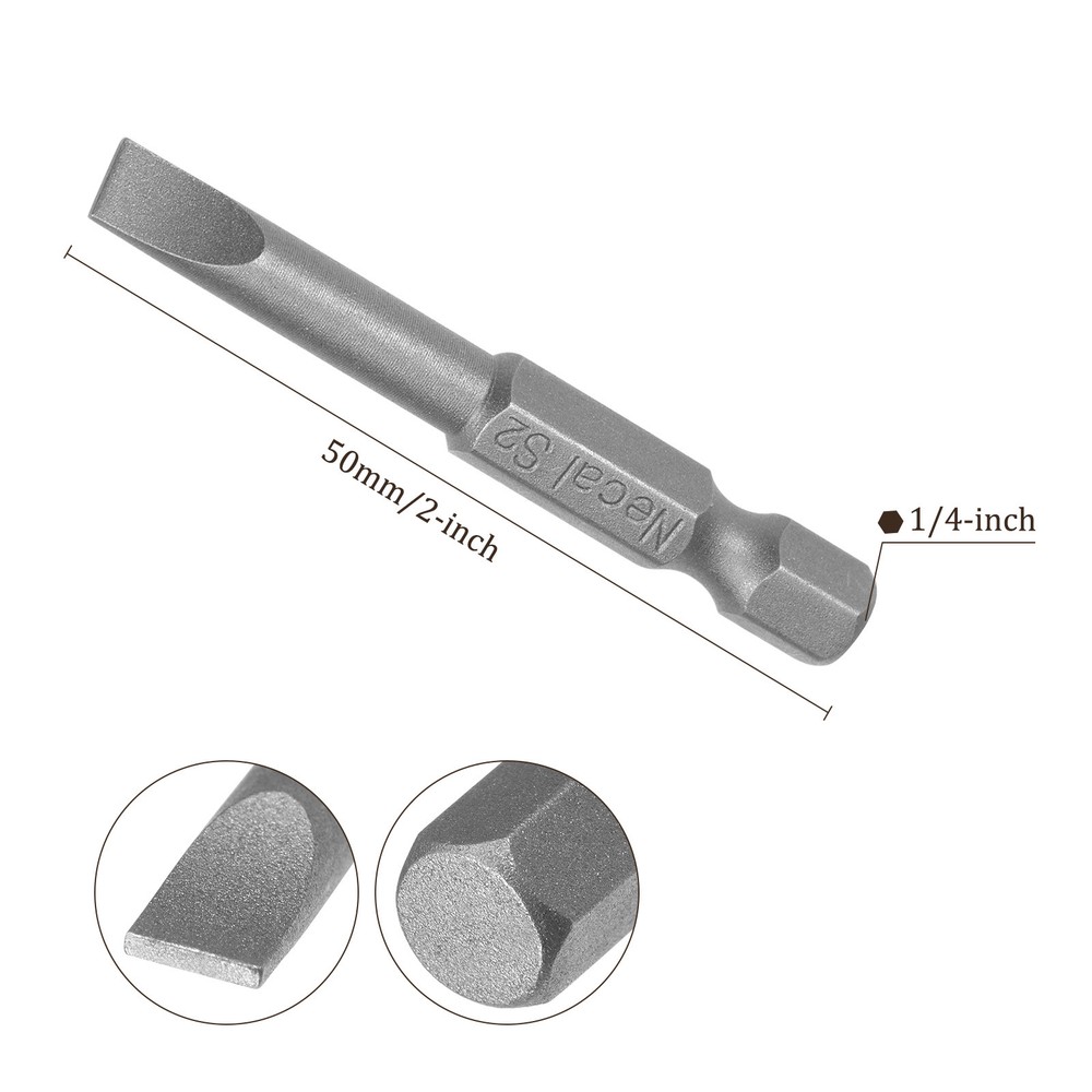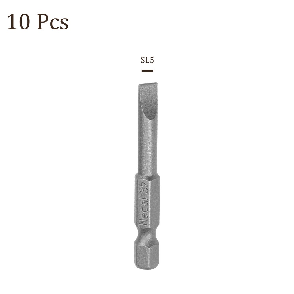 Document APPLICATION- Fit for electric screwdriver, manual screwdriver, power drill and other pneumatic or power tools with 1/4" hex holder. Widely used in cars, trucks, engines, motorcycles, computers, cable boxes and other applications.ABOUT THIS PRODUCT- Made of S2 alloy steel, which is a commonly used material in hardware with high hardness.- Sandblasting surface, corrosion resistance and durability.- Magnetic tip, can suck the screws easily when used it.- Exquisite workmanship, each edge can be accurately locked screws, no damage to the screw, and the screwdriver head.SPECIFICATIONBit Type: T15 Shank: 1/4“ Hex ShankLength: 50mm / 2”Material: S2 Alloy SteelFinish: SandblastingPackage: 10 packs of Flat Head Screwdriver BitTAKE NOTICE OF- Do not turn the screws with mismatched size to avoid damage to both the screw and the drill. 10pcs Slotted Screwdriver Bit - [2" x H1/4 x SL5] Magnetic for Power Tool Use APPLICATION - Fit for electric screwdriver, manual screwdriver, power drill and other pneumatic or power tools with 1/4" hex holder. Widely used in cars, trucks, engines, motorcycles, computers, cable boxes and other applications. ABOUT THIS PRODUCT - Made of S2 alloy steel, which is a commonly used material in hardware with high hardness. - Sandblasting surface, corrosion resistance and durability. - Magnetic tip, can suck the screws easily when used it. - Exquisite workmanship, each edge can be accurately locked screws, no damage to the screw, and the screwdriver head. SPECIFICATION Bit Type: T15 Shank: 1/4“ Hex Shank Length: 50mm / 2” Material: S2 Alloy Steel Finish: Sandblasting Package: 10 packs of Flat Head Screwdriver Bit TAKE NOTICE OF - Do not turn the screws with mismatched size to avoid damage to both the screw and the drill. Hot Item Payment 1.We accept eBay payment . 2.Payment must be received within 7 business days of auction closing. Shipping 1.We ship to your eBay or Paypal address. Please make sure your eBay and Paypal address is correct before you pay. 2.Items will be shipped within 1-3 business day when we received payment. 3.Delivery time depends on destination and other factors. Description Policy 10pcs Slotted Screwdriver Bit - [2" x H1/4 x SL5] Magnetic for Power Tool Use APPLICATION - Fit for electric screwdriver, manual screwdriver, power drill and other pneumatic or power tools with 1/4" hex holder. Widely used in cars, trucks, engines, motorcycles, computers, cable boxes and other applications. ABOUT THIS PRODUCT - Made of S2 alloy steel, which is a commonly used material in hardware with high hardness. - Sandblasting surface, corrosion resistance and durability. - Magnetic tip, can suck the screws easily when used it. - Exquisite workmanship, each edge can be accurately locked screws, no damage to the screw, and the screwdriver head. SPECIFICATION Bit Type: T15 Shank: 1/4“ Hex Shank Length: 50mm / 2” Material: S2 Alloy Steel Finish: Sandblasting Package: 10 packs of Flat Head Screwdriver Bit TAKE NOTICE OF - Do not turn the screws with mismatched size to avoid damage to both the screw and the drill. Hot Item Payment 1.We accept eBay payment . 2.Payment must be received within 7 business days of auction closing. Shipping 1.We ship to your eBay or Paypal address. Please make sure your eBay and Paypal address is correct before you pay. 2.Items will be shipped within 1-3 business day when we received payment. 3.Delivery time depends on destination and other factors.