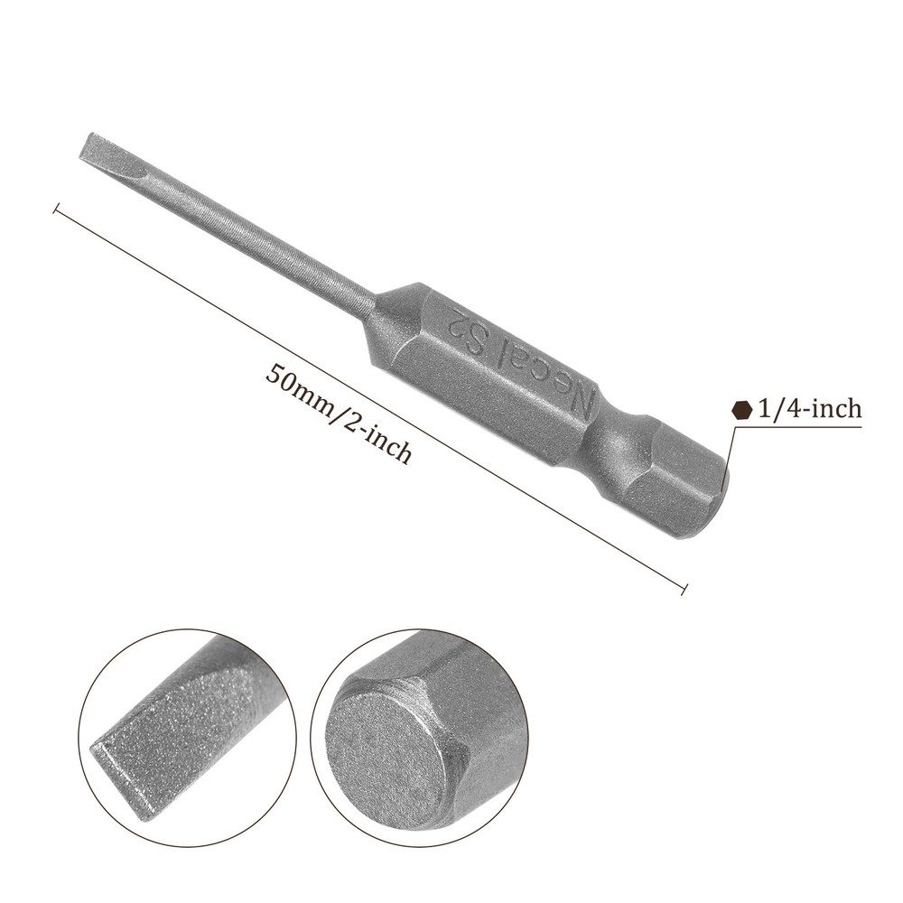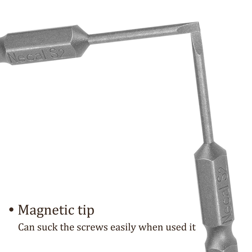Document APPLICATION- Fit for electric screwdriver, manual screwdriver, power drill and other pneumatic or power tools with 1/4" hex holder. Widely used in cars, trucks, engines, motorcycles, computers, cable boxes and other applications.ABOUT THIS PRODUCT- Made of S2 alloy steel, which is a commonly used material in hardware with high hardness.- Sandblasting surface, corrosion resistance and durability.- Magnetic tip, can suck the screws easily when used it.- Exquisite workmanship, each edge can be accurately locked screws, no damage to the screw, and the screwdriver head.SPECIFICATIONBit Type: T15 Shank: 1/4“ Hex ShankLength: 50mm / 2”Material: S2 Alloy SteelFinish: SandblastingPackage: 10 packs of Flat Head Screwdriver BitTAKE NOTICE OF- Do not turn the screws with mismatched size to avoid damage to both the screw and the drill. 10pcs Slotted Screwdriver Bit - [2" x H1/4 x SL2] Magnetic for Power Tool Use APPLICATION - Fit for electric screwdriver, manual screwdriver, power drill and other pneumatic or power tools with 1/4" hex holder. Widely used in cars, trucks, engines, motorcycles, computers, cable boxes and other applications. ABOUT THIS PRODUCT - Made of S2 alloy steel, which is a commonly used material in hardware with high hardness. - Sandblasting surface, corrosion resistance and durability. - Magnetic tip, can suck the screws easily when used it. - Exquisite workmanship, each edge can be accurately locked screws, no damage to the screw, and the screwdriver head. SPECIFICATION Bit Type: T15 Shank: 1/4“ Hex Shank Length: 50mm / 2” Material: S2 Alloy Steel Finish: Sandblasting Package: 10 packs of Flat Head Screwdriver Bit TAKE NOTICE OF - Do not turn the screws with mismatched size to avoid damage to both the screw and the drill. Hot Item Payment 1.We accept eBay payment . 2.Payment must be received within 7 business days of auction closing. Shipping 1.We ship to your eBay or Paypal address. Please make sure your eBay and Paypal address is correct before you pay. 2.Items will be shipped within 1-3 business day when we received payment. 3.Delivery time depends on destination and other factors. Description Policy 10pcs Slotted Screwdriver Bit - [2" x H1/4 x SL2] Magnetic for Power Tool Use APPLICATION - Fit for electric screwdriver, manual screwdriver, power drill and other pneumatic or power tools with 1/4" hex holder. Widely used in cars, trucks, engines, motorcycles, computers, cable boxes and other applications. ABOUT THIS PRODUCT - Made of S2 alloy steel, which is a commonly used material in hardware with high hardness. - Sandblasting surface, corrosion resistance and durability. - Magnetic tip, can suck the screws easily when used it. - Exquisite workmanship, each edge can be accurately locked screws, no damage to the screw, and the screwdriver head. SPECIFICATION Bit Type: T15 Shank: 1/4“ Hex Shank Length: 50mm / 2” Material: S2 Alloy Steel Finish: Sandblasting Package: 10 packs of Flat Head Screwdriver Bit TAKE NOTICE OF - Do not turn the screws with mismatched size to avoid damage to both the screw and the drill. Hot Item Payment 1.We accept eBay payment . 2.Payment must be received within 7 business days of auction closing. Shipping 1.We ship to your eBay or Paypal address. Please make sure your eBay and Paypal address is correct before you pay. 2.Items will be shipped within 1-3 business day when we received payment. 3.Delivery time depends on destination and other factors.