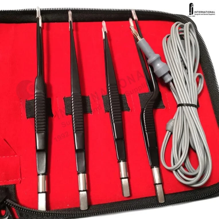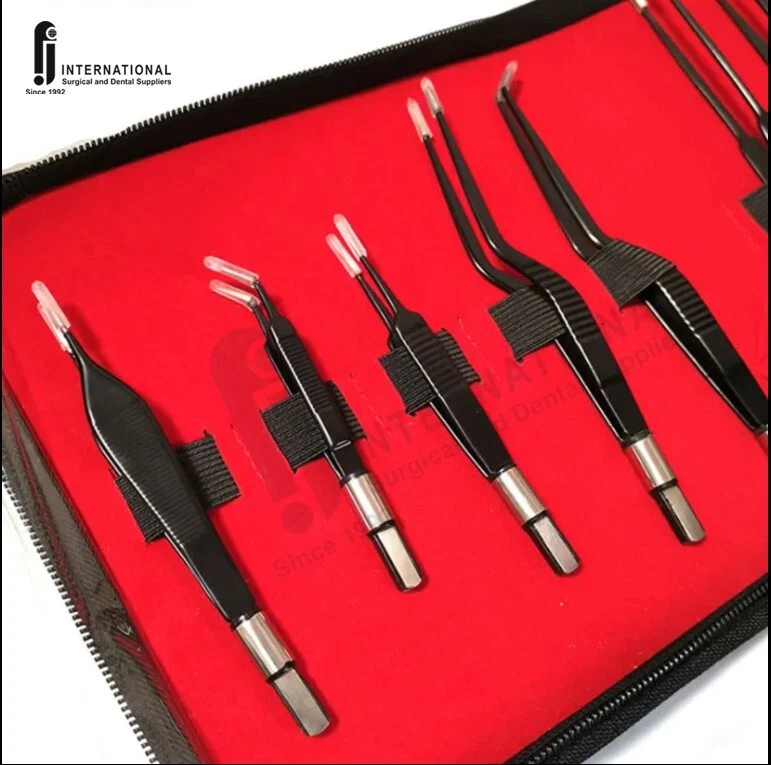 Bipolar bayonet forceps non-stick are specialized surgical instruments used in various medical fields, including dentistry, ophthalmology, and general surgery. These forceps are designed to handle delicate procedures that require precision and safety, particularly when working in confined or hard-to-reach areas. Here's a detailed description of the components and features: Key Features: Bipolar Function : Bipolar forceps refer to a type of forceps that is used in conjunction with an electrosurgical unit. They have two electrodes at the tips, allowing for both the coagulation and cutting of tissue when an electrical current passes through them. This is particularly useful in controlling bleeding during surgery or removing tissue in a controlled manner. Bayonet Design : The bayonet shape refers to the angled handle and working tips of the forceps, which allow the surgeon to reach and manipulate tissues in areas that are difficult to access. This design makes the instrument especially useful in surgeries where direct line-of-sight or access to the surgical field is limited. Non-Stick Coating : Non-stick coating is a feature applied to the tips of the forceps to reduce the adhesion of tissue or biological material, preventing the tissue from sticking to the forceps during the procedure. This is especially helpful in delicate surgeries, reducing the need for frequent cleaning of the instrument and improving surgical efficiency. The non-stick surface can be achieved by materials like Teflon or similar coatings, which provide a smoother, more resistant surface for improved performance. Applications: Ophthalmology : Used for delicate eye surgeries, particularly during procedures like retinal surgeries or cataract removal, where precise handling is essential. Oral and Maxillofacial Surgery : Used in dental procedures, especially when accessing difficult areas of the mouth or jaw. General Surgery : Used in various surgical specialties for precise tissue handling, particularly in surgeries requiring electrosurgery. Advantages: Precision : The bayonet shape allows for a high degree of control when working in tight spaces. Reduced Tissue Trauma : The non-stick feature minimizes the risk of damaging delicate tissues, promoting better healing. Efficiency : Bipolar forceps with non-stick tips help in reducing operational interruptions, as there is less need for cleaning or readjusting the instrument during procedures.