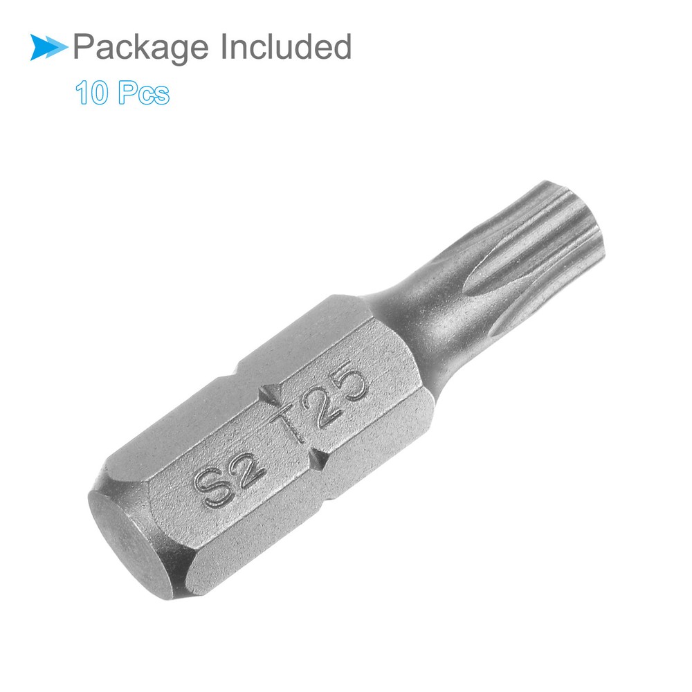 Document Attributes:* Shank Size: 1/4"* Total Length: 25mm / 1"* Bit Type: T25 * Material: S2 SteelWhat Is Included:* 10 Piece x Torx Screwdriver BitApplications & Features:--- Those bits fit for electric screwdrivers, hand screwdrivers, electric drills, air drills, air batches and 1/4" screwdriver sets.--- The torx screwdriver bits are made of S2 steel, which ensures high hardness, durability and wear resistance.--- These screwdriver bits are magnetic, which can firmly absorb the screw to prevent it from falling off.--- The star head bits are easy to install on the screwdriver handle with double ear on the sides of the bit shank.Useful Tips:--- Please apply appropriate force. Excessive force may cause the bit to slip, while insufficient force may not effectively tighten or remove the screw. 10pcs Torx Screwdriver Bits 1/4" Hex Shank 25mm T25 Magnetic Screwdrivers Bit Attributes: * Shank Size: 1/4" * Total Length: 25mm / 1" * Bit Type: T25 * Material: S2 Steel What Is Included: * 10 Piece x Torx Screwdriver Bit Applications & Features: --- Those bits fit for electric screwdrivers, hand screwdrivers, electric drills, air drills, air batches and 1/4" screwdriver sets. --- The torx screwdriver bits are made of S2 steel, which ensures high hardness, durability and wear resistance. --- These screwdriver bits are magnetic, which can firmly absorb the screw to prevent it from falling off. --- The star head bits are easy to install on the screwdriver handle with double ear on the sides of the bit shank. Useful Tips: --- Please apply appropriate force. Excessive force may cause the bit to slip, while insufficient force may not effectively tighten or remove the screw. Hot Item Payment 1.We accept eBay payment . 2.Payment must be received within 7 business days of auction closing. Shipping 1.We ship to your eBay or Paypal address. Please make sure your eBay and Paypal address is correct before you pay. 2.Items will be shipped within 1-3 business day when we received payment. 3.Delivery time depends on destination and other factors. Description Policy 10pcs Torx Screwdriver Bits 1/4" Hex Shank 25mm T25 Magnetic Screwdrivers Bit Attributes: * Shank Size: 1/4" * Total Length: 25mm / 1" * Bit Type: T25 * Material: S2 Steel What Is Included: * 10 Piece x Torx Screwdriver Bit Applications & Features: --- Those bits fit for electric screwdrivers, hand screwdrivers, electric drills, air drills, air batches and 1/4" screwdriver sets. --- The torx screwdriver bits are made of S2 steel, which ensures high hardness, durability and wear resistance. --- These screwdriver bits are magnetic, which can firmly absorb the screw to prevent it from falling off. --- The star head bits are easy to install on the screwdriver handle with double ear on the sides of the bit shank. Useful Tips: --- Please apply appropriate force. Excessive force may cause the bit to slip, while insufficient force may not effectively tighten or remove the screw. Hot Item Payment 1.We accept eBay payment . 2.Payment must be received within 7 business days of auction closing. Shipping 1.We ship to your eBay or Paypal address. Please make sure your eBay and Paypal address is correct before you pay. 2.Items will be shipped within 1-3 business day when we received payment. 3.Delivery time depends on destination and other factors.