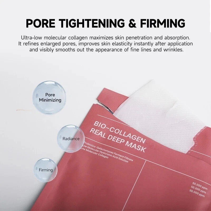 ✅ Product Features: 🌿 Deep Hydration & Firming – Replenishes moisture and firms skin with bio-collagen support. 🇰🇷 Inspired by K-Beauty Routines – Korean skincare–style collagen mask for that glass skin glow. 💧 Moisturizing & Nourishing – Designed for dry skin, fine lines, and dull complexion. 🌙 Hydrating Overnight Treatment – Wear for 40+ mins; transforms into a transparent layer as absorbed. 🧖♀️ Easy 4-Step Application – Upper and lower sheet design fits snugly for maximum absorption. ✅ Description Experience the Glow of K-Beauty at Home Unlock radiant, firmer, and deeply moisturized skin with our Bio-Collagen Real Deep Facial Lifting Anti-Wrinkle Mask . Formulated for those who want visibly softer skin, this mask offers a luxurious hydration experience that rivals high-end spa treatments — from the comfort of your home. Product Features: ✔️ Long-lasting hydration for dry, tired, or aging skin ✔️ Korean collagen sheet mask for plumping & firming ✔️ Ideal for overnight moisture & lifting effect ✔️ Glass skin results without irritation ✔️ No rinsing required – just glow & go How to Use: 1️⃣ Cleanse face and apply toner 2️⃣ Remove protective film and apply both mask halves 3️⃣ Wear until sheets become transparent (~40 minutes) 4️⃣ Remove & gently massage in excess essence – no need to rinse What’s Included: 📦 1pcs Bio-Collagen Real Deep Mask Sheets (upper + lower fit) 📦 5pcs Bio-Collagen Real Deep Mask Sheets (upper + lower fit) 📦 10pcs Bio-Collagen Real Deep Mask Sheets (upper + lower fit) ✅ eBay-Safe Notice Note: This product is intended for cosmetic skincare use only. No medical claims are made. Always patch test before full application.
