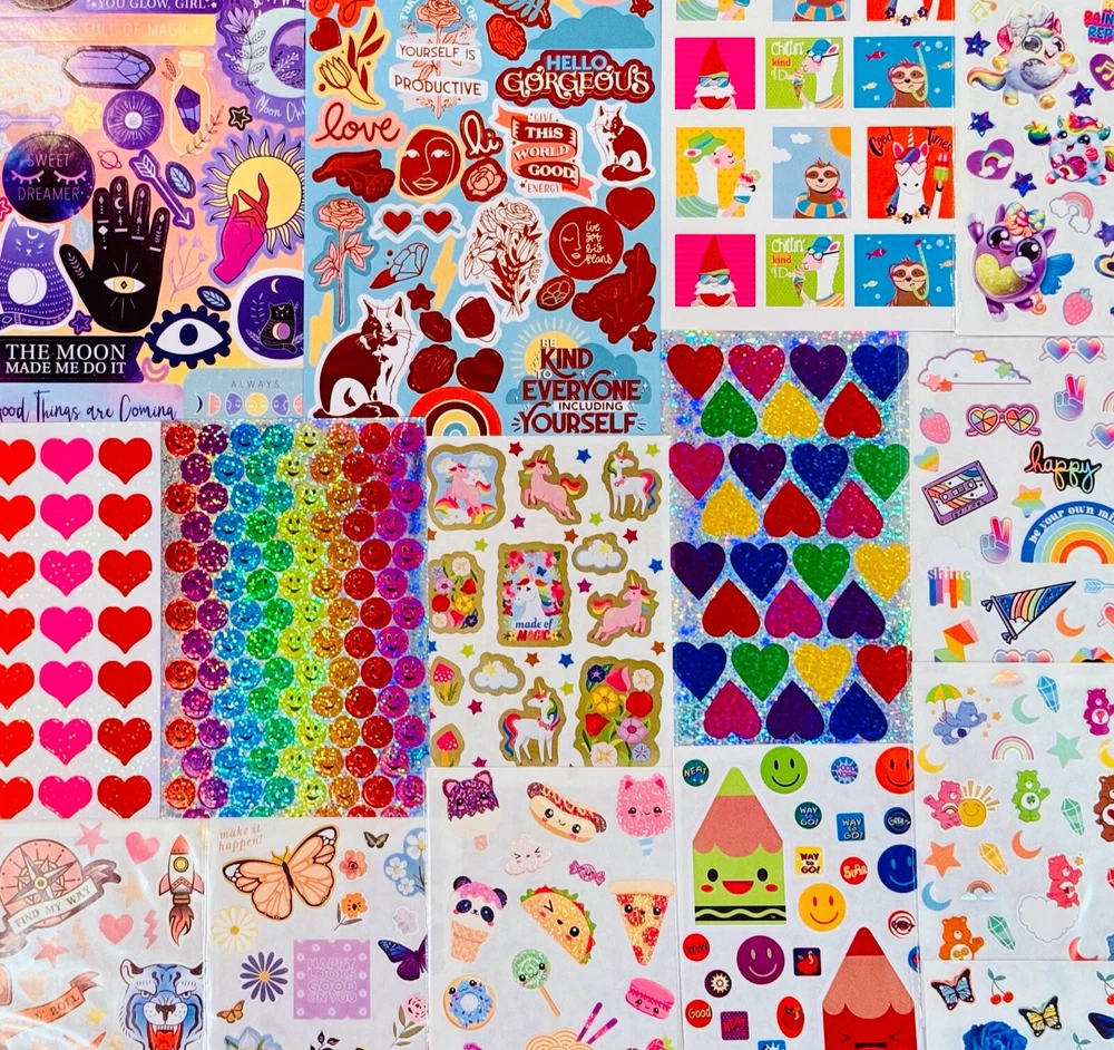 Limited Edition Mixed Sticker Lot | The Ultimate Kit | Qty. 11+ Sticker Pack High Quality Only! Fun Assortment of Puffy, Scrapbook, Cartoons, Bubble, Pop Up Stickers Packs For Everyone! You will receive 11+ New Full Sticker Sheets of beautiful colorful themes. I have included a large variety of pictures of the assortment available. The pictures give you an idea of what you will be receiving. Please Note: You will not receive everything pictured. Please contact me with any special requests.