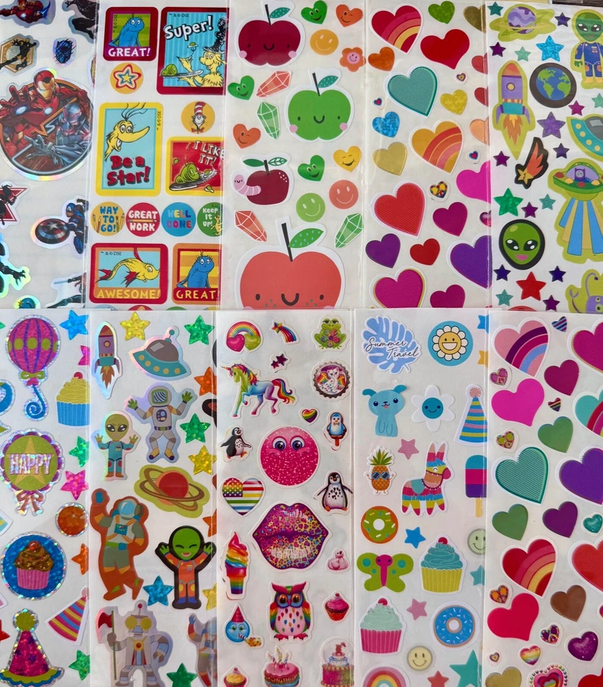 Limited Edition Mixed Sticker Lot | The Ultimate Kit | Qty. 11+ Sticker Pack High Quality Only! Fun Assortment of Puffy, Scrapbook, Cartoons, Bubble, Pop Up Stickers Packs For Everyone! You will receive 11+ New Full Sticker Sheets of beautiful colorful themes. I have included a large variety of pictures of the assortment available. The pictures give you an idea of what you will be receiving. Please Note: You will not receive everything pictured. Please contact me with any special requests.