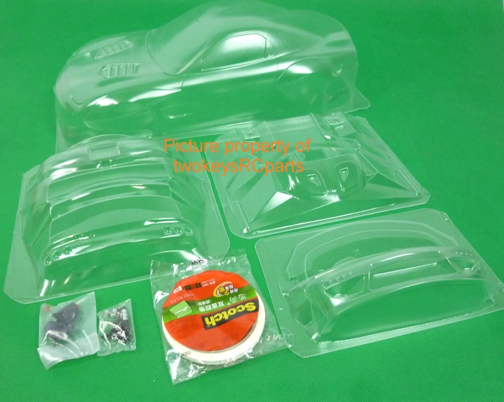 AS ALWAYS - before purchase - check the specs given below to ensure this body shell is suitable for your needs. CLEAR UNPAINTED LEXAN BODY SHELL to suit a 1:10th scale touring or race car. Body shell is as per pics #4 ~ #9 -- Pandem Mazda RX7 FD3S. Supplied with decals pics #11~#13. (Mukka and Pandem decals are included). Also supplied with plastic rear view mirrors,many body enhancement parts-splitter,wings, light buckets etc etc -see pic #10. Window paint masks also supplied -pics #3 & #4. Instructions are also supplied -pic #14. Pic #1 is for reference only -just to give you an idea of the general shape of the car and possibly decal placement. Body shell is for a chassis (wheelbase) of 258 mm and a outer wheeltrack of 195mm (manufacturers specs quoted). Item is new. Shells are covered with clear spray film. Note that often shells are often trimmed for freight purposes so excess plastic may be less than shown above. This item will be sent in a box (for safety) not a bag. Part #RX7 FD3S Check out other great bargains in my E b a Y store , including more body shells and accessories. I am not a "drop shipper", all products are in stock in Australia being sold by an Australian. POSTAGE - AUSTRALIAN CUSTOMERS . If you want to use the Express Post service please buy one item and select Express post, then buy any other items you want with regular post (the default option). All items will be sent together via Express Post service……… INTERNATIONAL CUSTOMERS . For post quotes for multi item orders please message me. Thanks. All duties and taxes (if applicable) are the responsibility of the buyer. If you have any questions or special requests regarding this please feel free to message me. Manufacturers are constantly improving products and changes are made without prior notice. This means that changes can be made to products (including slight colour changes) from time to time. These changes in no way constitute any intent to change the basic description of an item, nor do they constitute a reason for an item’s return or warranty replacement. Return Policy: Any returns will be handled as per Ebay’s return policy. Returned items must be new, unopened and undamaged. Opened returns will attract a 50% “reduced value” fee. Any unrecoverable costs and fees incurred (by me) will be deducted from any refund issued. Warranty: items have a 30 day warranty, except drift wheels – which is ‘dead on arrival’ only. Warranty doesn’t cover crash damage, poor maintenance, misuse or incorrect assembly. Warranty covers sold items only.