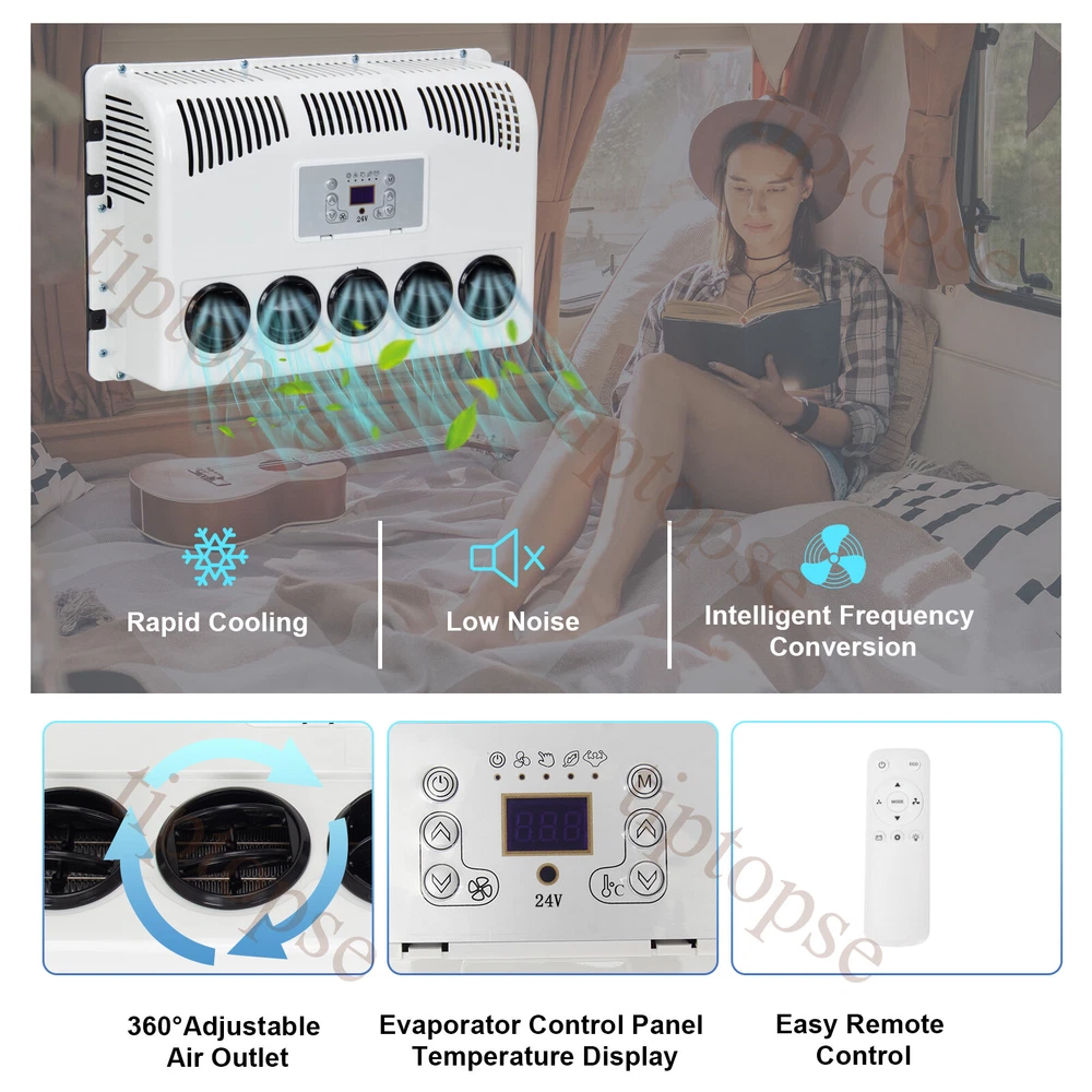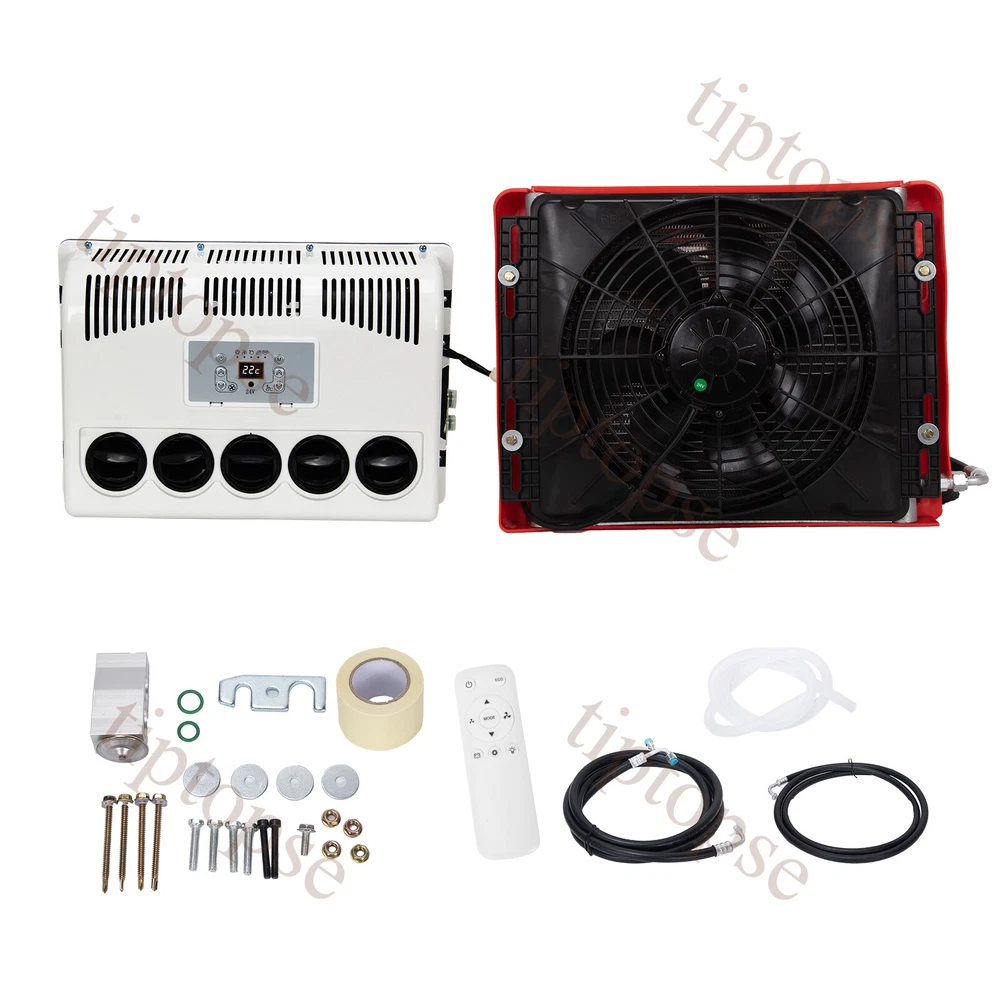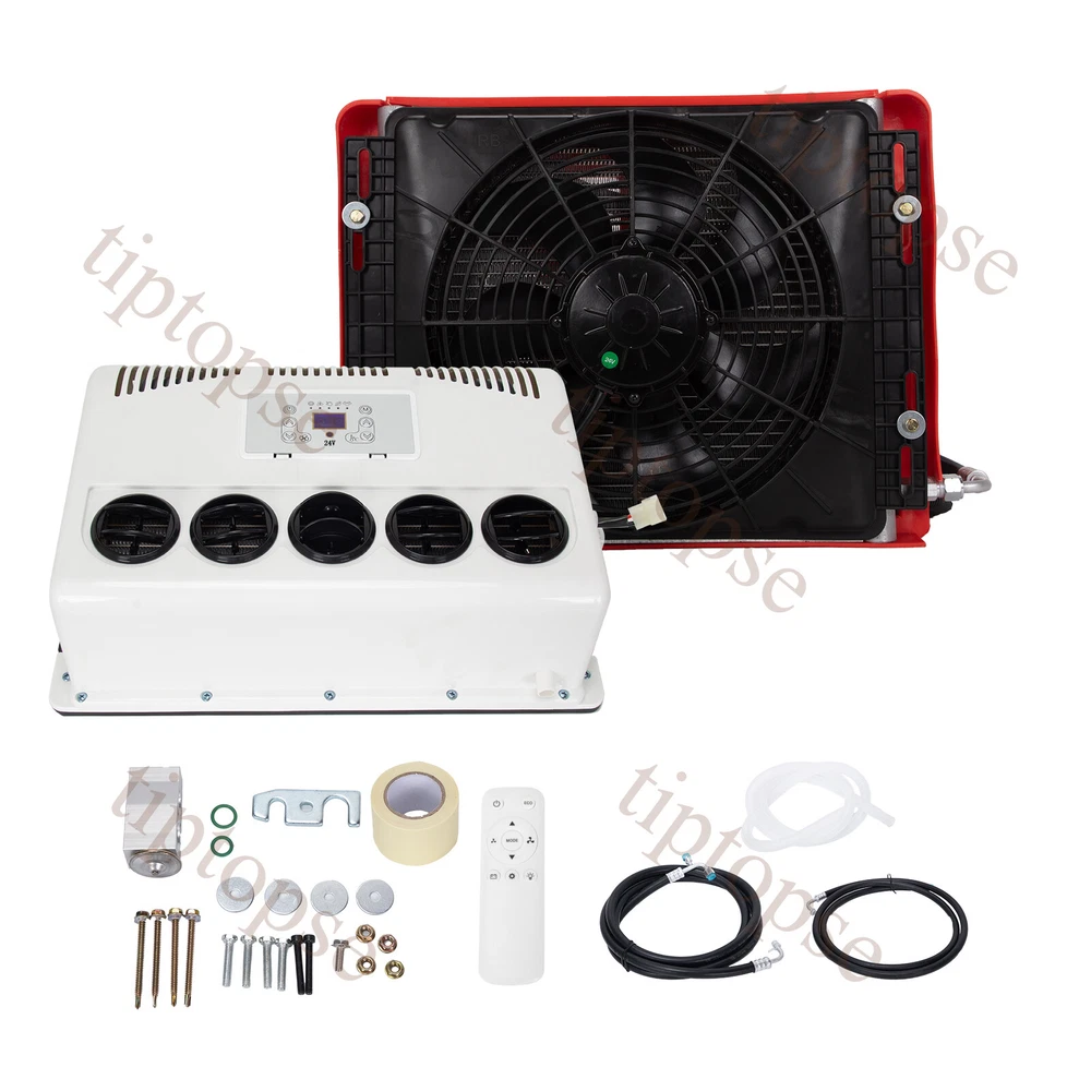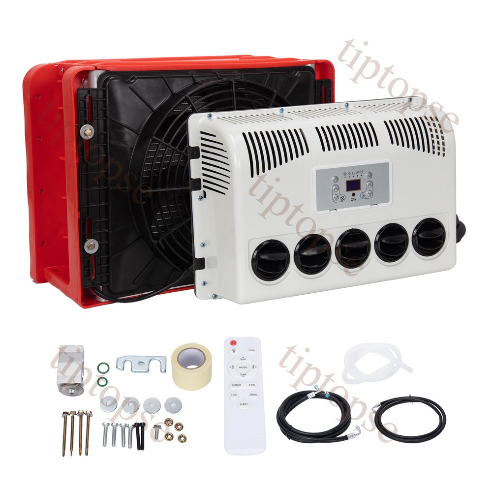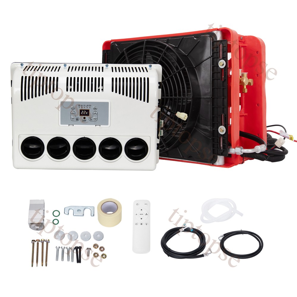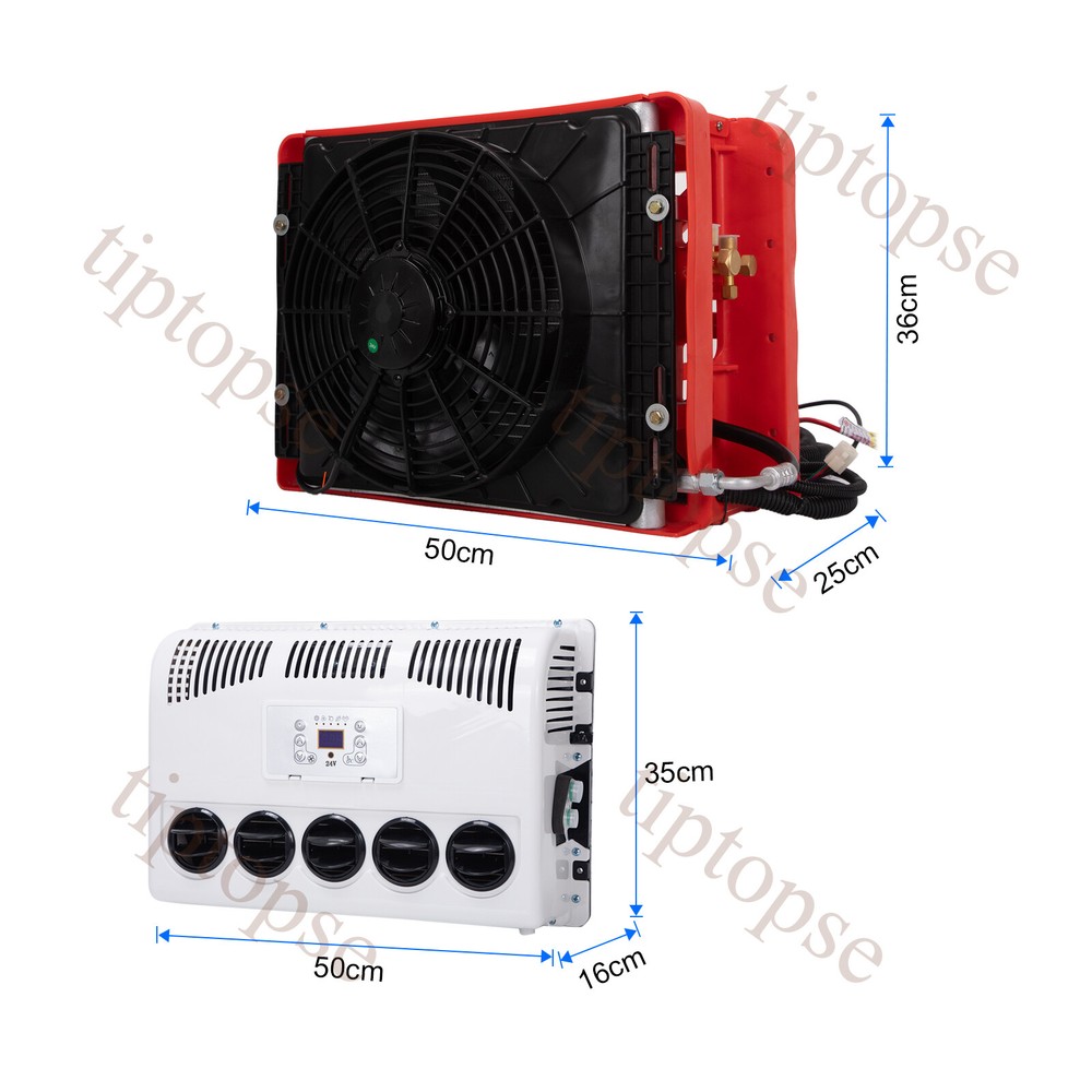 Product Description 11000BTU 24V Truck Air Conditioner Electric Split AC Unit Universal Fits Van Bus Descripton: Rated Voltage:24V Cooling capacity:1800W Refrigerant:R134A (Not include in the package) Oil:POE68 (included) Indoor Unit Size:500*160*350mm Outdoor Unit Size :500*250*360mm Package including: 1*Air Conditioner Kit Advantages: Easy Install and connecting:There is instruction to show you how to install it. Suitable for most of vehicle: car/truck/ambulance/RV/van/excavator/tourist bus Specially Designed for Construction Trucks: Strong metal outdoor unit with bigger fan Environmental Friendly: Directly driven by battery in automotive. Low noise when working. The reason to choose parking air conditioner: Normally drivers leaving the engine running for hours to use the air conditioner during parking or rest time at night, it is bad for the environment and tons of fuel wasted, it also wears down the engine faster. Parking air conditioner works with truck battery power without engine on which can save engergy and fuel and at same time provide safe and comfortable enviornment for driver . Fuel,Energy And Money Saving. Digital frequency conversion control, more efficient and more energy saving. Use energy saving mode when you sleep at night,It can run continuously 6 to 8 hours. Use super mode in hottest hours, cooling rapidly and stronger air supply. Contact US - tiptopse 1.If you have some inquires or problems, Please feel free to contact us. 2.If you are not satisfied with your purchase, simply contact us via eBay message and your interests will be protected. 3.Please don't open a dispute or leave neutral/negative feedback without communication,I will reply within 12 hours of receiving the message.Thanks.