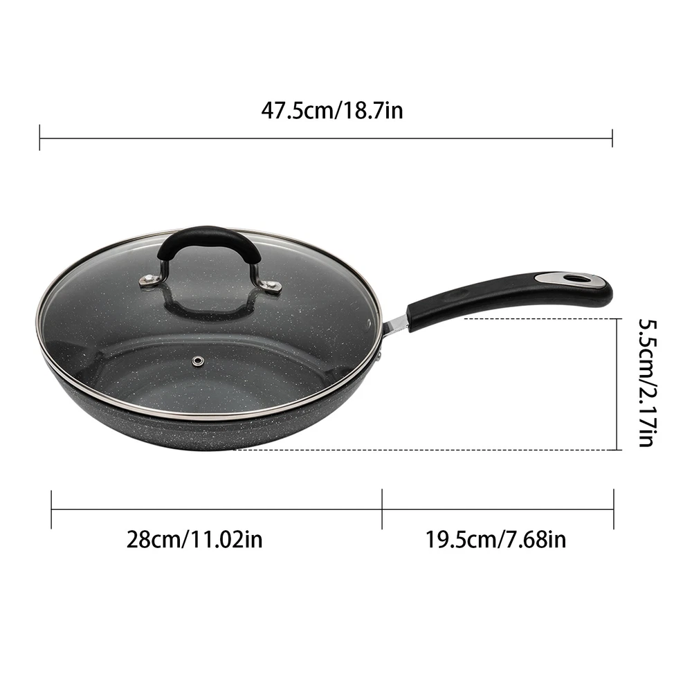 Specifications Color: Black Material: Stainless Steel, Tempered Glass, Aluminum Alloy, Bakelite Surface Treatment: Heat-Resistant Non-Stick Coating Compatible Devices: Fire, Electric Ceramic Stove, Halogen Stove, Electric Wire Oven, Induction Stove Assembly Required: No Is Dishwasher Safe: No Number of Pieces: 1 Thickness: 2.7mm Maximum Heating Temperature: 380℃/716℉(Internal), 280℃/536℉(External) Pan Size(D*H): 28*5.5cm/11.02*2.17inch Handle Length: 19.5cm/7.68inch Product Overall Length: 47.5cm/18.7inch Packaging Size: 19.9*14*16.5cm/7.83*5.51*6.49inch Gross Weight: 3.5kg/7.71lbs Net Weight: 3kg/6.61lbs Package Included 1* Frying Pan 1* English User Guide 11.02 in Frying Pan Nonstick Frying Pan & Lid Large Frying Pan w/ Handle Black Description Description A frying pan with a non-stick coated surface can effectively prevent sticky during cooking. Its 2.7mm thick aluminum alloy body and composite base give it good thermal conductivity and sturdy construction. With a bakelite handle, you can toss the pot easily without concern about burning yourself. You can make your various delicious dinners with just one pan. It will be your right-hand kitchen assistant! Key Features Non-Stick Surface: Its heat-resistant non-stick coated surface prevents liquid or food from sticking to the pan during cooking or frying, allowing you to cook healthier food, ensuring easy cleaning, and giving you a great cooking experience. Sturdy Construction: 2.7mm thickened aluminum alloy makes our product sturdy, highly heat resistant , and anti-warp, giving it a long service life. Large Size: The large 11.02-inch pan diameter and 2.17-inch rim height allow the pan to hold sauces or larger food items for a variety of uses. Healthy to Use: It is PFOA-free (a kind of highly toxic substance), so you can use it with confidence. Quick Heating: The composite pan bottom with a flat design has good thermal conductivity and ensures fast and even heating. Ready to Use: With the integrated structure, you can simply clean the frying pan and use it for your meal after receiving it, saving you time. Easy to Clean: It is super non-stick and smooth, so you can simply rinse it with water and wipe it with a piece of dry cloth or tissue. Ideal Gift: It is a nice gift for your friends, families, or colleagues who are seeking a nice frying pan to cook a wonderful meal. Protective Package: To prevent the product from being damaged during transportation, we packed it with bubble bags to protect your products to the maximum extent possible. Customer Service: We aim to provide quality products and services. If you have any problems, please feel free to contact us. We will reply and solve the problem for you as soon as possible. Details Clear Tempered Glass Lid: It helps lock in moisture while allowing you to keep an eye on your food to prevent it from burning. The small air hole allows heat and steam to escape faster and the handle design ensures convenient holding of the lid. Anti-scalding Handle: The bakelite handle with a length of 7.68 inches allows you to hold the pan effortlessly , and the hanging hole in the handle makes the pan hang on a hook for quick drying and kitchen space saving. Application It can be used on the fire, electric ceramic stove, halogen stove, electric wire oven, induction stove, and other stoves for cooking pancakes, frying fish, omelets, stir-frying and smothering cooking sausage, beef, seafood, poultry, burgers or vegetables in both home kitchens and restaurants, hotels, and other commercial places. Specifications Color: Black Material: Stainless Steel, Tempered Glass, Aluminum Alloy, Bakelite Surface Treatment: Heat-Resistant Non-Stick Coating Compatible Devices: Fire, Electric Ceramic Stove, Halogen Stove, Electric Wire Oven, Induction Stove Assembly Required: No Is Dishwasher Safe: No Number of Pieces: 1 Thickness: 2.7mm Maximum Heating Temperature: 380℃/716℉(Internal), 280℃/536℉(External) Pan Size(D*H): 28*5.5cm/11.02*2.17inch Handle Length: 19.5cm/7.68inch Product Overall Length: 47.5cm/18.7inch Packaging Size: 19.9*14*16.5cm/7.83*5.51*6.49inch Gross Weight: 3.5kg/7.71lbs Net Weight: 3kg/6.61lbs Package Included 1* Frying Pan 1* English User Guide Notes Please check the size carefully before ordering. Please do not use metal spatulas and other sharp kitchen utensils for cooking, and avoid frying food with hard shells and sharp bones. When cleaning, the pan must be cooled down naturally before washing. Please do not use rough cleaning tools such as steel wire balls to avoid damaging its external coating. Please do not cook without oil to test the non-stickiness of the pan in the absence of oil or the dry burning state. The flame should not exceed the bottom when cooking to prevent burning the handle. Please allow the slight color difference caused by the shooting light and 1-3cm error due to manual measurement, and make sure you do not mind before you order Payment Delivery details Terms of sales About us Contact us Payment We accept ebay payment 。 Fees such as import duties, taxes are not included in the item price or shipping costs. These charges are the buyer's responsibility. Delivery details Shipping: 2-9 working days to: USA Terms of sales We maintain high standards of excellence and strive for hundred percent customer satisfaction. Feedback is very important to us. We hope that you contact us immediately before you give neutral or negative feedback, so that we can address your concerns. It is impossible to address issues if we do not know about them! About us Your satis faction is our ultimate goal. We work hard to earn your trust and future business. Our certified technicians have tested each item before shipping. The unit comes with 1 year limited warranty on all manufacturing defects. a) If you receive a defective item, you may return it or ask for a discount. Please contact us within 14 days after you receive the package. b) What you returned must be intact and in its original pa