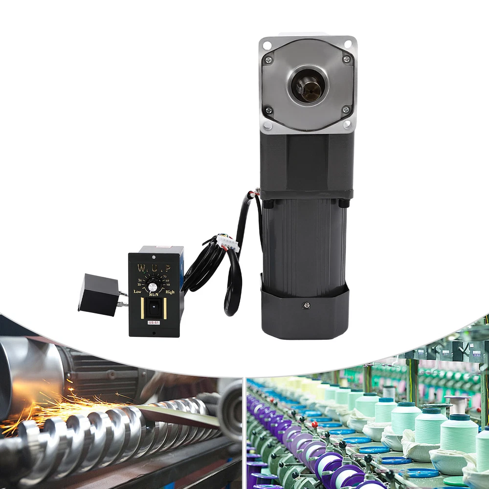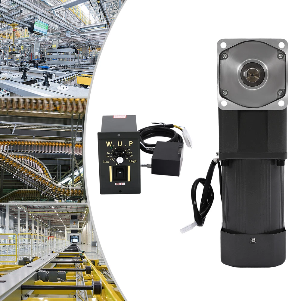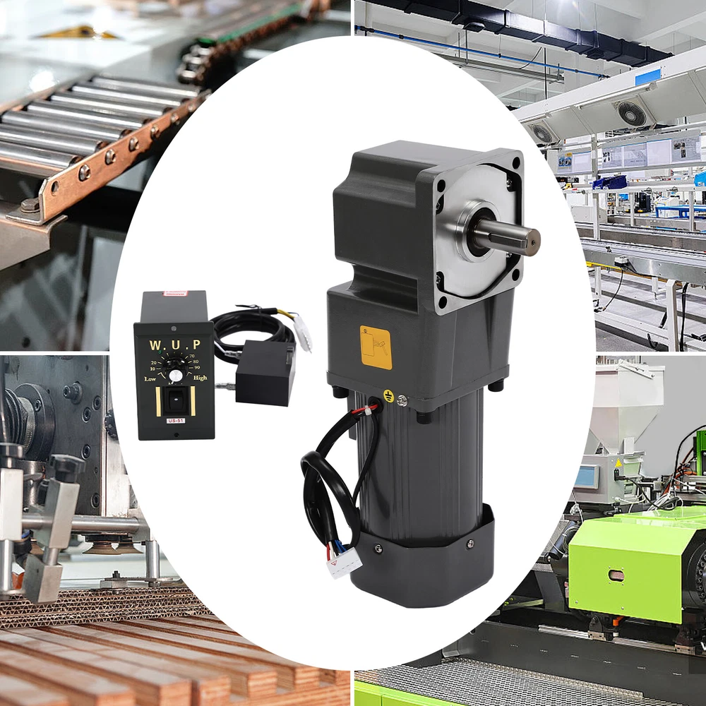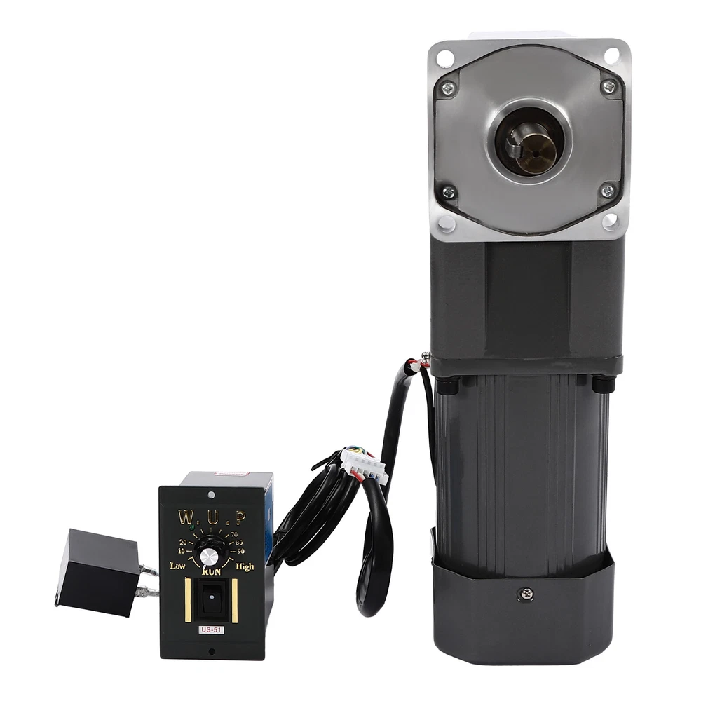 Specification Material: Medium Carbon Tempered Steel Color: Dark Grey Process: Plastic Spraying, One-piece Forming, Heat Treatment Type: Medium Solid Motor Reduction Ratio: 1:30 (30K) Power Supply: Wiring Voltage: 110V Power: 200W Torque: 36NM Rotational Speed: 45R/MIN Output: 90° Right Angle Output Gross Weight: 10kg/ 22.05 lbs Net Weight:9kg/19.84lbs Total Height: 34.4cm/13.54 in Reduction Box Size: 10.4*10.4cm/4.09*4.09in Governor Size: 10*6*9cm/3.9*2.4*3.5in Package Size: 35*16.5*14.5cm/ 13.78*6.5*5.71 in Package Included 1 * Speed Reduction Motor 1 * Speed Governor 1 * English Manual All Accessories for Installation 110V 200W Adjustable Speed AC Gear Reduction Motor Reversible Motor w/Controller Description~ Specification Material: Medium Carbon Tempered Steel Color: Dark Grey Process: Plastic Spraying, One-piece Forming, Heat Treatment Type: Medium Solid Motor Reduction Ratio: 1:30 (30K) Power Supply: Wiring Voltage: 110V Power: 200W Torque: 36NM Rotational Speed: 45R/MIN Output: 90° Right Angle Output Gross Weight: 10kg/ 22.05 lbs Net Weight:9kg/19.84lbs Total Height: 34.4cm/13.54 in Reduction Box Size: 10.4*10.4cm/4.09*4.09in Governor Size: 10*6*9cm/3.9*2.4*3.5in Package Size: 35*16.5*14.5cm/ 13.78*6.5*5.71 in Package Included 1 * Speed Reduction Motor 1 * Speed Governor 1 * English Manual All Accessories for Installation Description The 200W speed reduction motor provides high efficiency for your work and allows you to save a lot of working time. The governor with high accuracy and wide speed range allows you to adjust the right speed for different applications. And with its high torque, it will be your powerful working partner! Key Features High-quality Material: This product is made of high-quality medium carbon tempered steel, with high hardness, strong wear resistance , anti-corrosion , anti-rust performance, and long service life. High Efficiency: The speed of a 200W motor can reach 45rpm, ensuring high efficiency and saving you a lot of working time. Efficient Heat Dissipation: Built-in cooling fan, bottom cooling window design, and stable performance of pure purple copper coil can effectively dissipate heat, thus ensuring long-term stable operation. Adjustable Speed: The speed regulator with high precision and wide speed range allows you to adjust different speeds according to different applications to achieve the expected results. Commutation Function: This product has flexible normally open and normally closed control system by changing wires or adding switches, providing you with higher freedom of use. Large Torque: The stable pure purple copper coil and gear set consisting of full ball bearings and medium carbon tempered steel gears can effectively increase the torque of the motor, providing you with smoother and more powerful operation. Easy to Clean: The surface of the product is smooth and flat to clean. You can easily wipe off the dust and stains on the surface with a rag. Easy to Install: Complete installation parts and a detailed English manual can help you to install quickly and accurately. Details Stator: Both ends of the stator are equipped with ball-bearing axle wheels, resulting in low friction, temperature, and noise . Fine Fittings: The fine fittings make the top cover and bottom cover tightly combined, thus making the rotor run stably. Gearbox: 5GU gears are vacuum plasma nitrided for high strength and its shaft keyway is equipped with fixed key pins for wear resistance and stability. The gearbox has built-in solid lubricant for smoother rotation. Speed Range 1. The lower the governor's speed, the slower the speed, the smaller the force. The normal reasonable speed range is 50%~100%. 2. The larger the speed ratio, the slower the speed, the greater the force; the smaller the speed ratio, the faster the speed, the smaller the force. (Example: Both are 20 revolutions, but the 20 revolutions directly from the reducer are 2-3 times smaller than selecting a 40 revolution and then adjusting to 20 revolutions.) Application This product can be used in packaging, printing, textile, printing and dyeing, chemical, food, pharmaceutical, and other engineering machinery, as well as advertising, office, petrochemical, instrumentation, stage lighting, transmission, automated warehouse, parking lot, and other equipment. Notes Our motors do not include the power cord and the bracket. Please do not plug and unplug the power cord with the power on. Please do not knock on the machine. The speed reduction motor is composed of a motor and a speed reduction gear. Different speed ratios can achieve different speed regulation ranges, and they have different strengths. The speed of the output shaft is different under different reduction ratios. When the gearbox decelerates, the higher the reduction ratio, the higher the force. The slower the speed regulated by the governor, the lower the torque. The motor can run for a long time within the safe speed regulation range. The safe speed regulation range for small loads is 50% of full speed-full speed. The safe speed regulation range for large loads is 70% of full speed-full speed. Please read the operating manual completely before use. And pay particular attention to the safety instructions included. Please allow the slight color difference caused by the shooting light and the 1-3 cm error due to manual measurement, and make sure you do not mind before ordering. tu1 Payment Delivery details Terms of sales About us Contact us Payment We accept ebay payment 。 Fees such as import duties, taxes are not included in the item price or shipping costs. These charges are the buyer's responsibility. Delivery details Shipping: 2-9 working days to: USA Terms of sales We maintain high standards of excellence and strive for hundred percent customer satisfaction. Feedback is very important to us. We hope that you contact us immediately before you give neutral or negative feedback, so that we can address your concerns. It is impossible to address i