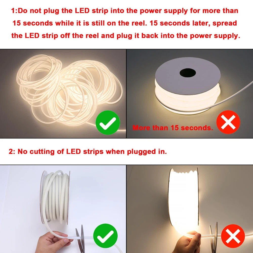 AC 110V COB LED Strip Lights Outdoor Waterproof 65.6ft, 4000K Natural White Super Bright 200W CRI 90+ LED Rope Light, IP65 Flexible Cuttable, for Bedroom Garden Commercial House Product Details Color: Natural White 4000K Brand: BENLUN MPN: HV-COB-320-US-NW UPC: 750405804863 EAN: 0750405804863 Color: Natural White 4000K Brand: BENLUN Indoor/Outdoor Usage: Indoor, Outdoor Special Feature: AC110V-120V Plug in LED Light Strip Light Source Type: COB Power Source: Corded Electric Light Color: Natural White Theme: Christmas, Thanksgiving, New Year's Day, Easter, Halloween Occasion: Bedroom, Garden, Commercial, Office, House Style: Modern Package Dimensions : 9.88 x 9.06 x 3.5 inches; 3.75 Pounds Item model number : HV-COB-320-US-NW Date First Available : July 10, 2023 Manufacturer : ZHONG YI Customer Reviews: 4.4 4.4 out of 5 stars 162 ratings Color: Natural White 4000K Brand: BENLUN Indoor/Outdoor Usage: Indoor, Outdoor Special Feature: AC110V-120V Plug in LED Light Strip Light Source Type: COB Power Source: Corded Electric Light Color: Natural White Theme: Christmas, Thanksgiving, New Year's Day, Easter, Halloween Occasion: Bedroom, Garden, Commercial, Office, House Style: Modern Material: Copper, Silicone Color Temperature: 4000 Kelvin Controller Type: No Controller Number of Light Sources: 5760 Voltage: 110 Volts (AC) Wattage: 200 watts Included Components: 1 Pcs Glue, 1 Pcs US Plug 1.5m Cable, 1 Roll of 65.6ft COB LED Strip Light 10mm Wide, 2 Pcs Silicone tail plugs, 40 Pcs Clips,Screws and Drywall anchors Number of Items: 1 White Brightness: 52480 Lumens Control Method: Remote Water Resistance Level: Waterproof Seasons: All Seasons UPC: 750405804863 Form Factor: Strip Lights Manufacturer: ZHONG YI Part Number: 10mm Wide COB LED Strip Light Item Weight: 3.74 pounds Package Dimensions: 9.88 x 9.06 x 3.5 inches Item model number: HV-COB-320-US-NW Specific Uses: Indoor/Outdoor Use Special Features: AC110V-120V Plug in LED Light Strip Light Direction: Adjustable Plug Format: A US-style Batteries Included?: No Batteries Required?: No Luminous Flux: 16000 Lumen Bulb Features: High voltage without strobe Color Rendering Index (CRI): 90.00 Average Life: 50000 Hours Date First Available: July 10, 2023 COB LED Strip Light Outdoor WaterproofThe cob led lights is IP65 outdoor waterproof, suitable for indoor and outdoor use, such as bedroom, garden, commercial, for safety reasons, do not leave the led strip lights in water for a long time. AC 110V 120V COB LED Strip Lights65.6FT 110V-120V high voltage cob led light strip have no difference in brightness between the beginning and end of the led light, more even light, brilliant. come with plug and rectifier, no special power adapter is required! Super Bright COB LED StripHigh Power 200W/20M, High Brightness 800LM/M, High Density 288LEDs/M, High Color Rendering Index CRI>90. 180 Degree Beam Angle Design, 50% wider illumination range, even illumination, no dark spots. Flexible and CuttableFlexible cob led rope lights can be used on certain curved and irregular surfaces. It is not limited to use on vertical walls. Cuttable every 50cm, after cutting, please insulate and waterproof to avoid electric shock. Use BENLUN plugs to connect after cutting, do not use any connectors. Safe to Use The leds string lights has passed CE, Rosh certification; and the led light strips comes with silicone protection to avoid the risk of electric shock; Please do not install or repair with electricity; Comes with a large number of snaps and screws for installing the led strips (rope lights is not self-adhesive), please do not damage the outer silicone protective layer when installing. Important Notes Do not turn on the power for more than 15 seconds while the led lights strip is still on the reel as it may overheat and melt, after 15 seconds, be sure to unroll the led tape light and turn the power back on.