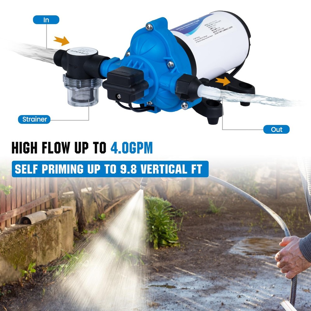 12V RV Fresh Water Pump 6GPM 70PSI Self-Priming Diaphragm Water Pump