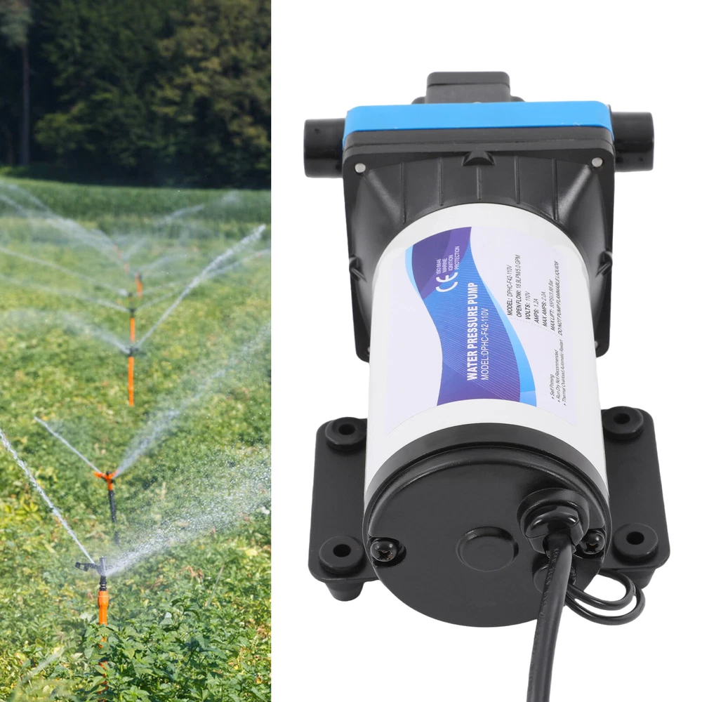 Specifications Color: Black, White, and Blue Material: Engineering Plastic, Copper, and Steel Motor: Pure Copper Motor Power Source: Corded Plug Type: US Standard Assembly Required: Yes Control Type: Pressure Switch Max. Temperature: 65°C/149°F Voltage: 110V Amps: 1.2A Max. Amps: 2.0A Noise: 55-60dB Suction Range: 3m/9.84ft Max Lift: 55PSI/3.88Bar Open Flow: 18.9LPM/5.0GPM Hose Adapter: 1/2" Gross Weight: 3.06kg/6.75lbs Net Weight: 2.8kg/6.17lbs Package Size: 32*15*13.5cm/12.6*5.91*5.31in Product Size: 12.45*10.97*21.2cm/4.9*4.32*8.35in Package Included 1* Diaphragm Water Pump 1* Filter 2* Hose Adapters 110V Water Pump 1.2A Diaphragm Water Pump Self Priming Automatic Diaphragm Pump Description Our water diaphragm pressure pump has excellent suction and head capacities and can easily cope with most liquid transfer tasks, guaranteeing a continuous and stable performance that defies many challenges. Whether for vehicle cleaning, food and beverage processing and handling equipment, home water supply and pipeline pressurization, or water use in the use of RVs, ships, etc, this high-performance pump is the ideal choice for the most demanding applications. Key Features Build to Last: The high-quality engineering plastic housing is wear-resistant, impact-resistant, and not easy to deform, which can better protect the internal components and extend the product's service life. High Efficiency: It features a pure copper motor, a self-priming range of 9.84ft, an open flow of up to 18.9LPM/5.0GPM, and a 55PSI/3.88 bar pressure that can accommodate 3-4 faucet water supplies, making your pumping faster and easier. Safety Guard: It has overheating protection, overload protection, grounding protection, automatic start/stop, and switch reflux function which guarantees the stability of the product's operation and at the same time ensures safety when using it. Thoughtful Design: It has the function of self-priming water, when there is water in the tank can be automatically pumped, and can be turned off without water, for you to save water. Economical and Practical: With it , you'll be able to extract water better, which can be extremely convenient and cost-effective for you. Ideal Gift: Thanks to its practicality and powerful functions, you can give it to your friends as a Christmas, Thanksgiving or Halloween gift! Simple Installation: With complete accessories, standard interfaces, and simple construction, you can put it together yourself and put it to use right away! Customer Service: We aim to provide quality products and services. If you have any problems, please feel free to contact us. We will reply and solve the problem for you as soon as possible. Details Stable Base: The rubber base can better maintain the stability of the product and ensure smooth and quiet operation. Standard Port: The 1/2'' standard hose adapters can match most water pipes for convenient installation and use. Practical Filter: It effectively filters out impurities from the liquid, which can better protect the pump for extended service life. Application It can be used for vehicle cleaning, ships, carpet/ground cleaning, water purification, and water treatment equipment; providing water for eating, washing, bathing, toilets, and flushing in the use of RVs, ships, yachts, boats, etc.; food and beverage processing and handling equipment; home water supply and pipeline pressurization, solar energy pressurization system supporting, water purification industry, and other equipment that require a liquid transfer, spraying, and even metering such as garbage trucks, sprinklers, carpet/floor/vehicle cleaning equipment, road construction equipment, dishwashers, chemical equipment, water circulation cooling systems, and pressurization systems. Pressure Switch Adjustment 1. Open the pressure switch cover. 2. Locate the hexagonal screw hole in the center of the switch's interior. 3. Tighten clockwise to increase pressure, loosen counterclockwise to decrease pressure! Operation Guide 1. Connect the pump with the inlet and outlet pipes, must ensure that the inlet and outlet pipes are tightly connected, otherwise, it will cause low pressure, poor sucking water, water leakage, and other problems; (Tip: the pump head is labeled with an arrow instruction, the arrow points in the direction of the outlet, and vice versa for the inlet). 2. Install the filter at the water inlet side; the density of the filter mesh is best in more than 80 mesh (i.e., 80 small holes/1cm²). 3. Connect the electric diaphragm pump with the power supply, the output parameters of the connected power supply must meet the input requirements of the motor. 4. Turn on the power, the pump starts to run. 5. Discharge water for 5-10 seconds, and drain the air in the pump and the pipeline, when the water is stable, temporarily turn off the power supply, and connect the water gun, faucet, shower, and other related tools. 6. Stop using, just close the outlet faucet, the pump has a pressure switch automatic start-stop function, the next use just open the faucet and it can work normally. Troubleshooting 1. When there is electricity, the pump does not work: open the pressure switch cover above the pump head, connect the two connecting wires together, and rule out whether the motor short circuit is caused by switch damage. 2. The water pump works normally, with insufficient suction, small water output, and low pressure: need to dismantle the pump head, check whether there is debris blockage in the pump cavity, whether the pump head and the motor bracket are loose, if it is, clean up the valve and the diaphragm debris, tighten the screws, and then install it. 3. The pump does not work when you just received it: Open the back cover of the motor, remove the springs of the two carbon brushes, and install them. 4. The water pump does not work after one use: any water pump has a starting current, which is usually 3-5 times the working current, please make sure that the battery and the power sup