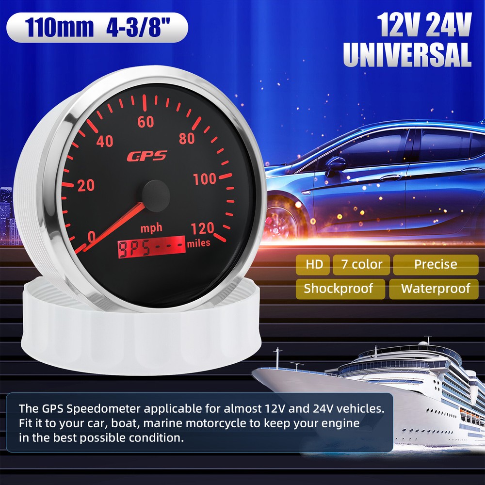 110mm GPS Speedometer 0-120MPH Gauge Waterproof for Motorcycles Boat Car Truck 110mm GPS Speedometer 0-120MPH Gauge Odometer 7 Colors LED Waterproof for Motorcycles Boat Car Truck Descriptions: High-brightness LED backlight. 316 stainless steel for long-term use even in acid-base, humid environment. IP67 waterproof and dust-proof grade. With curved glass( with anti-fog function). Suitable for all kinds of vehicle modification. Using stepper motor drive pointer, accurate display of the engine speed, and with the LCD display clear display mileage. Gauges have many kinds backlight color (red,yellow,orange,green,blue,purple,white),customers can adjust any color that you like Specification: Material: Stainless Steel 316L Bezel + Anti-fog Glass Install Diameter: Φ110mm or 4-3/8inch Signal: GPS Indication Range: 0-120MPH Working Voltage: 9~32V DC Working Current: ≤100mA Operating Temperature: -30℃ ~ 75℃ Storage Temperature: -40℃ ~ 85℃ IP67 waterproof and dustproof grade Connection: Black: Ground(-) Red: 9-32VDC Yellow: Backlight Package Includes: 1 x 110mm GPS Speedometer Gauge 1 x GPS Antenna 1 x Wire Harness 1 x Instruction Payment Delivery details Terms of sales About us Contact us Payment Payoneer is accepted due to payment security and customer convenience concern. To accelerate the shipping process, please clear your payment ASAP after auction closure or placing the order. Delivery details 1. Orders will be processed and dispatched within the handling time after payment is clear, normally it will be handled within 1-2 days. 2. We only ship to confirmed eBay address while you paid. 3. If you have not received your shipment within estimated delivery date from payment, please contact us and we will offer a solution. Please do not worry about the estimated delivery time. Since eBay expands the delivery time to protect the buyer's right. The exact delivery time will take 9-12days, 15-18days. Hope it is OK for you Terms of sales 1. Please contact us within 30 days t from the date you receive your order if you have any issues with the product 2. All returned items MUST BE in the original packaging and you MUST PROVIDE us with the shipping tracking number 3. We will refund YOUR FULL WINNING BID AMOUNT, upon receipt of the item in its original condition and packaging with all components and accessories included. International Customers Please check with your country customs office to determine what these additional costs will be prior to bidding / buying. Import duties,taxes and charges are not included in the item price or shipping charges. These charges are the buyer responsibility About us We are full-time sellers on eBay. We are committed to product quality and customer service. we have sold gauges or sending units on the market over 10 years and welcome any retailed or wholesales business here. Contact us 1.If you have any question or concern, please do not hesitate to contact our customer support team. 2.E-mails are answered Monday through Saturday. Please allow up to 24hours for a response to your message