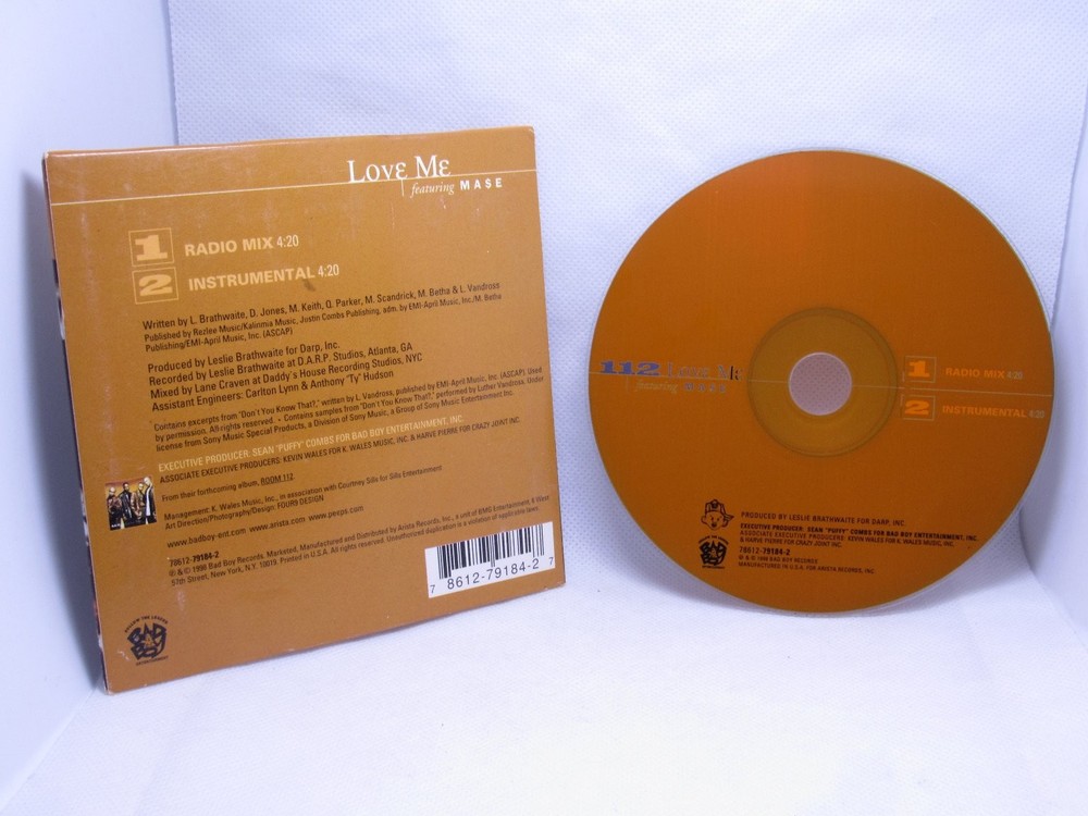 Dive into the smooth R&B sounds of 112 with their classic CD single, "Love Me," featuring the iconic Mase. This 1998 release from Bad Boy Records captures the essence of late 90s R&B and Hip Hop, showcasing 112's signature harmonies and Mase's distinctive flow. A must-have for collectors of 90s R&B, Hip Hop singles, and fans of Bad Boy Entertainment. This single includes both the Radio Mix and the Instrumental version of "Love Me," providing a complete experience for listeners and DJs alike. Produced by Leslie Braithwaite and executive produced by Sean "Puffy" Combs, this track is a testament to the era's influential music scene. Add this essential 112 single to your collection and relive the golden age of R&B and Hip Hop.