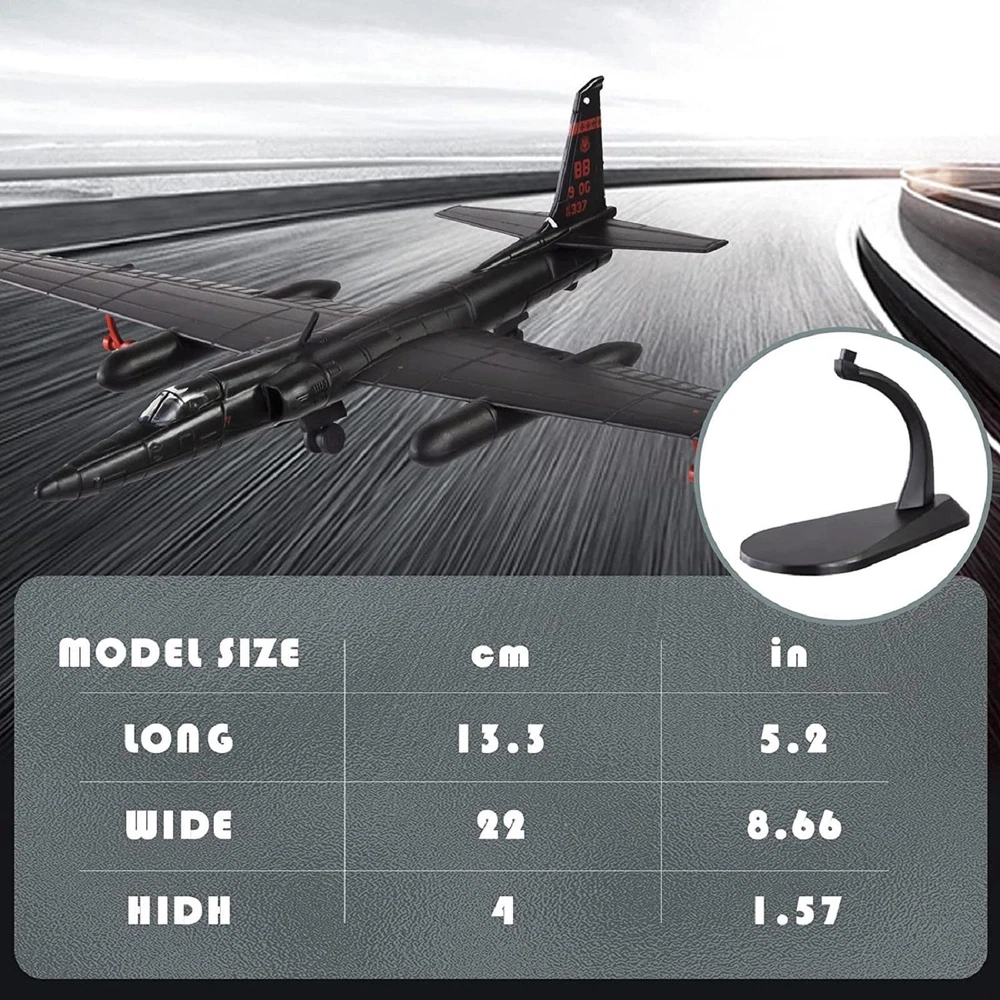 SAFE & SECURE SHOPPING 100% SATISFACTION GUARANTEED FAST SHIPPING Store Categories Store Categories You may also like 1/144 U2 Reconnaissance Aircraft Model Military Plane Souvenir Static Ornaments Product Description 1/144 Scale U2 Reconnaissance Aircraft Model with display Stand, Plane Souvenir Static Display Specifications: Product Name: High Simulation 1:144 Alloy aircraft Model Color: Black Material: Alloy+ABS Plastic Recommend Age: 12+y,18+ Model Size: 13.5x22x4cm Features: Brand new and high quality plane model. Aircraft model meet your passion for aviation collectibles with beautiful design. An accurate scale model plane for collectors and enthusiasts. Plane model can be placed in the living room, bar, company, Coffee hall as home decoration , retro and elegant, noble fashion. Package Includes: 1* 1/144 Scale U2 Reconnaissance Aircraft Model 1* Display Stand Note: Color might be slightly different due to the color calibration of each individual monitor. Please allow slightly measuring deviation due to manual measurement. Shipping Returns Contact Us Payment Shipping 1. Items sent from US warehouse. 2.Receiving time = Processing time + Shipping time 3. Processing Time: Around 1-2 business Days 4. Shipping Time: 3-5 business day it may have a little delay during some holiday (such as Christmas),any problem ,please feel free to contact Returns 1. 30 days warranty from the purchased date. Please contact us via email before returning the defective item. 2.Our warranty does not extended to any product that are physically damaged or that are not under normal operating conditions as result of misuse or improper installation on the buyer/user's part. 3.Return items should include the original packaging and all accessories. buyers MUST contact us for the returning address. 4.In all cases, buyers pay shipping fees at their own cost to return products for exchange or refund. We will be responsible for the postage of replacements. Refund will be made upon receipt of the returned item. Contact Us Pls contact us if you have any problems,we will try our best to solve for you Payment We accept all verified payment from eBay. Copyright © 2022 Tongtool