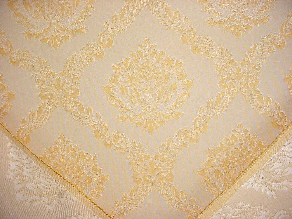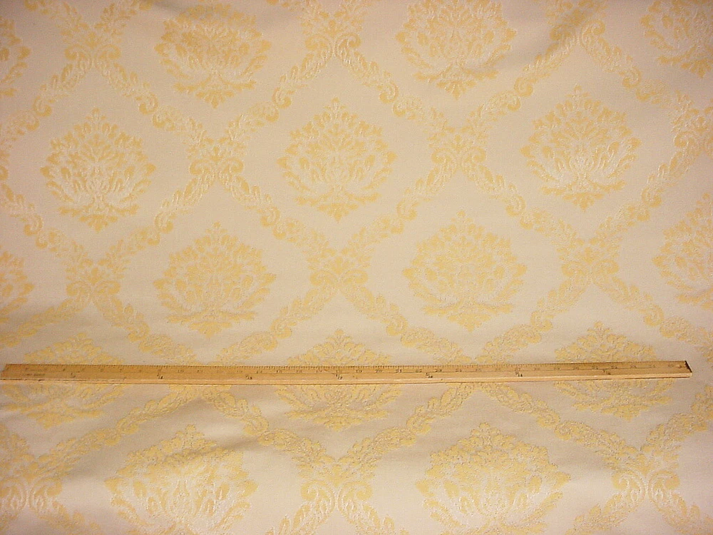 This offering is for a luxury material from a To the Trade Only design house, available here at a fraction of the retail cost. Design House: Scalamandre Pattern Name: Cortona Damask Pattern Number: M0 00011406 Colorway: Neutral / Beige / White Collection: Old World Weavers Length and Width: 1-1/4 yards by 55 inches wide A Brief Description: A Stunning Spanish Gothic floral damask in yellow gold on a butter background. Textured hand, light body and matte finish. Fiber Content: 72% cotton, 28% spun rayon Durability / Double Rub Count: Weight per yard: 13 ounces per yard Repeats: Horizontal - Inches / Vertical - 14 Inches Imported from: Italy Value per yard: $197.00 Total Value of offering: $246.25 --------------- Our Friendly Fine Print: All material is first quality in perfect condition and is carefully stored in a smoke-free, pet-free environment. Shipping: Distinctive Threads offers free shipping to the lower US States as part of our value. If you are located outside the continental United States, please contact us for a shipping quote. Worldwide shipping is available via the United States Postal Service and FedEx International. Please feel free to message us for a shipping quote. A note about color: We describe the colors we see as best we can and hope the photos accurately depict the colors. Color is subjective and differs from person to person and lighting. We also offer samples for purchase. Thank you for stopping by our store. We look forward to providing you with an exceptional, unique and distinctive online experience.
