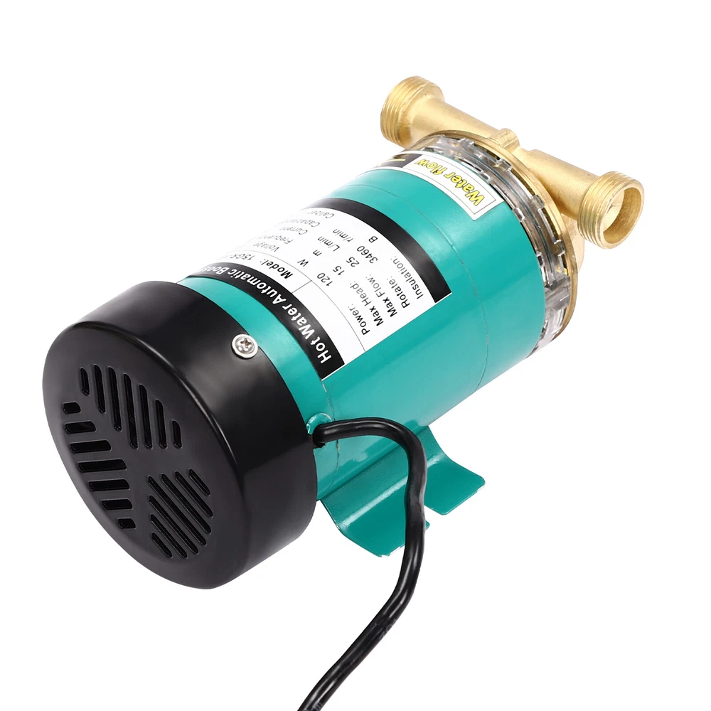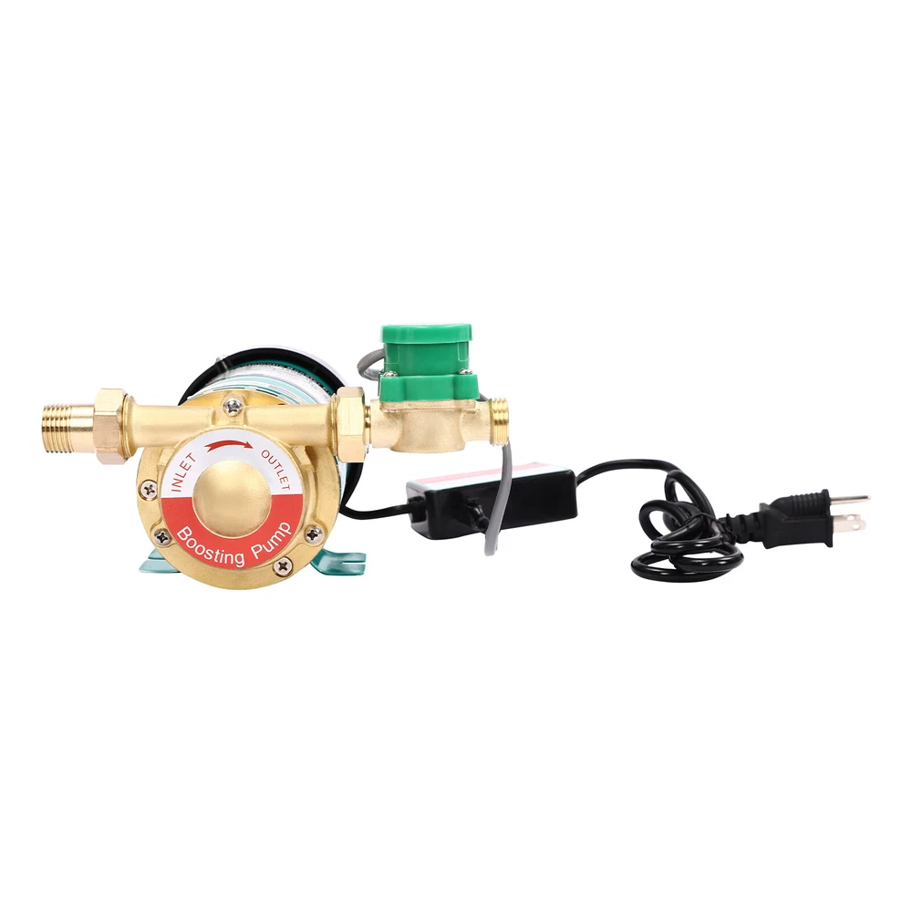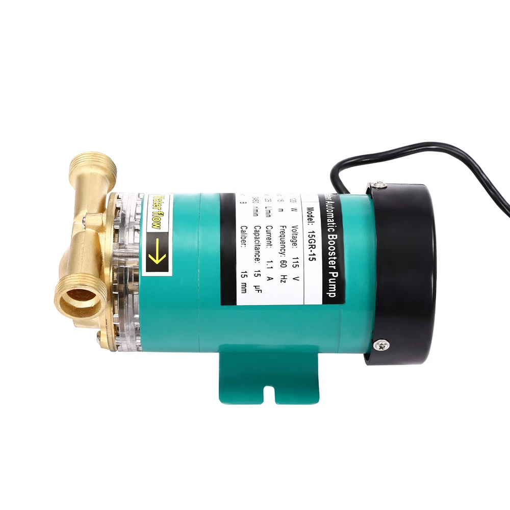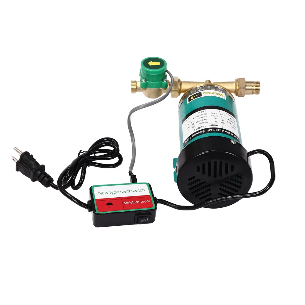 Package Included 1*Water Pressure Booster Pump 1*Water Flow Switch 1*English Manual Other Needed Accessories Specifications Color: Green Model: 15GR-15 Process: Bake Paint Assembly Required: Yes Plug Type: US Standard Motor Type: Copper Core Motor Material: Copper, Aluminum, Iron, Plastic Protection Level: IP45 Current: 1.1A Power: 120W Voltage: 115V Frequency: 60Hz Rotate: 3460r/min Capacitance: 15μF Max Head: 15m/49.2ft Max Flow: 25L/min/396GPH Max. Water Pressure: 1.5bar/21.7PSI Insulation: B Noise: 30-50dB Max. Water Temperature Range: 80-100℃/176-212℉ Power Cord Length: 1m/3.28ft Product Height: 19.5cm/7.68inch Pump Body Diameter: 7.5cm/2.95inch Total Length: 18.5cm/7.28inch Connection Size: G1/2" Outlet Diameter: 3/4" 115V 120W Household Shower Booster Pump Automatic Boost Water Pressure Pump IP45 120W 115V Household Booster Pump Automatic Boost Water Pressure Pump Fits Shower Description This 120W water pressure booster pump will provide you with an easy solution to the worry of insufficient water pressure in your home. The efficient pressure increase function it brings will make your life more comfortable and convenient. Its simple appearance design is suitable for various home occasions. Besides, it comes with a swift switch, which makes it easy to operate, bringing more convenience and comfort to your home life. Key Features High-quality Material: The copper, aluminum, iron, plastic, and bake paint treatment will effectively protect this product from corrosion, abrasion, high temperature, and rust, keeping it useful for a long time. Excellent Performance: The 120W powerful copper core motor provides this product 21.7PSI maximum pressure, 396GPH flow rate, and 49.2ft head, which will bring you a strong and stable water pressure and allow you to have a comfortable shower. Thoughtful Design: Designed with a water flow switch, it can automatically adjust to your needs, increase the pressure of the household water tank, and keep a steady pressure. Low Noise: It will operate at a noise level of about 30-50db, which is equivalent to the sound of a normal conversation, and will not affect the normal life of your family and neighbors. Safety Protection: The water and electricity isolation design, ground protection, leakage protection, water shortage protection, overheating protection, anti-idling , and overload protection greatly improve the safety of use. Quick Heat Dissipation: The powerful cooling fan and multiple heat dissipation holes can accelerate the efficiency of heat dissipation to protect the motor from overheating and extend the service life of this product. Simple Installation: We provide you with the necessary accessories and an English manual so that you can install it with less time and effort. Compact Size: It will only take up a small area, which is very space-saving. Details Standard Interfaces: They allow you to easily connect the water pipes(not included) to this product. Stable Base: It prevents the pump from skidding and reduces noise during operation. Switch Control: The moisture-proof swift switch makes it simple and quick to control this product on/off, bringing more convenience to your operation. Application It applies to duplex apartments, suburban villas, high-rise buildings with low water pressure, kitchens, bathrooms, water heaters pressurized, household water pressurized, and solar water heaters pressurized. It is suitable for water heater pipe pressurization with insufficient water pressure to prevent the water supply from being cold. How to Install: Wrap sealing tape(not included) around the inlet, add a gasket, and screw on the adapter. Wrap sealing tape(not included) around the outlet, add a gasket, and screw on the water flow switch. Connect the water inlet to the water pipe(not included). Connect the water outlet to the water heater water pipe(not included). After fixing the pump, make sure it is installed correctly, then turn on the power and use it. Specifications Color: Green Model: 15GR-15 Process: Bake Paint Assembly Required: Yes Plug Type: US Standard Motor Type: Copper Core Motor Material: Copper, Aluminum, Iron, Plastic Protection Level: IP45 Current: 1.1A Power: 120W Voltage: 115V Frequency: 60Hz Rotate: 3460r/min Capacitance: 15μF Max Head: 15m/49.2ft Max Flow: 25L/min/396GPH Max. Water Pressure: 1.5bar/21.7PSI Insulation: B Noise: 30-50dB Max. Water Temperature Range: 80-100℃/176-212℉ Power Cord Length: 1m/3.28ft Product Height: 19.5cm/7.68inch Pump Body Diameter: 7.5cm/2.95inch Total Length: 18.5cm/7.28inch Connection Size: G1/2" Outlet Diameter: 3/4" Packaging Size: 24*20*12cm/9.45*7.87*4.72inch Gross Weight: 3.7kg/8.16lbs Net Weight: 3.4kg/7.5lbs Package Included 1*Water Pressure Booster Pump 1*Water Flow Switch 1*English Manual Other Needed Accessories Notes Water pipes are not included in this package. Before purchasing, please check the water pressure at home. If the water pressure at home is greater than the booster pump, the boosting effect will not be achieved. When the pump leaves the factory, a small amount of water may remain in the pump. This is due to strict tests on the pump to ensure quality and meet the testing standards. This does not mean that the pump has been used. Please strictly follow the instructions for installation and use, and pay attention to electrical installation specifications. Before use, please carefully check the cables, power supply, etc., and take protective measures to avoid safety hazards. We suggest that professionals install this product. It is forbidden to install it upside down to prevent water from leaking into the motor, which may cause a short circuit and burn the motor. When installing the water flow switch, place the cover face of the water flow switch facing upwards and make sure to tighten the movable joint next to the water flow switch. Once the water flow switch is turned, the internal screws may become loose due to compression, causing water leakage. Therefore, be sure to ti