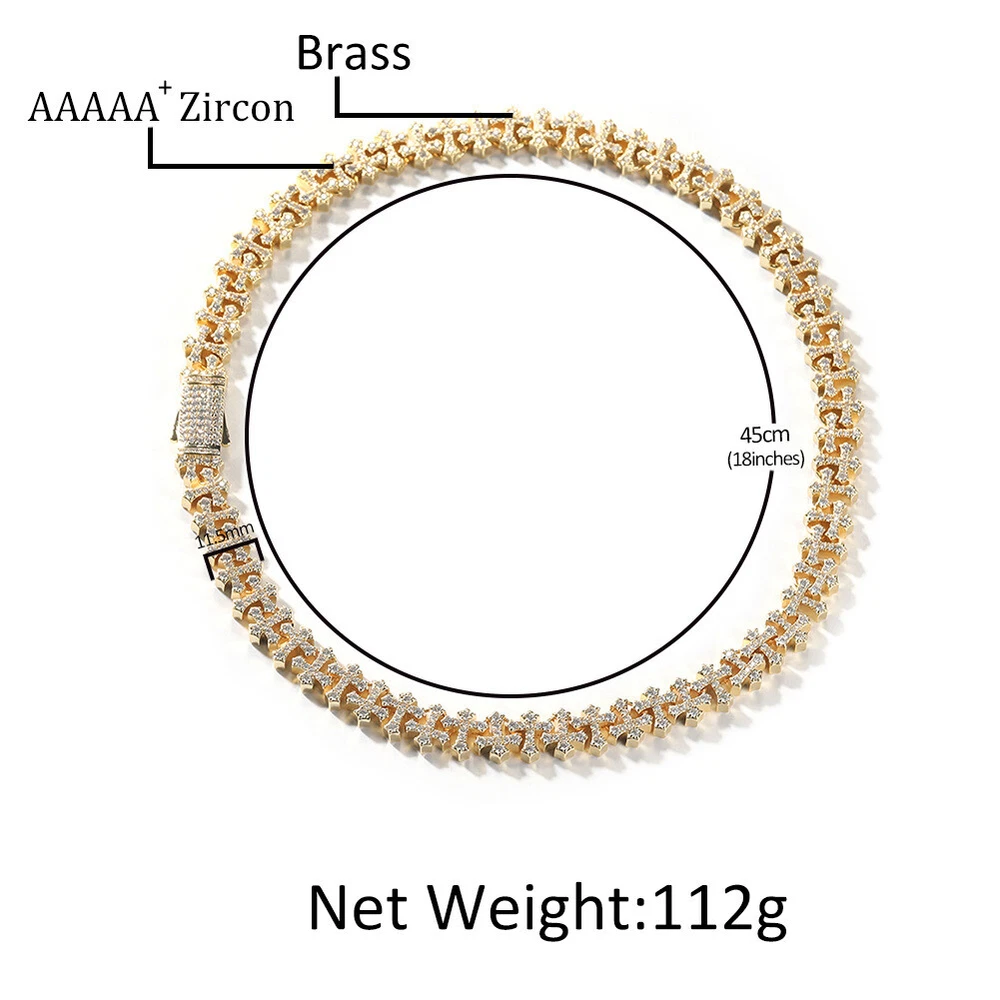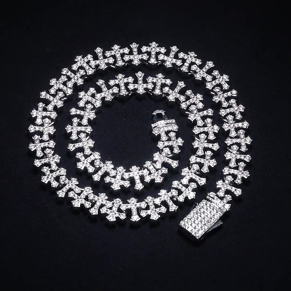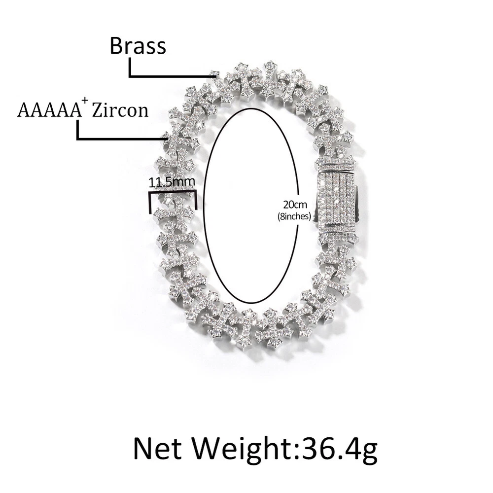 11.5mm Hip Hop Cross Tennis Chain Necklace Bracelet with 5A Zircons