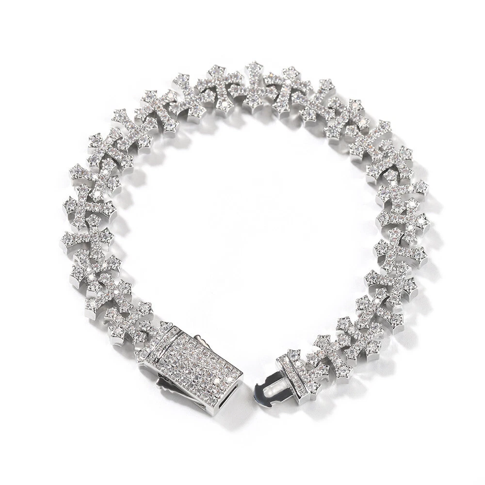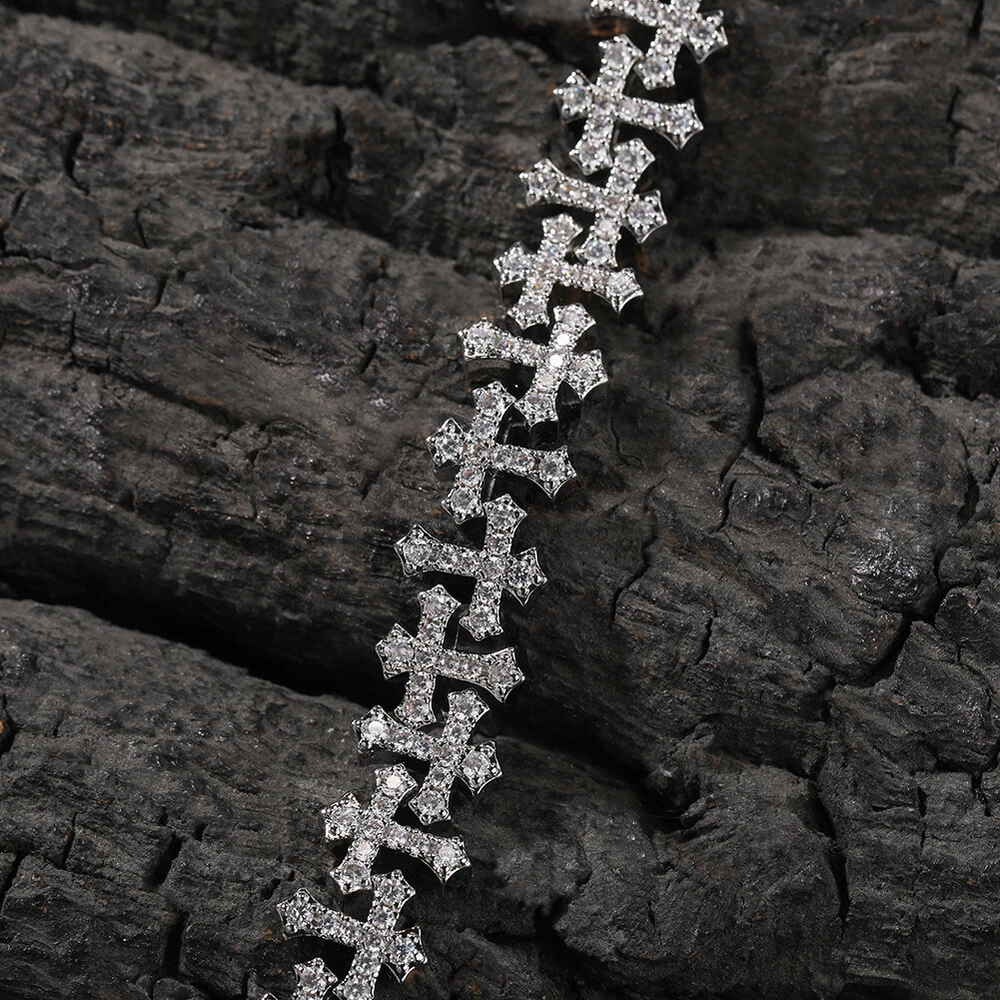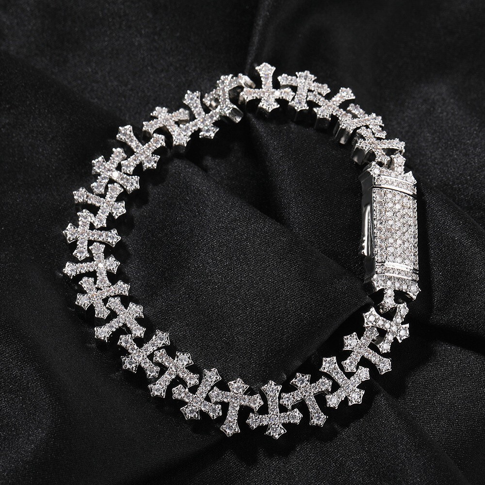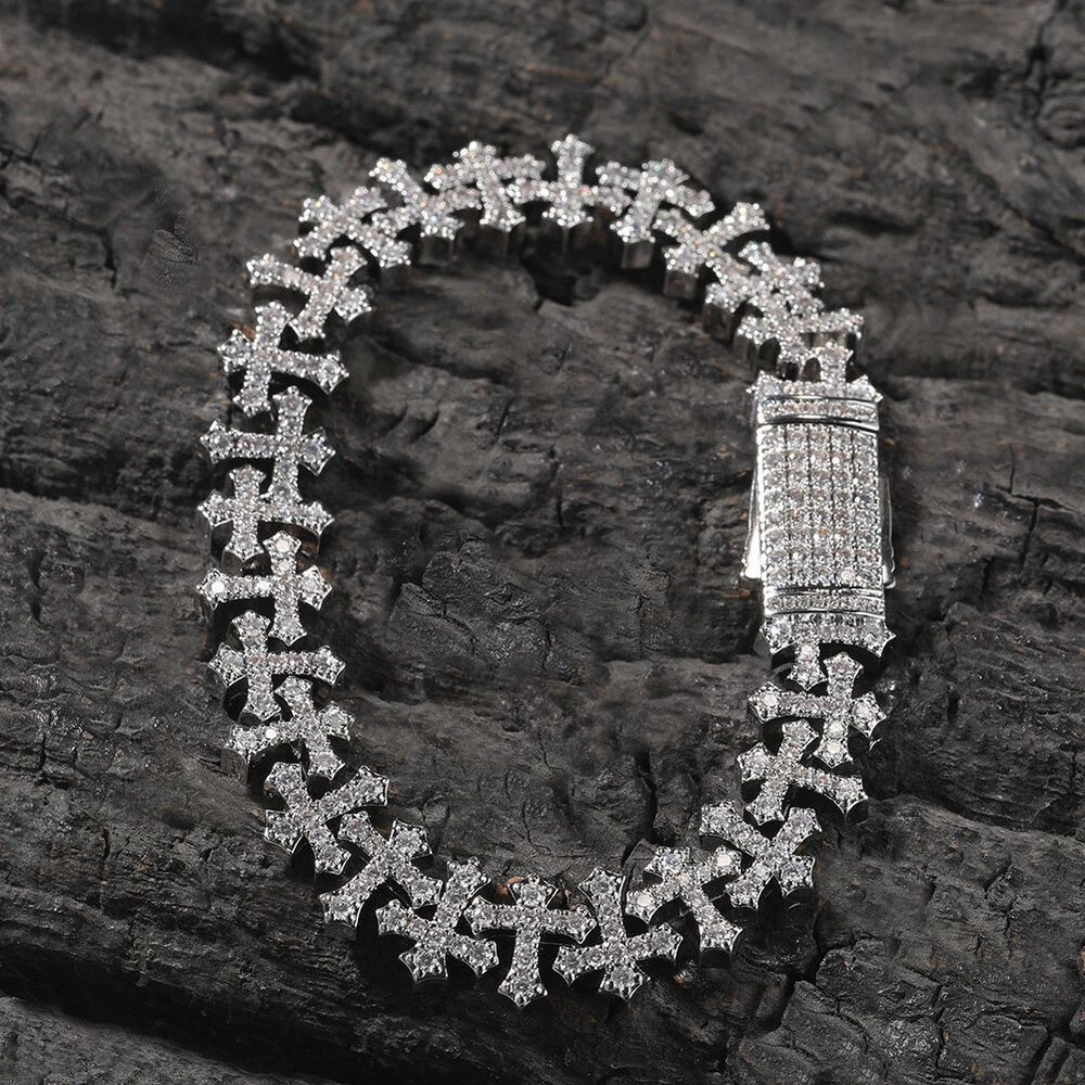 11.5mm Hip Hop Cross Tennis Chain Necklace Bracelet with 5A Zircons