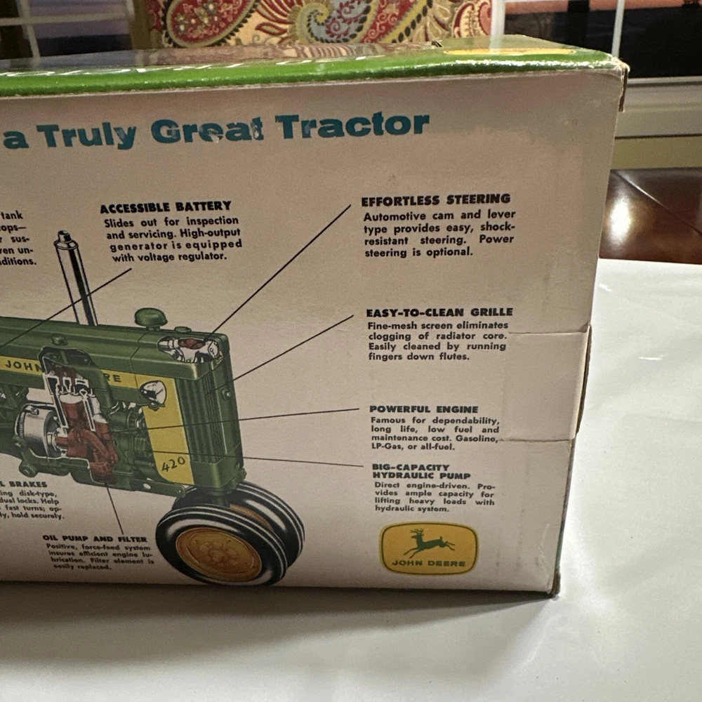 This John Deere tractor is an awesome collectible! The detailing is spot-on, and it looks just like the real thing. Perfect for display or play—comes brand new in the box. Great addition for any farm toy enthusiast!
