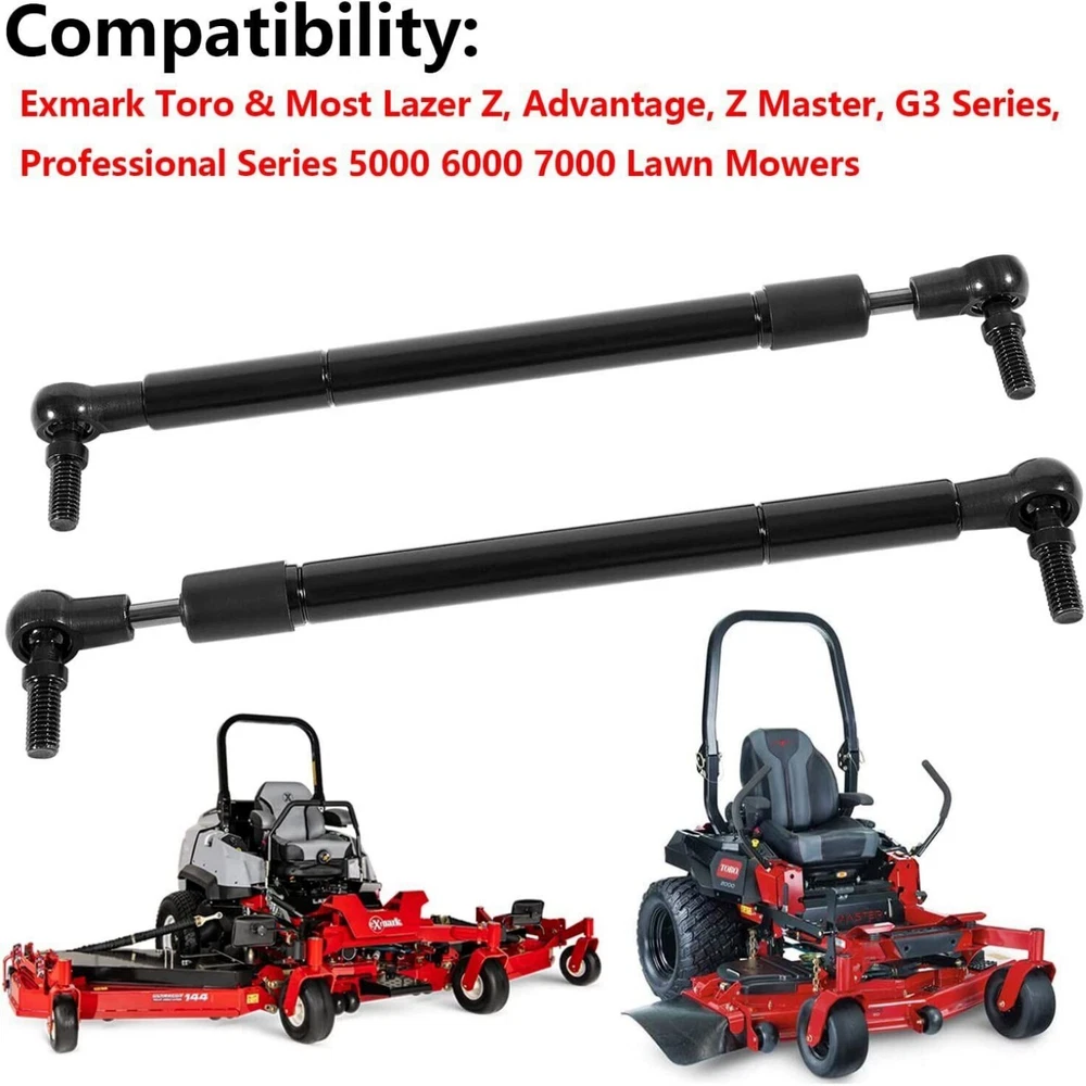 Feature 【 Fitment 】 For Exmark Toro Lawn Mowers, for Lazer Z, Advantage, Z Master, G3 Series, Professional Series 5000 6000 7000. Please check your mower model before purchasing. 【 Feature 】 This gas damper attaches to steering control levers. 9 and 1/2" Closed Length, 13" Extended Length, 2 Threaded Studs, 5/16" – 18 with resistance shock and dust shield upgrade designed specially. 【 Smooth Controls 】 The Steering Dampers eliminate hydraulic system negative feedback through the levers to reduce operator fatigue, reduce turf damage and extend hydraulic system life. 【 Material 】 Made of premium steel provides better performance and longer service life with tight ball joint. And when you're on the road, enjoy endless rides with total control for peak performance and fewer fatigue thanks to enhanced stability and steering feedback. 【 Warranty 】 Not satisfied with the product? Let us make it up to you! We promise full returns for items within 30 days of receipt of shipment, and free 365-day-warranty is guaranteed. Product Description 116-0027 steering damper is compatible with Exmark Toro & Most Lazer Z, Advantage, Z Master, G3 Series, Professional Series 5000 6000 7000 Lawn Mowers 。 Replaceable part numbers: 116-0027, 109-9820, 1160027, 1099820, 241-076, 142-8117. Kit Includes 2*116-0027 steering dampers.