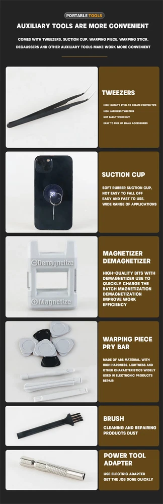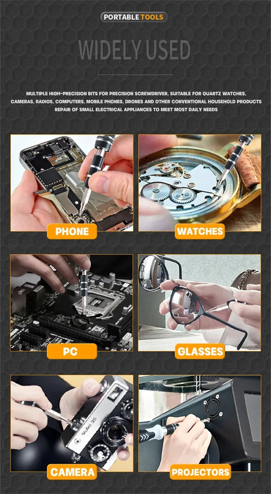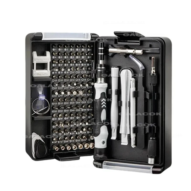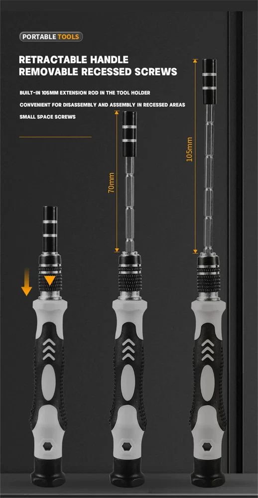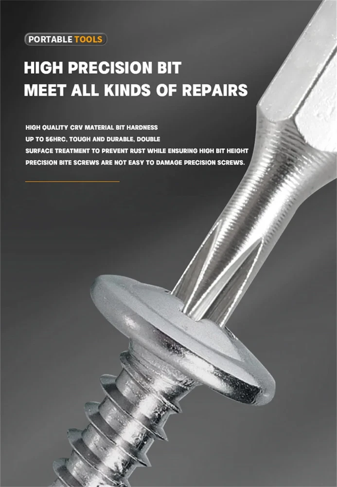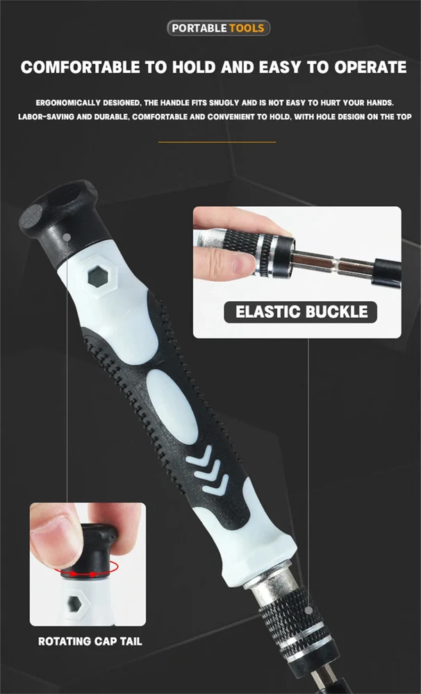 【ALWAYS CHOOSE THE CLASSIC】 The 116 in 1 Precision Screwdriver Kit is the most original and classic electronics repair tool kit, containing 98 screwdriver heads and 17 accessories. The electronic multi-screwdriver basically covers all the tools for electronics and small repairs - perfect for laptops, phones, computers, jewelers, glasses, game consoles, drones, and other electronics. 【TACKLE ALL WITH EASE】 The laptop screwdriver kit features a rotatable cap, ergonomic handle design, and a non-slip grip that provides comfort for extended use. The strong magnetic tip makes it easy to pick up and hold screws, and the flexible extension tool is perfect for those hard-to-reach screws. The magnetic driver kit also includes magnetic bit holder, tweezers, opening tool kit, SIM card removal tool, suction cup, and more. 【RELIABLE MATERIAL】 This magnetic replaceable screwdriver is crafted from high-quality CR-V steel, which boasts impressive strength, precision, and durability without damaging devices. Every bit is designed using thousands of refined repair data and undergoes a high-temperature treatment process to ensure stability and resistance to stripping, guaranteeing long-lasting use. 【PRACTICAL & COST-EFFECTIVE】 This computer screwdriver repair kit is equipped with 29 spare bits for frequently used models - such as phillips, slotted, torx, Y-type and hexagon, which reduces the trouble to find a new bit or replace a new screwdriver set if the bit is lost or damaged, making the lifespan of this electronics repair toolkit longer and save your money! 【PORTABLE & RELIABLE】 This mini screwdriver set has a compact size of 6.7 x 3.5 x 2.1 inches, making it the ultimate tool kit for computer enthusiasts on the go! The classic ABS case features a secure stay-shut latch, ensuring complete protection and organization of your tools. Plus, with Necamocu's lifetime warranty, you can shop with complete peace of mind. Don't miss out on this must-have tool kit for your tech arsenal! Content / delivery: 1x magnetic handle 1 x extension shaft 1 x short post 1 x extension shaft 1 x toolbox 1 x tweezers 1 x iPhone pin 1 x magnetiser/demagnetizer 1 x suction cup 6 x bracts 3 x crowbar 7 x 4mm Mini Sockets: M2.5 · M3 · M3.5 · M4 · M4.5 · M5 · M5.5 91x precision bit Packing included: 1x Padarsey Multi-Magnetic Screwdriver Set 116 in 1 Note: Please allow 1-2cm measuring deviation due to manual measurement Due to various monitors and lighting conditions, colors may be slightly different from listed photos