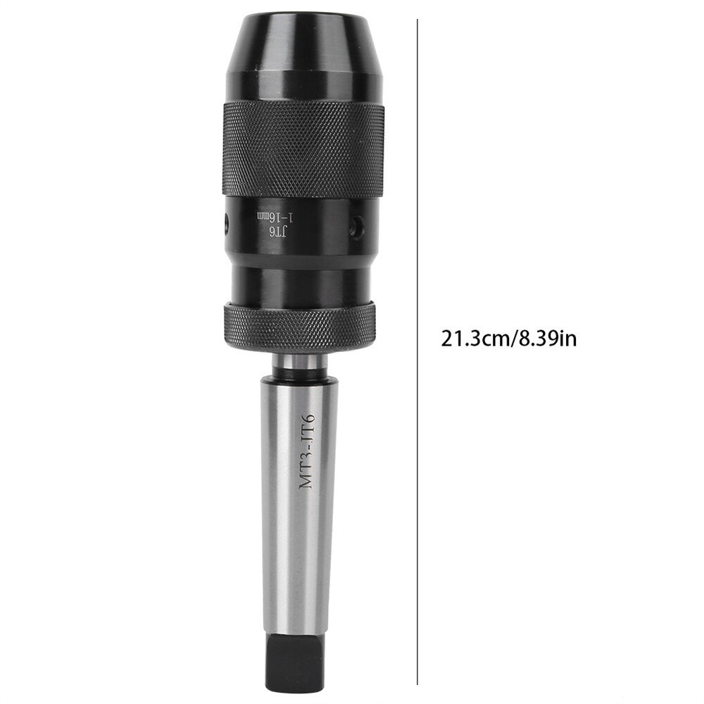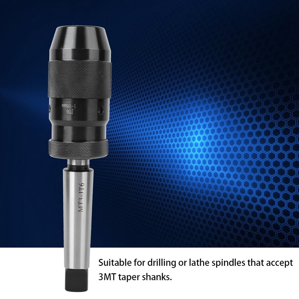 Feature : 1. Suitable for drilling or lathe spindles that accept 3MT taper shanks. 2. Specially hardened key parts improve the durability of the drill chuck. 3. Self-locking keyless feature automatically increases grip, high reliability and stability. 4. High precision, suitable for high precision machining and long service life. 5. The method of use is simple, practical, and has a firm connection performance. Specification : Item Type: Self Tighten Drill Chuck Clamping Range: 1/32in -5/8in (1-16MM). Mount: JT6 mount Adaptor Size: Approx. 13 x 2 x 2.5cm / 5.1 x 0.8 x 1in Drill Chuck Size: Approx. 10 x 4.5 x 4cm / 3.9 x 1.8 x 1.6in Package List : 1 x JT6 Drill Chuck 1 x MT3-JT6 Adaptor