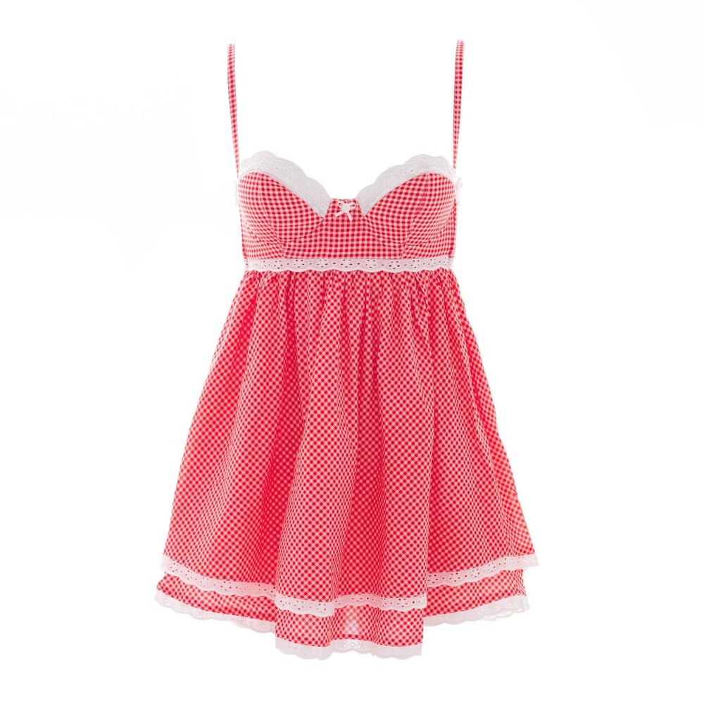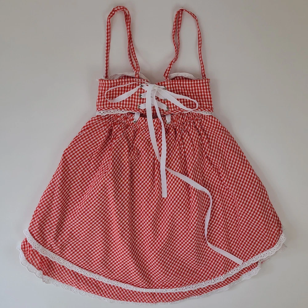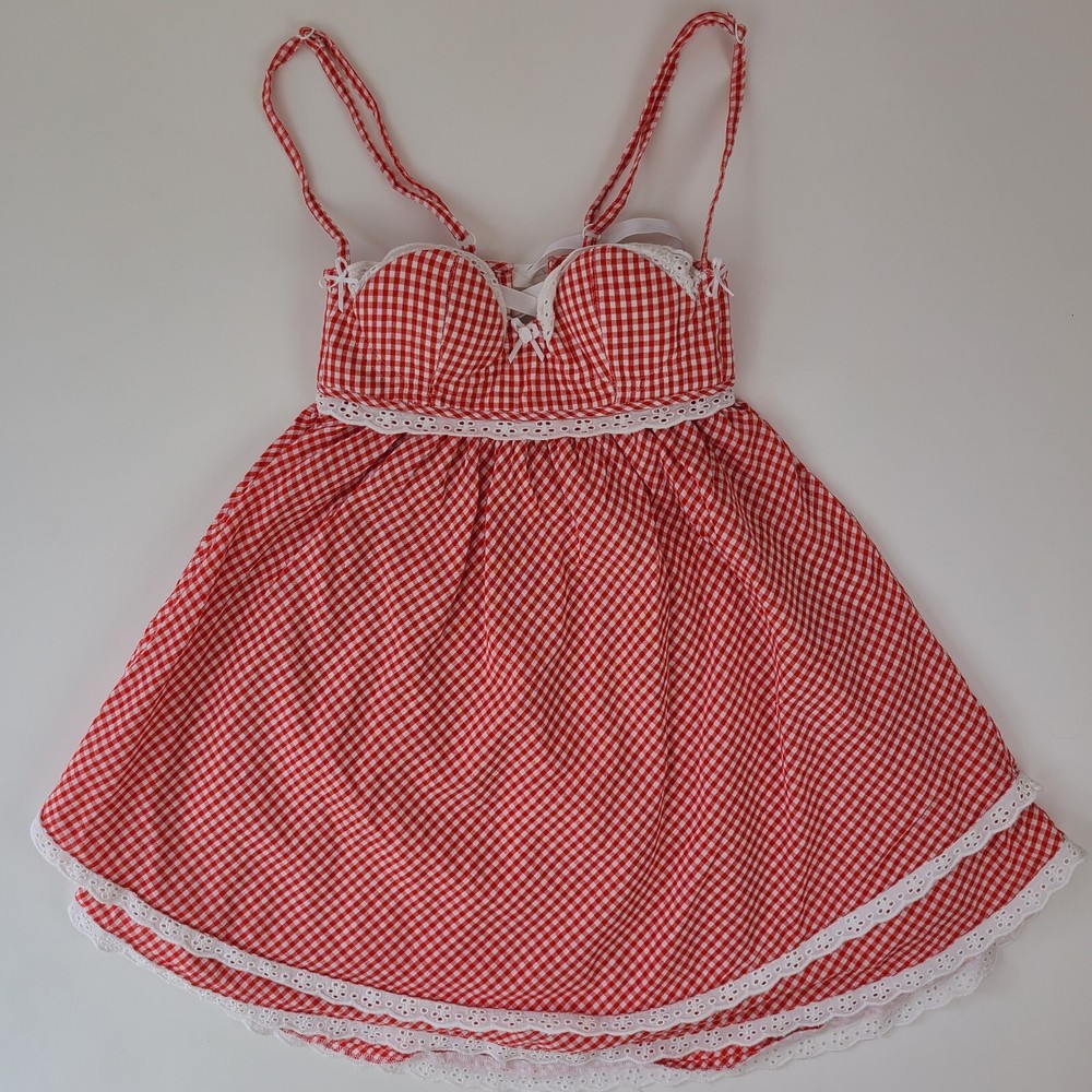 So special ✨ Babydoll dress with underwire cups topped with pretty custom eyelet lace and tiny rosettes. Adjustable straps with little heart sliders. Full tiered skirt trimmed with eyelet lace. Cups have molded padding so that they give you a nice shape. Back laces up with cute grosgrain ribbon and makes it fit perfectly. This was worn only once for pictures! I love this dress and would keep it but unfortunately the cup sise is too small for me and it's too late to return. This would best fit A/B cup size. Will accept reasonable offers. You will receive exactly what is pictured/photographed. All sales are final. Please message if you have any questions or would like additional photos. Smoke-free/pet-free home