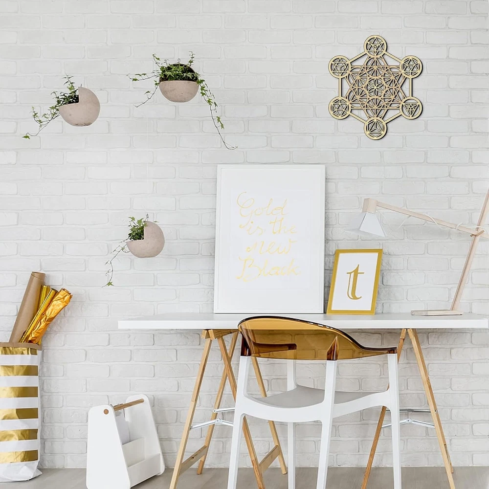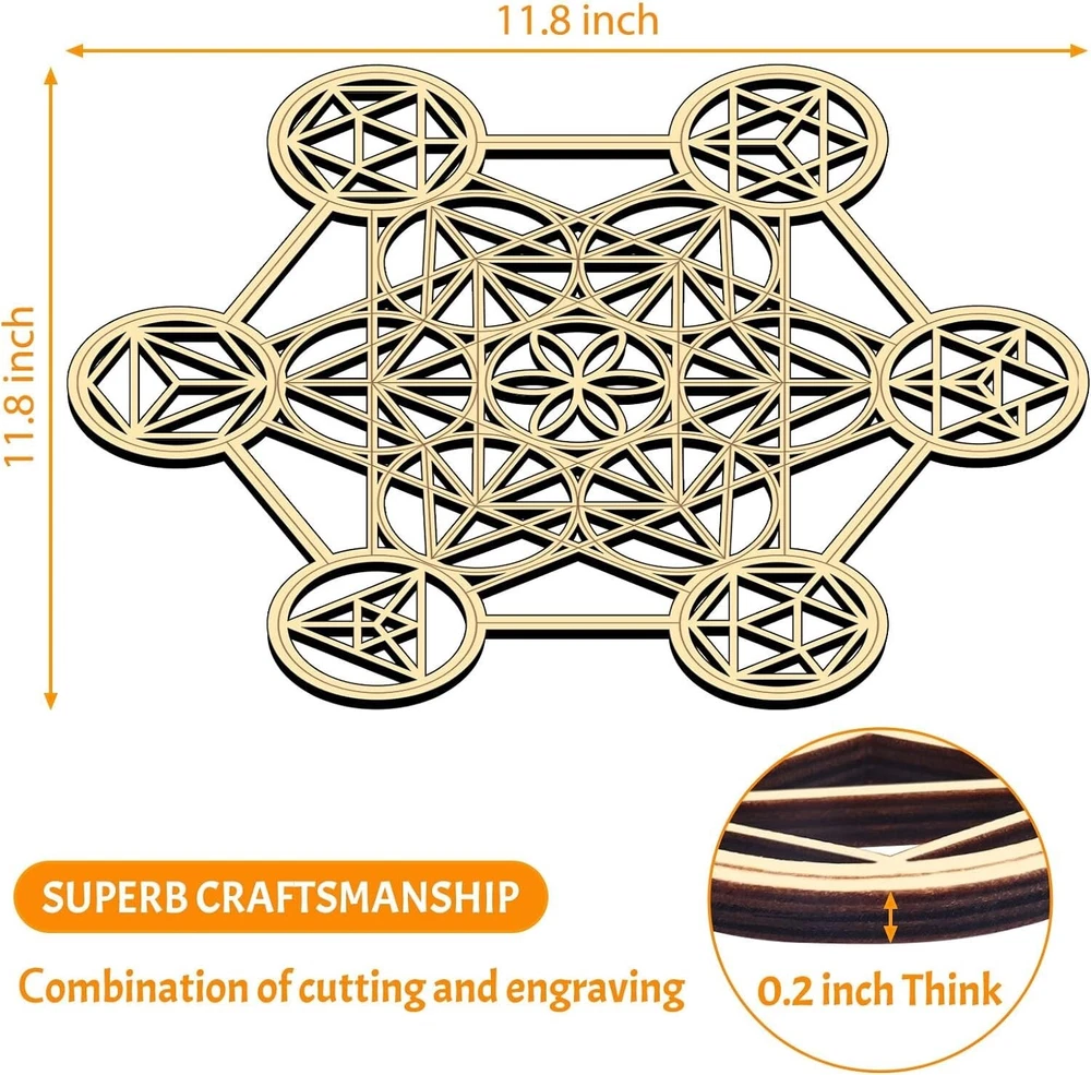 11.8" Metatron's Cube Wall Decor Sacred Geometry Wall Art Crystal Grid Sacred Bring you positive energy: The wall decoration is called Metatron's Cube, which is balanced and provides a visual focal point when you are meditating. It is said that this mysterious cube was used by the Archangel Metatron to monitor the flow of energy connecting the earth and the divine. It can bring you positive energy and replace your negative thoughts with positive ones. Home wall decoration: this holy geometry wall artworks add a nice atmosphere for your home enviroment, giving your home a wonderful ornament and a high-spiritual meaning thing. Besides, the special wall decoration will Harmonize meditation wall art for yoga studio, cafes, bars, office, as well as artistic creation. Apply widely: The sacred geometry hollow wooden sheet can be placed or hung on the wall. You can also set the crystals and stones on the crystal grid for ritual magical or spiritual crystal healing, or combined with Reiki energy work for healing. Excellent quality: This Metatron's Cube crystal grid is 11.8 inches in diameter and 0.2 inches thick, made out of high quality natural wooden board via precise laser cutting and low-power laser engraving, making it unique and beautiful. Great spiritual gift: This is a great spiritual gift for a housewarming party, anniversary, birthday, thanksgiving Christmas and etc. You can give it to your family, friends, colleagues, teachers or anyone you want to give positive energy to.