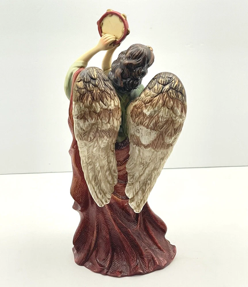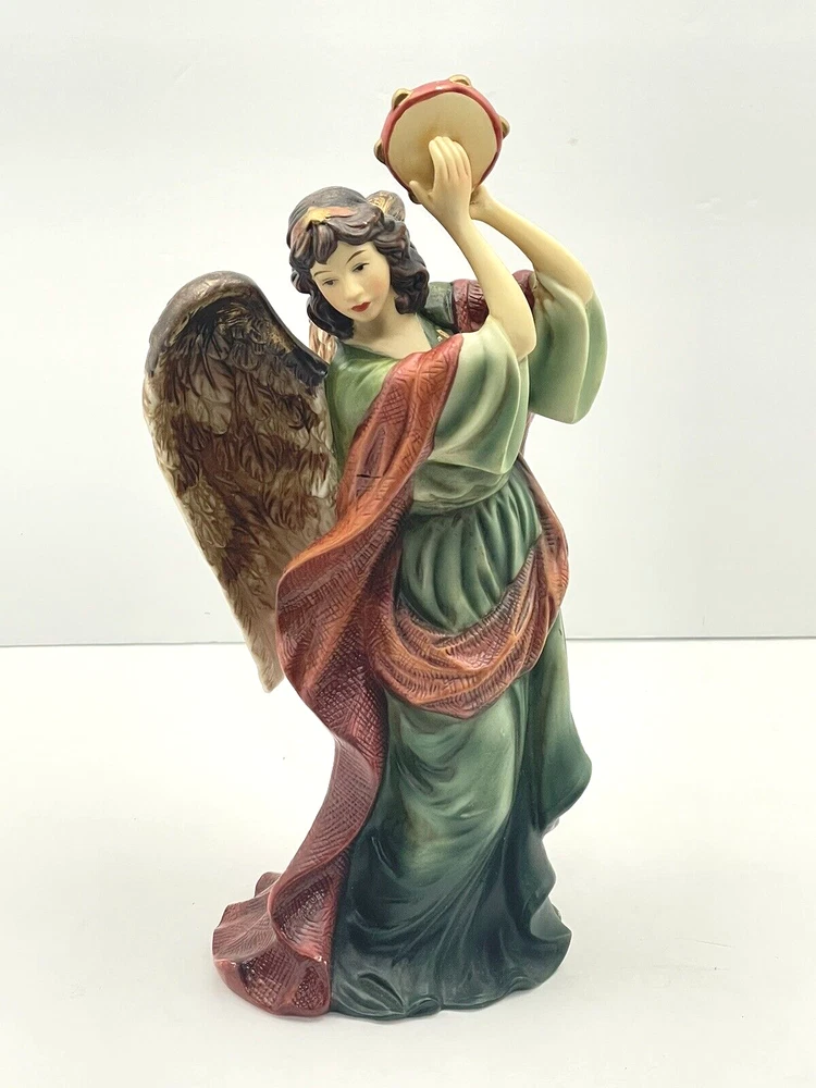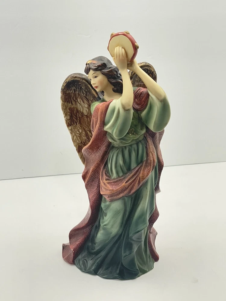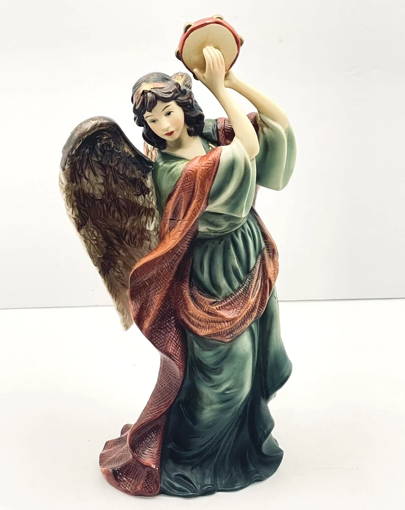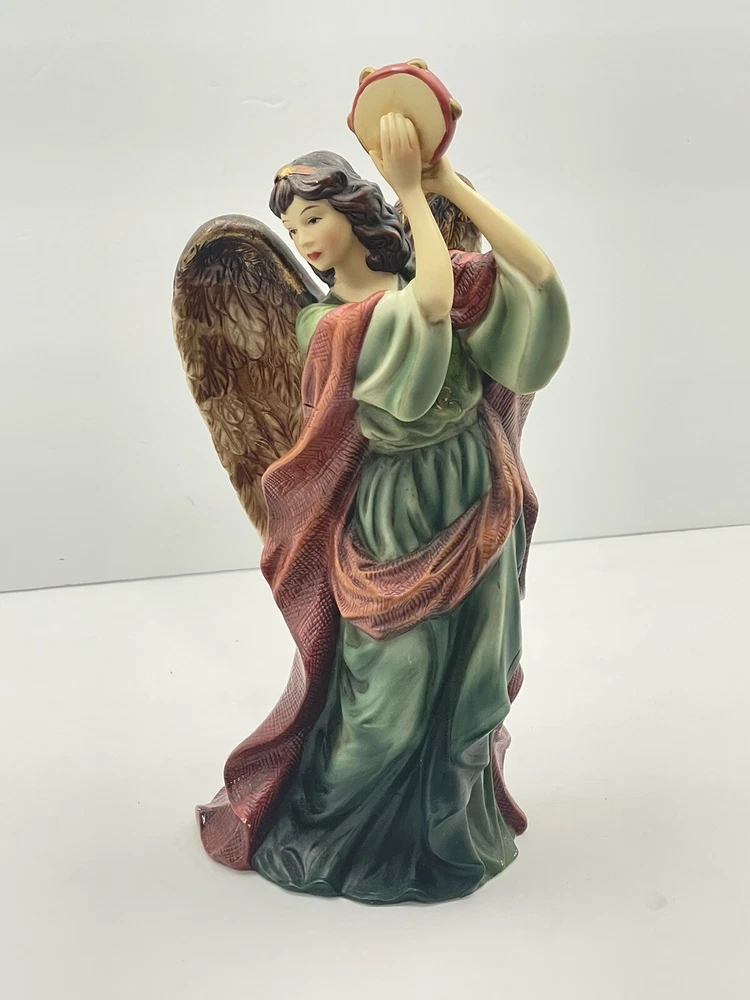 Home11"H x 4.75" LAngel with Musical Instrument Fine Hand Painted Porcelain Figurine