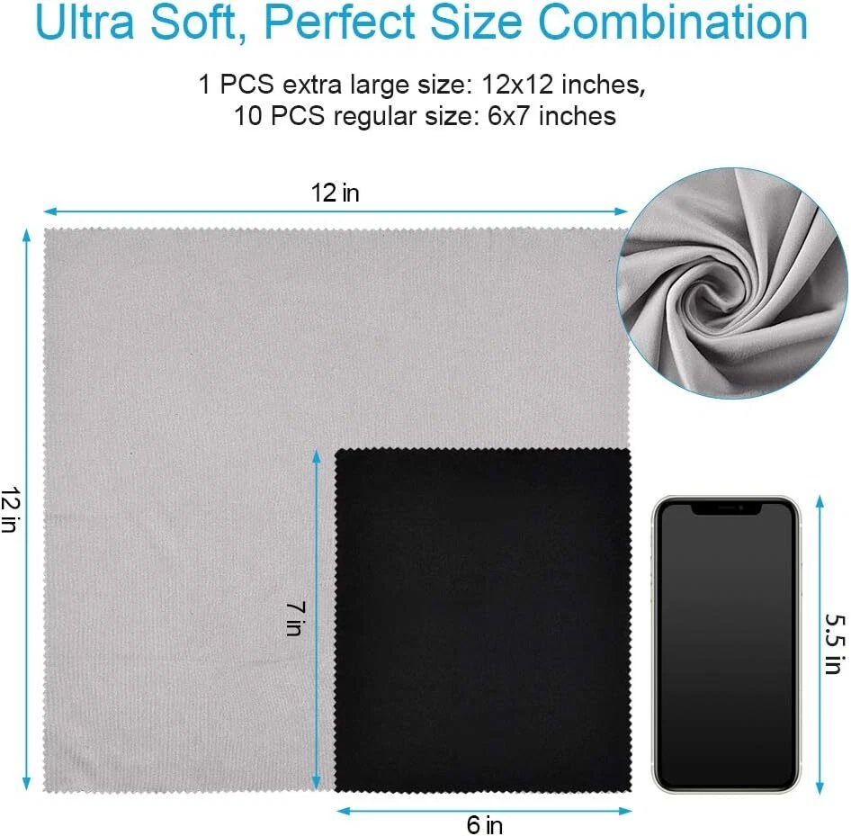 11PCS ParZary Eyeglass Cleaning Tissues & Cloths, Premium Soft Glasses Cleaner,1PCS Oversize (12"x12") + 10PCS (6"x7") Screen Lens Cleaner, Great for Electronics, Ipad, Laptop, Individual Wrapped Product Details Product Dimensions : 8.5 x 7.6 x 0.67 inches; 2.4 ounces Manufacturer : ParZary 【Untra Soft, Perfect Size Combination】ParZary eyeglasses cleaning Tissues & cloths are made of premium soft materials. Including: 12 x 12 inches(1pcs oversize) + 6 x 7 inches(10pcs regular size). Different sizes can be used to clean different size screen surfaces. 【Widely Used】Effective to wipe off the dust, smudges,streaks and fingerprints of any screen surfaces,such as eyeglasses,Cell Phones,Ipad,laptop,camera,tablets,mirror, watch,glass and most electronics.etc. 【Reusable】ParZary cleaning cloth can be used for mutiple times. If you wash them gently with water, and then air natural before using for the first time, the effect will be better. 【Three Colors, Individual Wrapped】We provide three colors(grey,black,blue) of lens cloth. Different colors for different useage or different people. And each glasses cleaning cloth is individual wrapped.You can put them in different places. 【Package & Friendly Customer Service】Package including: 1pcs grey extra large size microfiber cleaning cloth, 5pcs black & 5pcs blue regular size cleaning cloths.Please do not hesitate to contact us if you have any questions during use them, we will provide a satisfactory solution for you within 24 hours.