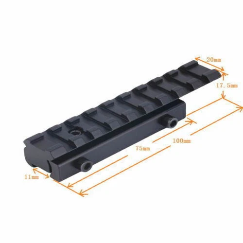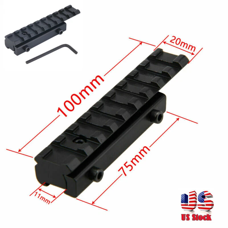 You may also like 5mW Adjustable Blue BLaser Pointer Visible Dot Torch Light 39.99 USD Free shipping TAC 2 in 1 Hunting LED Rifle Flashlight & Green Laser Sight Combo For 20mm Rail 30.99 USD Free shipping 1000Miles Green Laser Pointer Pen USB Rechargeable Visible Beam Light Lazer 6.99 USD Free shipping Tactical 45 Degree Offset 1" Scope Ring Flashlight Picatinny Light Laser Mount 7.99 USD Free shipping Tactical Red Laser Beam Dot Sight Scope For Rail Weaver 8.88 USD Free shipping Red Laser Pointer Red Light Visible Beam Lazer Rechargeable USB Rechargeable 5.99 USD Free shipping Tactical Mini Red Dot RMR Reflex Sight Scope for Glock 17 19 W/20mm Mount 29.88 USD Free shipping 2 MOA Shake Awake Red Dot Sight Scope for 1x20mm Sig Sauer Romeo5 SOR52001 M1913 52.99 USD Free shipping US STOCK compact 4X32 Compact Scope 223/ 308/ Crossbow Scope /w Rings With Clip 24.59 USD Free shipping Green dot laser sight rifle gun scope with Rail Mounts + Pressure switches 18.99 USD Free shipping Tactical Rail Red dot Scope Sight Polymer Base Mount for Glock G17 G19 7.98 USD Free shipping 1000M USB Rechargeable 1mW Green Laser Pointer Pen Visible Beam Light Lazer US 5.99 USD Free shipping 3 Slots 1" Scope Riser Mount Fit 20mm Picatinny Rail for Optics Red Dot Sight 7.89 USD Free shipping 532nm Green Laser Pointer Visible Upgrade Dot Light USB High Power+5 Laser Head 33.99 USD Free shipping 14250 CR2 Battery 280mAh Li-ion 3.7V Rechargeable Batteries For Laser Light 3.59 USD Free shipping Set of Bike Turn Signals Light Tail Rear w/ Smart Wireless Remote Control USB 14.89 USD Free shipping Tactical Green/Red Laser Lazer Beam Dot Sight Scope Mount Rifle Hunt# 8.88 USD Free shipping 11mm Dovetail to 20mm Rifle Base Scope Mount /20mm Extend Picatinny Rail Adapter 5.99 USD Free shipping Product Description 11mm to 20mm Rifle Scope Mount Dovetail Extend Weaver Picatinny Rail Adapter USA Fits 9-11mm dovetail rails • Heght: 20mm • Length: 100mm (dove rail: 75mm) • Bottom: 11mm. Top 17.5mm • Weight: 65g • Comes with alan key Payment Shipping Terms Returns Contact Us About Taxes 1. We accept payment via PAYPAL ONLY . 2. Payment must be made within 4 days of auction closing. (Non-payment may result in a UPI (Unpaid Item) being put on your account. eBay will automatically close your account if you accumulate 4 UPI's total.) 3. TOTAL AMOUNT DUE includes the final auction price plus S&H(Shipping and Handling). 4.S&H will be determined based upon the SHIP TO address, Tax and customs. PLEASE NOTE: S&H DOES NOT INCLUDE DUTIES, LOCATL TAXES OR ANY OTHER IMPORTATION FEES. We are not responsible for any custom duty or import tax. 5. Please list your special requests (color, packages, etc.) in the PAYPAL NOTES SECTION when you make payment. Our working hours Beijing time from 9:00 a.m. to 18:00 p.m . Monday to Friday Item will be shipped from US/DE/UK warehouse;within 1 days after payment received, usually delivery time 24-72 hours. Warranty: 1. One Year Manufacturer's Warranty for defective items (excluding items damaged and/or misused after receipt). Accessories come with a 3-month warranty. 2.If buyer requests a return when there is no quality problem of the item he received,return postage has to be paid by buyer,and postage for the item won't be returned. 3.If item is damaged or defective on arrival,buyer can either requests a refund or replacement,and postage will be paid by us,meanwhile,the item must be returned. Note: A. Customs duties is neither included in the item value nor the postage,which should be in the responsibility of buyers. B. Please check with your country's customs office to determine what these additional costs will be prior to bidding/buying. 1. You have 7 days to contact us and 10 days to return it from the date it was received. WE WILL ISSUE YOU A REFUND OR REPLACEMENT ! 2. All returned items MUST BE in the original packaging and you MUST PROVIDE us with the shipping tracking number , specific reason for the return, and your eBay ID . 3. We will refund YOUR FULL WINNING BID AMOUNT, upon receipt of the item in its original condition and packaging with all components and accessories included, AFTER BOTH Buyer and Seller cancel the transaction from eBay. OR, you may choose to have a replacement. 4. Return shipping is to be paid by the Buyer . Our office hours are: 9:00 a.m to 6:00 p.m (GMT +8) of Monday to Saturday. And our office is closed on Sunday and public holidays (China). We apologize for the late reply during the holidays. Anything,please contact us by ebay message,we'll service you asap!!! 1. We maintain high standards of excellence and strive for 100% customer satisfaction! Feedback is very important to us. We request that you contact us immediately BEFORE you give us neutral or negative feedback, so that we can satisfactorily address your concerns . 2. We will reply you in 24 hours on business days ( excludes weekends and holidays ) , please note the time difference, so,kindly don't take any action on eBay before getting a reply from us. 3. If you are satisfied with our products and service, please do not forget to leave a good review to us, thanks! For all orders, please note that: 1. Taxes and charges are not included in the item price or shipping charges. 2. Please check with your country's customs office to determine what these additional costs will be prior to bidding/buying. 3. If there is the cutsom fee casused by the cutsom detention, the buyer need to check with your country's customs and deal with it himself. Payment 1. We accept payment via PAYPAL ONLY . 2. Payment must be made within 4 days of auction closing. (Non-payment may result in a UPI (Unpaid Item) being put on your account. eBay will automatically close your account if you accumulate 4 UPI's total.) 3. TOTAL AMOUNT DUE includes the final auction price plus S&H(Shipping and Handling). 4.S&H will be determined based upon the SHIP TO address, Tax and customs. PLEASE NOTE: S&H DOES NOT INCLUDE DUTIES, LOCATL TAXES OR ANY