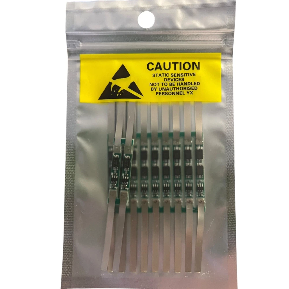 11pcs 3A 5A Protection Board for 1S 3.7V Li-ion Battery Cell Anti-static Pack Shipping from US Key Item Specifics : • Type: Protection Board for Li-ion Battery • Current Conversion: DC • Nominal Voltage Rating: 3.7V • Nominal Current Rating: 3A/5A • Mounting Style: Flat/PCB Assembly • Installation Area: Battery Protection Systems • Protection Properties: Overcharge, Over-discharge, and Short Circuit Protection • Color: Green PCB Board • Cable Length: Not Applicable • Maximum Operating Temperature: Up to 85°C • Minimum Operating Temperature: -20°C • Ripple & Noise: Minimal • Features: Lightweight, Durable, Pre-soldered Features: Protection Circuit Module (PCM): Designed to safeguard 3.7V Li-ion battery cells. Overcharge Protection: Ensures battery longevity and safety. Over-discharge Protection: Prevents battery damage from excessive discharge. Short Circuit Protection: Adds an extra layer of safety to connected devices. Compact Design: Lightweight and easy to integrate into battery packs. High-Quality PCB Construction: Durable and resistant to heat and stress. Description : The 11-piece Protection Board set is ideal for protecting your 1S 3.7V Li-ion battery cells. Each board supports either 3A or 5A current rating, providing robust safeguards against overcharging, over-discharging, and short circuits. Designed for DIY enthusiasts, professionals, or hobbyists, these boards are compact, easy to install, and reliable for various battery-powered projects.