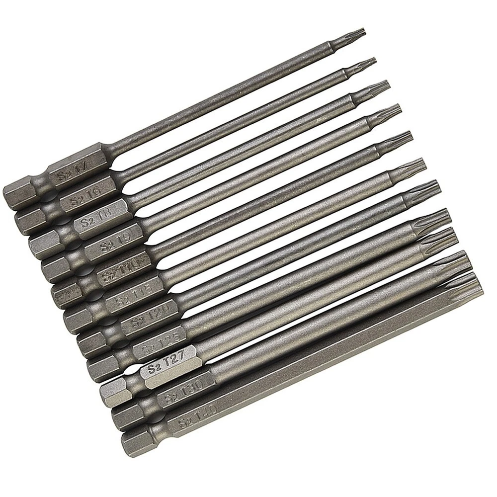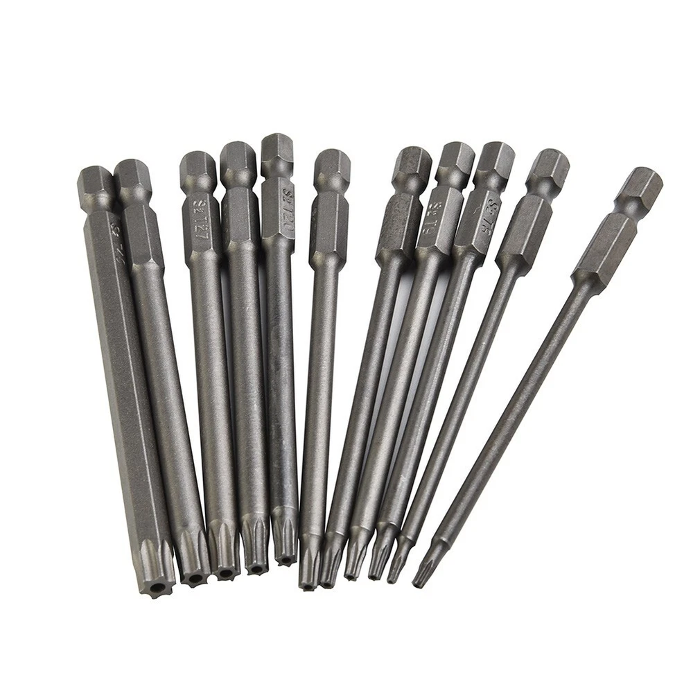 Product Description Features: * brand new and high quality. *Made of alloy steel. *Can be firmly fixed on screwdrivers, fit for electric screwdrivers, hand screwdrivers, electric drills, air drills and so forth. *High strength and hardness. *Easy to use. * in use. Specifications: Material: Alloy Steel Type of Head: for Torx Type of Shank: approx. 6.25mm / 1/4 inch hex Size: , T7, T8, for T9, for T10, for T15, for T20, for T25, T27, for T30, T40 Overall Length: approx. 100mm / 3.93 inch Package Contents: 11pcs x for Torx Screwdriver Bit Payment Payment must be completed within 5 days. If you have any problems about payment, please contact us via ebay message. Delivery details We only ship to confirmed ebay Order addresses. Please comfirm that your Order address is in line with your shipping address. Please kindly note that the c ombined shipping is not provided because the shipping fee is calculated by weight. Also, the each additional item means exactly the the same color and size. It takes about 7 -15 working days to US; about 10-30 working days to other countries. Transit time may be a little delayed because of the bad weather and customs inspection . If you do not receive your item within 30 working days since payment finished, please contact us immediately for further assistance. Contact us We strive for 100% customer satisfaction! Positive Feedback is very important to us. If you have any questions, p lease feel free to contact us via "Ask seller a question" . We will reply your email within 24 working hours.
