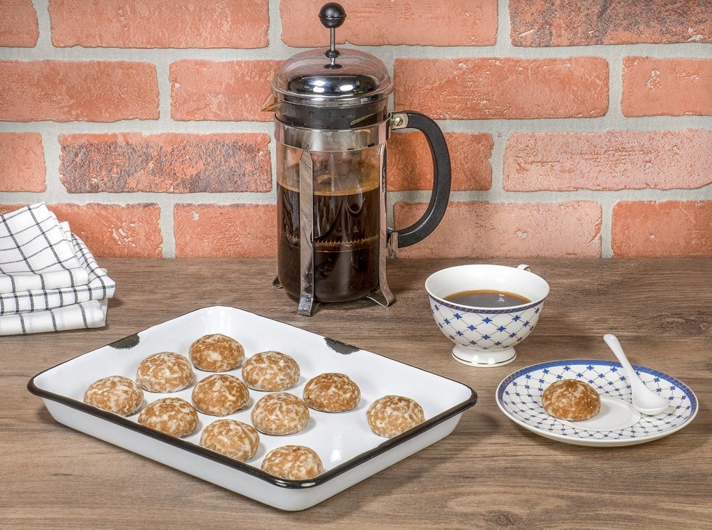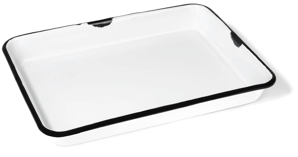 Bring classic, traditional camping style to your home kitchen with this enamel serveware. A big step up from disposable cutlery and safer than glass to use outside for picnics, outdoor barbecues, poolside parties, or gatherings on the patio. Simple yet practical, it is suitable for both home and professional use; it serves beautifully in diners, school and office canteens, cafeterias, bakehouses, coffee shops, bars, or restaurants. The tray is especially well-suited for catering, weddings, receptions, buffet-style get-togethers, family reunions, and everyday household use. It makes a great gift for housewarming parties and for family and friends who have a passion for food, cooking, and baking. Features a rectangular shape with a smooth, enameled white surface, black rim, and slight black distressing to perfectly complement vintage, shabby chic, antique, cottage, farmhouse, and country living décor An ideal serving vessel for salads, lasagnas, appetizers, cakes, meat, and fish dishes Lightweight, shatterproof, and easy to clean, it’s perfect for camping, BBQ, picnics and outdoor activities Made from the highest quality enameled metal, it is food, oven, freezer, and dishwasher safe (but not microwave safe) Dimensions: 11” L x 8.6” W x 1.3” H; Capacity: 2 quarts (1.9 liters or 66 fluid ounces); Wash before use