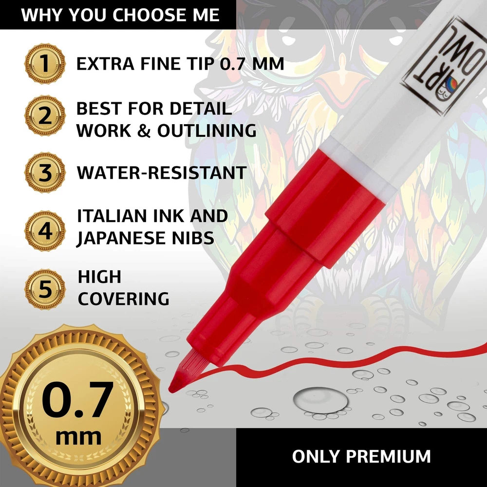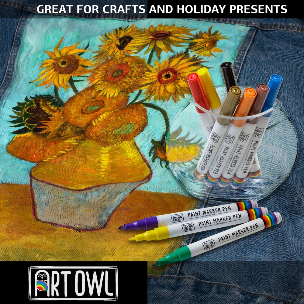 paint markers. Featuring an extra fine tip, these markers are ideal for calligraphy, hand lettering, illustration, scrapbooking, doodling, coloring, and graffiti. Quick drying paint pens are safe on skin. Waterproof after baking or sealing. Multi surface acrylic markers will be a great gift to a loved . Essentials acrylic paint marker kit for kindness rocks, customizing mugs, Christmas balls, mandalas, porcelain, pumpkin, rock river, photo albums, card stock, and paper projects. Ideal for art amateurs, professionals, and hobbyists. Before starting your project, vigorously shake pen for 15 seconds with lid on to activate mixing ball, depress nylon nib several times to . The marker is ready to use when tip holds paint. is a family-owned supplier of paint markers designed in the USA. 0.7mm extra fine Japanese tip, rich and opaque Italian Ink. Create detail and fine lines when sketching, painting, lettering, and drawing on rocks. You will enjoy DIY, craft, and art projects on many surfaces from paper, card stock, bullet journaling, rock, stone, ceramic, plastic, fabric, canvas, and wood slices. 12 popular colors: metallic gold and silver, white, black, red, yellow, blue, pink, green, brown, orange, and purple packaged in our cute aesthetic box. Every artist, student, or professional will utilize these primary colors in their illustrations and drawings. Outdoor or indoor paint pens are waterproof, fast drying, fade-free, UV resistant, no odor.