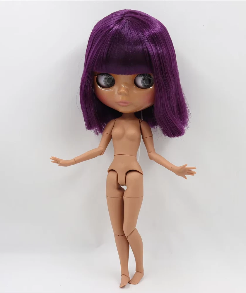 12" Blythe Doll Purple Hair Puppet Dark Skin Shiny Face BJD Toys Christmas Gifts There are just Limited quantity available! Get yours NOW before we run out!!! Step into a world of creativity and magic with our stunning 12-inch Blythe doll! Perfect for collectors and doll enthusiasts, this Blythe doll is ready to captivate hearts with her unique charm and endless possibilities for customization. Features: ✨ Expressive Eyes: Four different eye colors and positions with a simple pull of a string, reflecting her many moods and styles. 👗 Customizable Beauty: Change her hair, makeup, and style to create a doll that’s uniquely yours. 🌈 Premium Quality: Crafted from durable, high-quality materials to ensure she stands the test of time. 📏 Perfect Size: At 12 inches tall, she's the ideal size for both play and display. Why You'll Love Our 12" Blythe Doll: Endless Creativity: Perfect for photography, crafting, and artistic projects, she’s a blank canvas for your imagination. Community Connection: Join a worldwide network of Blythe enthusiasts who share your passion and creativity. Unique Gift Idea: A thoughtful and personalized gift for birthdays, holidays, or any special occasion, sure to delight both children and adults. Bring home the magic of the 12" Blythe doll today and dive into a world where imagination knows no bounds. Embrace the charm, creativity, and joy that only a Blythe doll can offer. Order now and let the adventures begin! Dolls are selling in nude, Not including clothes and accessories.
