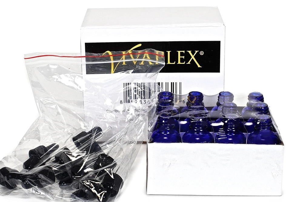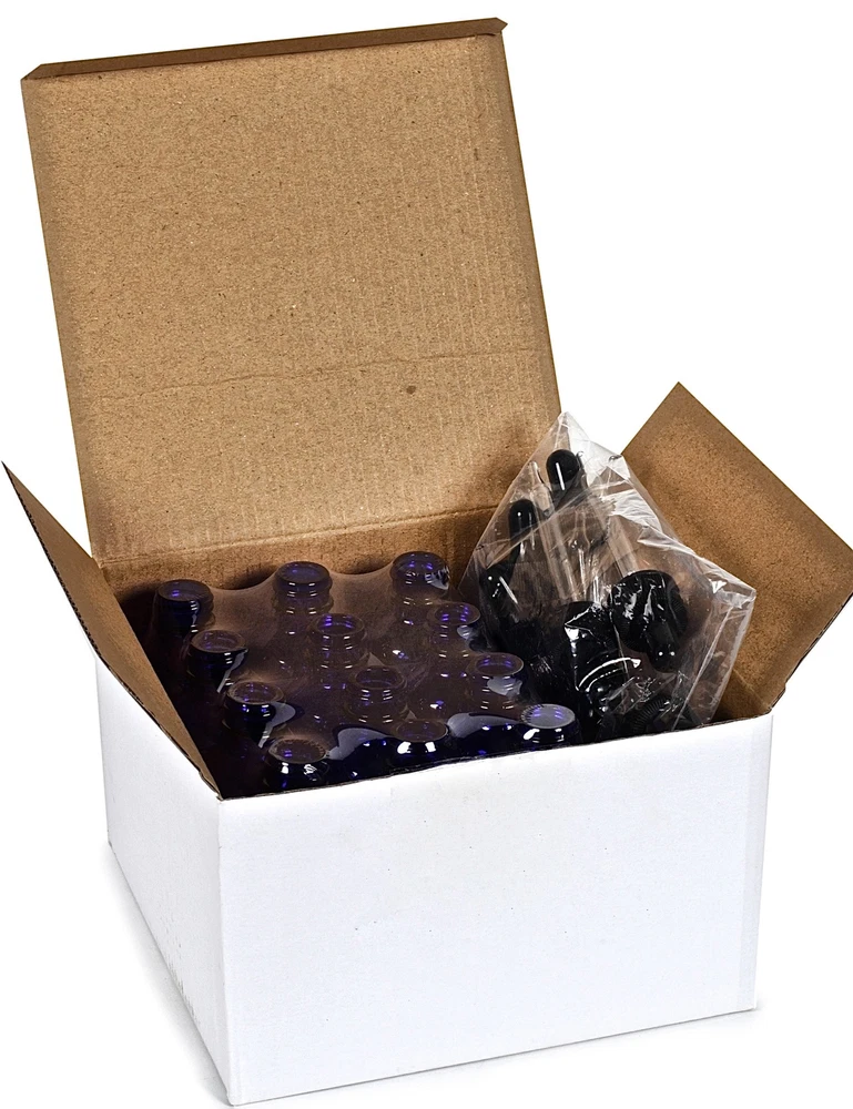 These high quality Cobalt Blue glass bottles with glass eye droppers, are perfect for storing your essential oils, perfumes or colognes. The Cobalt Blue glass provides protection from potentially harmful light and the convenient size makes it perfect for travel. The Eye Droppers allow for the perfect amount of product to be used every time. 12 - 1 oz, Cobalt Blue Glass Bottles, with Glass Droppers Perfect for essential oils, perfume oils, or other liquids Safe, secure and convenient packaging Perfect for travel, and conveniently fits in your purse Cobalt Blue Glass Protects Against Harmful UV Rays