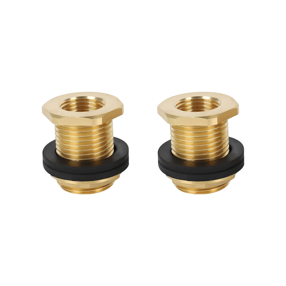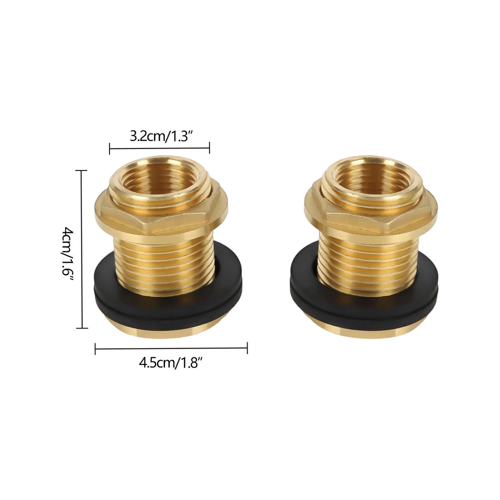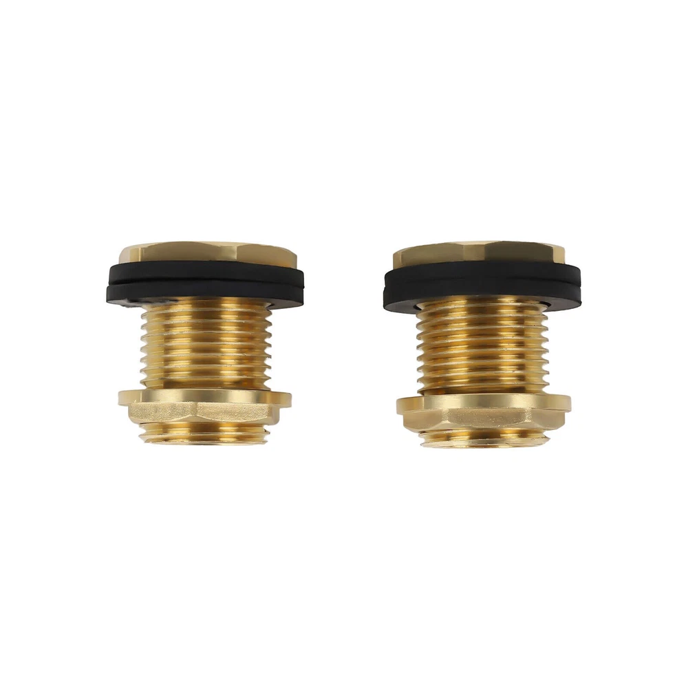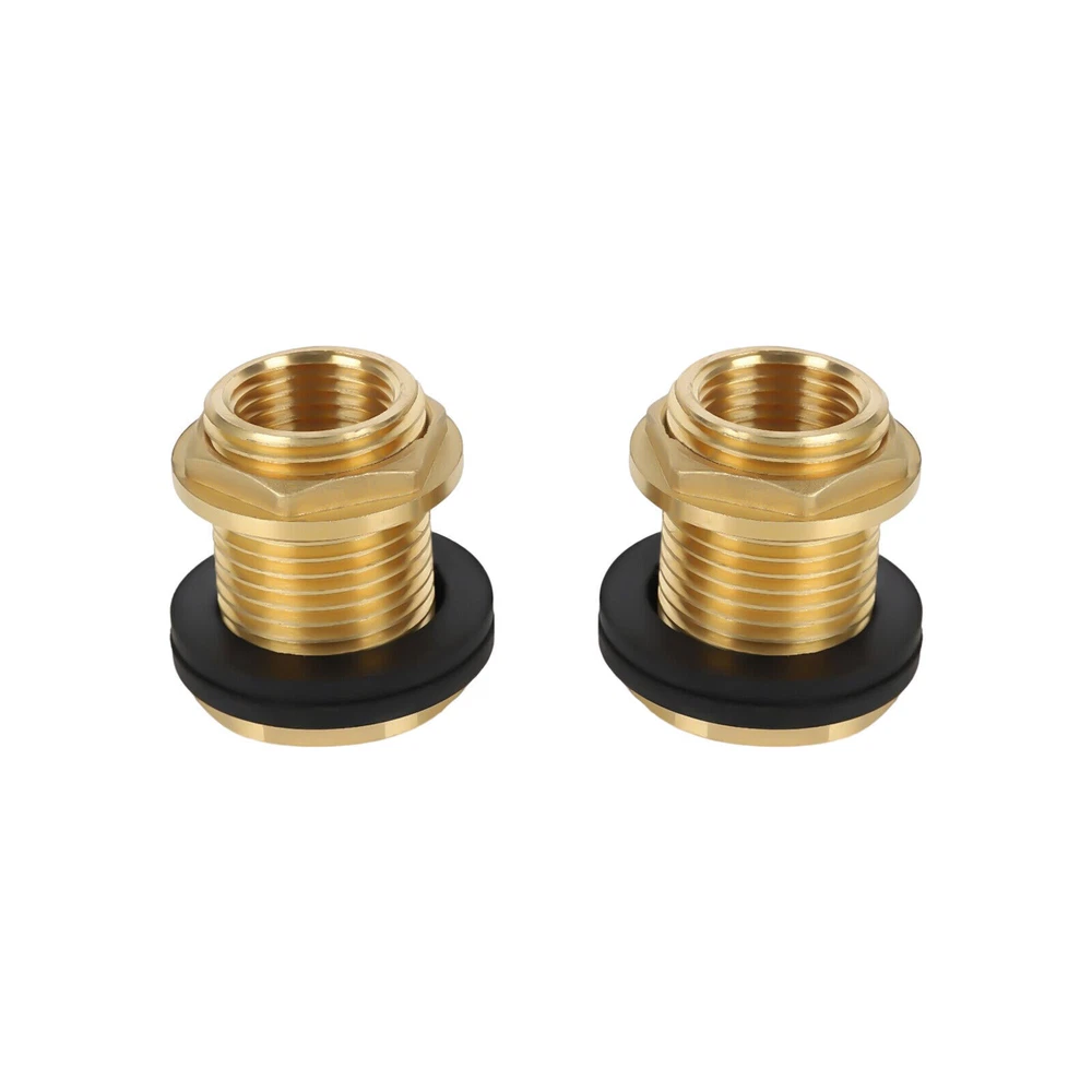 1/2" Female NPT 3/4" Male Soild Brass Water Tank Connector Theaded Bulkhead Set Description This water tank connector is made of premium brass, which is strong and durable. The threads and rubber rings can ensure a tight connection to prevent water leakage or falling off. Meanwhile, it can be used many times and is economic. It's your ideal choice! Key Features Premium Material: This product is made of brass with high ductility and low magnetic permeability, which is harmless, wear-resistant, corrosion-resistant, heat-resistant, strong, durable, and not easy to deform. So, it can be used many times, saving you a lot of money. Tightly Connected: The dense threads and rubber rings can ensure a tight connection between the product and the water tank, which can prevent water leakage or falling off. Highly Functional: It is used for connecting, terminating, controlling flow, and changing the direction of water flow. A Set of Two: This product includes a total of 2 water tank connectors, which is enough for you to use. Easy Installation: You just need to simply drill a hole of the appropriate size, then pass this connector through the bulkhead, pad the rubber ring, tighten the nut, and finally connect the water pipe with the appropriate size at the end. This is simple and can save you lots of time and effort. Easy to Clean: The surface of this product is smooth and flat, which is easy to clean. You just need to wipe it with a wet rag. Guaranteed Customer Service: We aim to provide quality products and services. If you have problems, please feel free to contact us. We will reply and solve the problem for you as soon as possible. Details Standard Thread: The GHT3/4 male thread makes it suitable for standard 3/4" garden hose fittings. Meanwhile, the 1/2NPT female thread makes it suitable for 1/2" hoses, faucets, pipe fittings, etc. Solid Brass: It makes the product stronger and more durable, which can extend its service life. Application It can be used in water towers, water inlets, water outlets, and self-made water storage barrels, and can be used for various pipes, faucets, hoses, fittings, etc. Specification Color: Gold Material: Brass Style: Modern Suitable Hole Diameter: 1-1/16-1-1/8inch Male Thread: GHT3/4 Female Thread: 1/2NPT Net Weight: 0.2kg/0.44lbs Gross Weight: 0.3kg/0.66lbs Package Size: 5.5*7*4cm/2.2*2.8*1.6inch Each Connector Upper Diameter: 3.2cm/1.2inch Each Connector Lower Diameter: 4.5cm/1.7inch Each Connector Height: 4cm/1.5inch Package Included 2 Sets* Water Tank Connectors Notes Please allow the slight color difference caused by the shooting light and 1-3cm error due to manual measurement, and make sure you do not mind before ordering. Payment Delivery details Terms of sales About us Contact us Payment We accept ebay payment 。 Fees such as import duties, taxes are not included in the item price or shipping costs. These charges are the buyer's responsibility. Delivery details Shipping: 2-9 working days to: USA Terms of sales We maintain high standards of excellence and strive for hundred percent customer satisfaction. Feedback is very important to us. We hope that you contact us immediately before you give neutral or negative feedback, so that we can address your concerns. It is impossible to address issues if we do not know about them! About us Your satis faction is our ultimate goal. We work hard to earn your trust and future business. Our certified technicians have tested each item before shipping. The unit comes with 1 year limited warranty on all manufacturing defects. a) If you receive a defective item, you may return it or ask for a discount. Please contact us within 14 days after you receive the package. b) What you returned must be intact and in its original packaging as re? u. Customer is responsible for shipping costs of the returned item. c) We will cover the cost of shipping back t with the shipping rate indicated in the registration page. We will send you a new unit or refund the full payment you paid. Thank you. Contact us Business Hour Business Hour: Monday To Friday: 8:30 AM to 5:00 PM (Beijing China time) Due to time zones, our reply to your questions may not be immediately. But within above working time, we will reply your email within 24 hours. If it's non-workdays, please kindly be patient and wait till Monday. Please contact us with ebay message. Please feel free to contact us if you have any questions. Monday To Friday: 8:30 AM to 5:00 PM (Beijing China time) Due to time zones, our reply to your questions may not be immediately. But within above working time, we will reply your email within 24 hours. If it's non-workdays, please kindly be patient and wait till Monday. Please contact us with ebay message. Please feel free to contact us if you have any questions. Features Fast shipping from US Warehouse Feature: Stable Performance and High Quality Type Water Tank Connector MPN Does Not Apply Brand Unbranded Colour Gold Material Brass Control Style Modern Suitable Hole Diameter 1-1/16-1-1/8inch Male Thread GHT3/4 Female Thread 1/2NPT Net Weight 0.2kg/0.44lbs Each Connector Upper Diameter 3.2cm/1.2inch Each Connector Lower Diameter 4.5cm/1.7inch Each Connector Height 4cm/1.5inch