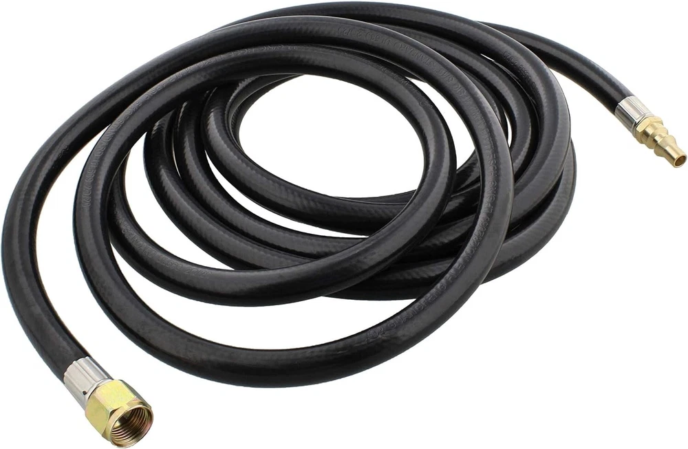 [Secure Your Propane Connections]: Connect your propane tank to the heater and grill for your RV with the Dumble RV Supplies Low Pressure LP Gas Regulator 12-Foot Hose; Safely and securely attach the propane to your desired source [No More Leaks]: No need to worry about this propane regulator hose leaking valuable gas; Flexible rubber hose is constructed to reliably transfer propane to your heater; Hose measures 144 inches (3.6m) long [In Rain or Shine]: Depend on this propane tank hose for your camper and RV; Use propane tank regulator hose indoors and outdoors on the campground, at the cabin, and other camping locations [Correct Connection]: Low pressure regulator hose includes 1/4-inch male quick disconnect fitting; This LP pressure regulator hose also includes 3/8-inch female flare swivel connect for your RV and camper propane tank [For Your Needs]: This flexible propane regulator low pressure hose is designed with your applications in mind; Use propane hose for your grill, heater, fire pit, water heater, and other RV and camper appliances; Not designed for air pressure