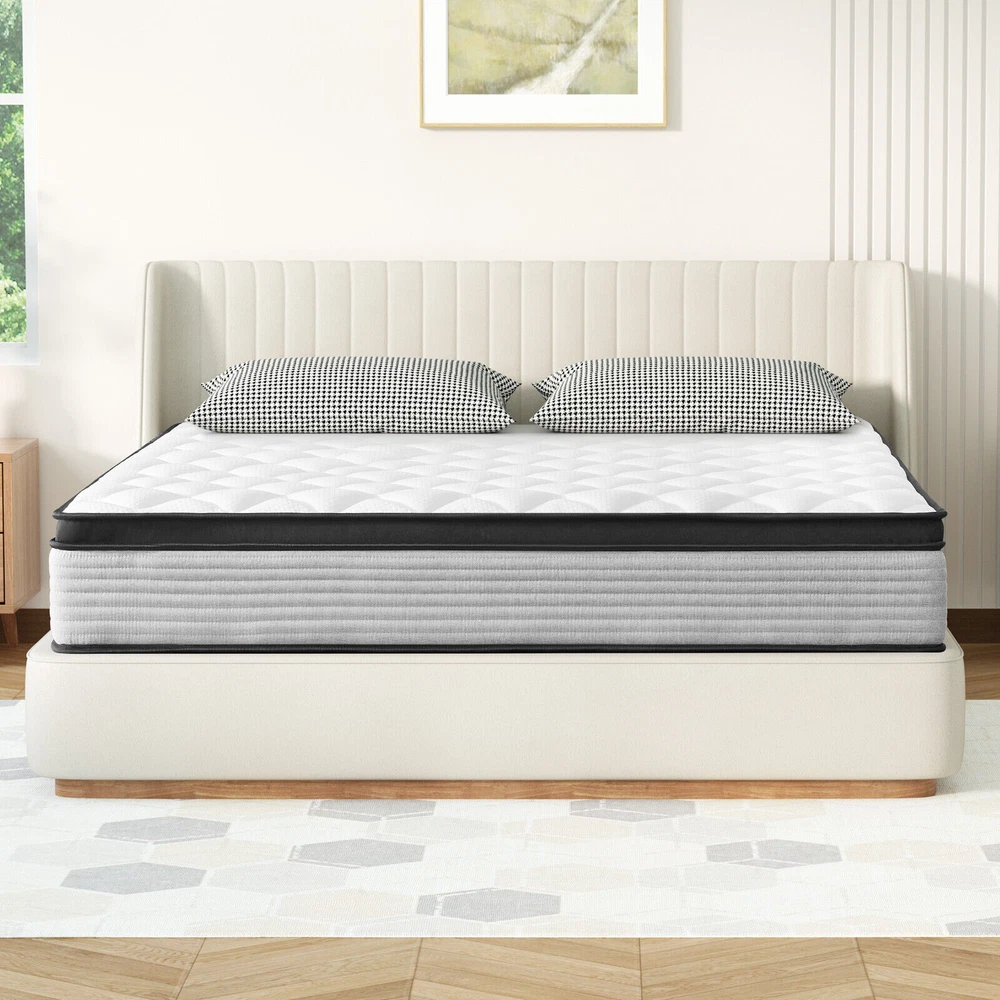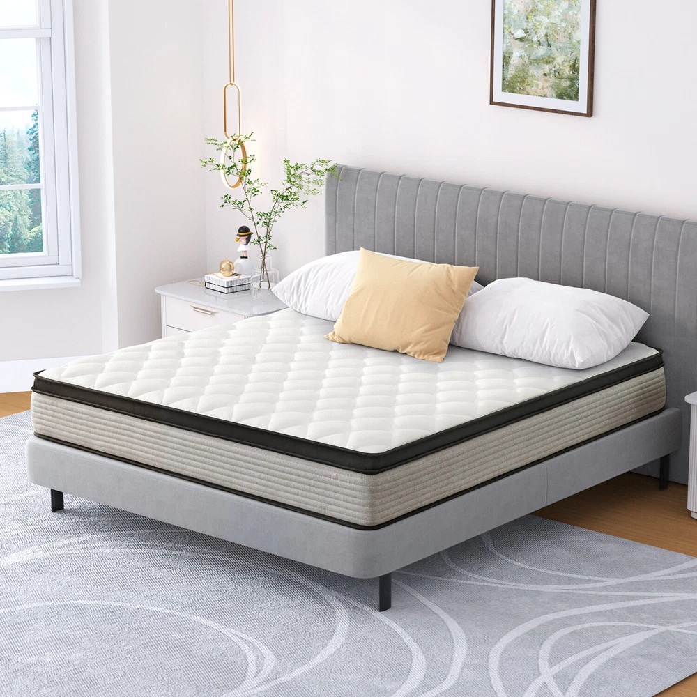 Features & details [Individual Pocket Springs]: Our Hybrid Mattresses include all the benefits of the mattress plus our innerspring unit with independent non-woven fabric. The edges are reinforced to give you extra support and eliminate that “roll-off-the-edge” feeling. And it provides better motion isolation and less noise. Our mattresses effortlessly absorb partner movement so that you can get healthy sleep. [High-quality Foam]: Mattresses are covered by good-quality knitted fabrics which are naturally hypoallergenic and perfect for kids or adults and multiple layers of high-quality foam which is ventilated and breathable. [Motion Isolation]: The parallel arrangement of pocket coils is adopted. When you sleep with your lover, it will not interfere with your sleep. You can achieve a quiet and comfortable sleep. [Comfortable Sleep]: Our new design with a hybrid construction of individual pocket springs. Our mattresses are medium firm. Better motion isolation and less noise ensure that you will not be awakened. [Mattress in a Box]: This memory foam and spring hybrid mattress is compressed, rolled & shipped in a box conveniently to your door for easy setup. For a better sleeping experience, please allow at least 72 hours for the mattress to fully expand. [Best Service]: Customer satisfaction is our top priority. If you have any questions or suggestions about our mattresses, please feel free to contact us at any time. Product information Firmness: Medium Firm Colour: Blue Thickness : 10 in / 12 in / 14 in 10 Inch Overall dimension/Weight: Twin: 75" x 39" x 10" / 45 lb Full: 75" x 54" x 10" / 63 lb Queen: 80" x 60" x 10" / 73 lb King: 80" x 76" x 10" / 93 lb 12 Inch Overall dimension/Weight: Twin: 75" x 39" x 12" / 50 lb Full: 75" x 54" x 12" / 68 lb Queen: 80" x 60" x 12" / 77 lb King: 80" x 76" x 12" / 96 lb 14 Inch Overall dimension/Weight: Twin: 75" x 39" x 14" / 55 lb Full: 75" x 54" x 14" / 74 lb Queen: 80" x 60" x 14" / 85 lb King: 80" x 76" x 14" / 105 lb