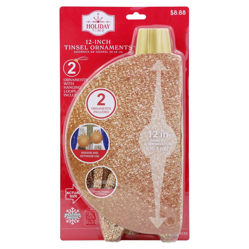 12`` GOLD ORNAMENT 2 ornaments with hanging loops included 12" diameter once fully inflated Outdoor and indoor use