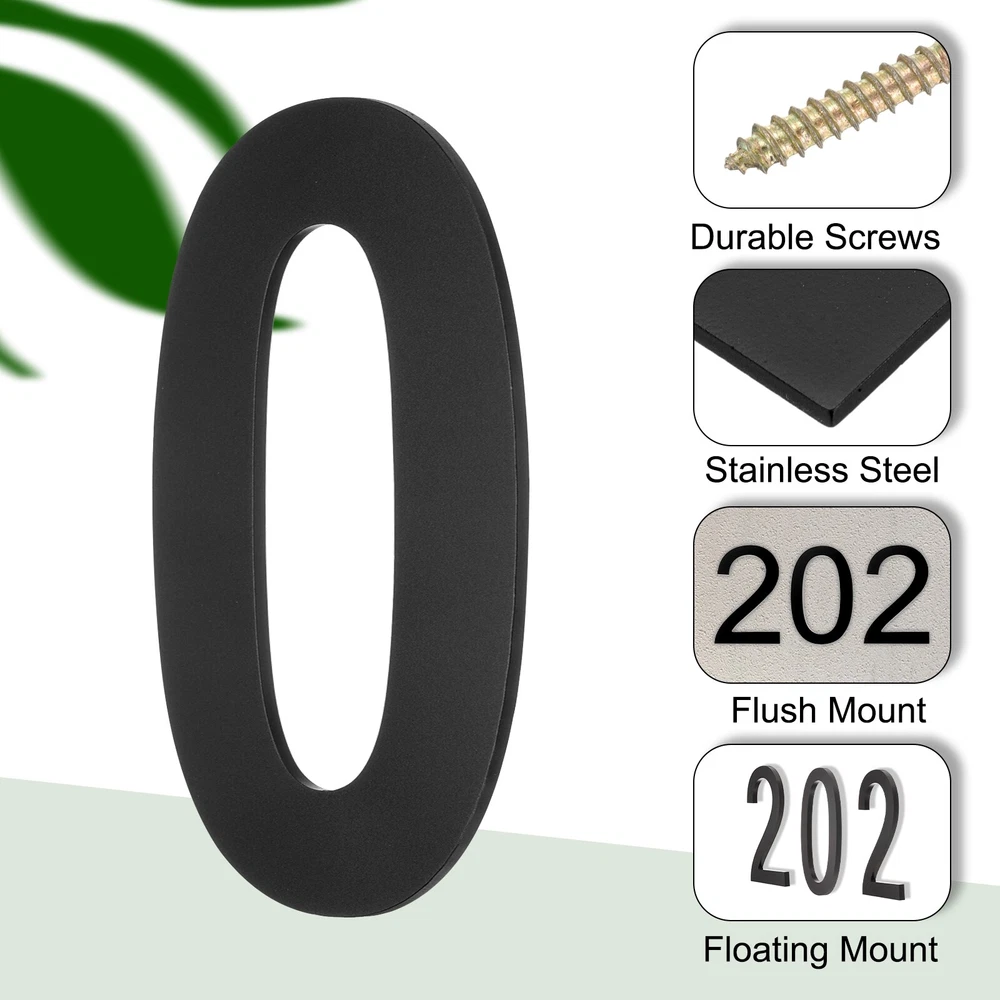 Document Package Content: You will receive 1 pcs house number with mounting hardware and instructions. Overall Dimension: 30cmx13cmx2mm / 12x5.1x0.1inch (H*W*Thickness). Please make sure the size and the quantity you need before you place an order.Premium and Durable: Made of stainless steel with a sleek black matte finish, this door sign is built to withstand various weather conditions, making it good for outdoor use. The rust-resistant coating ensures long-lasting durability without any signs of corrosion.Enhanced Visibility: The modern house number creates a striking shadow effect on your exterior, providing excellent visibility for your address. The floating installation method delivers impressive 3D shadow effects, meeting the visibility standards of emergency services.Simple Installation: With easy-to-follow instructions, mounting this house number using a drill gun takes just a few minutes and can be done on any wall surface. Choose from vertical, horizontal, 3D with padding for enhanced depth, or flush installation without padding to match your preferred style.Versatile Usage: The house number adds a visually appealing touch to any space that requires clear identification. Suitable for a wide range of locations such as homes, gardens, mailboxes, warehouses, offices, apartments, hotels, restaurants, coffee shops, parking areas, commercial buildings, and more. 12 Inch Floating House Number, Stainless Steel (Number 0, Matte Black) Package Content : You will receive 1 pcs house number with mounting hardware and instructions. Overall Dimension: 30cmx13cmx2mm / 12x5.1x0.1inch (H*W*Thickness). Please make sure the size and the quantity you need before you place an order. Premium and Durable : Made of stainless steel with a sleek black matte finish, this door sign is built to withstand various weather conditions, making it good for outdoor use. The rust-resistant coating ensures long-lasting durability without any signs of corrosion. Enhanced Visibility : The modern house number creates a striking shadow effect on your exterior, providing excellent visibility for your address. The floating installation method delivers impressive 3D shadow effects, meeting the visibility standards of emergency services. Simple Installation : With easy-to-follow instructions, mounting this house number using a drill gun takes just a few minutes and can be done on any wall surface. Choose from vertical, horizontal, 3D with padding for enhanced depth, or flush installation without padding to match your preferred style. Versatile Usage : The house number adds a visually appealing touch to any space that requires clear identification. Suitable for a wide range of locations such as homes, gardens, mailboxes, warehouses, offices, apartments, hotels, restaurants, coffee shops, parking areas, commercial buildings, and more. Hot Item Payment 1.We accept eBay payment . 2.Payment must be received within 7 business days of auction closing. Shipping 1.We ship to your eBay or Paypal address. Please make sure your eBay and Paypal address is correct before you pay. 2.Items will be shipped within 1-3 business day when we received payment. 3.Delivery time depends on destination and other factors. Description Policy 12 Inch Floating House Number, Stainless Steel (Number 0, Matte Black) Package Content : You will receive 1 pcs house number with mounting hardware and instructions. Overall Dimension: 30cmx13cmx2mm / 12x5.1x0.1inch (H*W*Thickness). Please make sure the size and the quantity you need before you place an order. Premium and Durable : Made of stainless steel with a sleek black matte finish, this door sign is built to withstand various weather conditions, making it good for outdoor use. The rust-resistant coating ensures long-lasting durability without any signs of corrosion. Enhanced Visibility : The modern house number creates a striking shadow effect on your exterior, providing excellent visibility for your address. The floating installation method delivers impressive 3D shadow effects, meeting the visibility standards of emergency services. Simple Installation : With easy-to-follow instructions, mounting this house number using a drill gun takes just a few minutes and can be done on any wall surface. Choose from vertical, horizontal, 3D with padding for enhanced depth, or flush installation without padding to match your preferred style. Versatile Usage : The house number adds a visually appealing touch to any space that requires clear identification. Suitable for a wide range of locations such as homes, gardens, mailboxes, warehouses, offices, apartments, hotels, restaurants, coffee shops, parking areas, commercial buildings, and more. Hot Item Payment 1.We accept eBay payment . 2.Payment must be received within 7 business days of auction closing. Shipping 1.We ship to your eBay or Paypal address. Please make sure your eBay and Paypal address is correct before you pay. 2.Items will be shipped within 1-3 business day when we received payment. 3.Delivery time depends on destination and other factors.