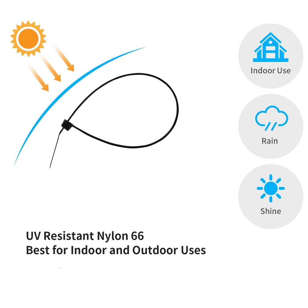 【After Sales Warranty 】If You have any dissatisfaction with the product, We offer a 30-day refund/return policy. What provide is not only good products, but also quality services. Try it, completely risk-free! Hurry up and click to add to the shopping cart! 【Zip Tie Details】 Specifications Length: 12in | Width: 0.18in | Maximum Diameter: 3.2in | Tensile Strength: 50 Lbs | Color: Black | Quantity: 1,000 Packs, So You Don'T Have To Worry About Running Out Mid-Project 【Nylon-PA66】 Zip Ties Are Made Of PA66 Nylon Withstands temperature extremes from -40°F to 185°F, including ice, rain, snow, heat and direct sunlight low temperature corrosion 【Indoor And Outdoor Use】 Used for a variety of purposes such as electronics, electrical appliances, communications, machinery, automotive, aerospace and other areas of the fixed material, but also can be used to fix the Christmas tree, furniture, toys, gift packaging, tents, luggage 【International Brand】 Zip Ties Have Been Chosen By Over 10 Million Customers Since 2010, Selling Well In More Than 100 Countries. Experience The Power Of A High-Quality Product 【Long Warranty】 Enjoy Peace Of Mind With Our 1-Year Warranty Period. If You Encounter Any Quality Issues Within This Time, We Offer A 100% Refund