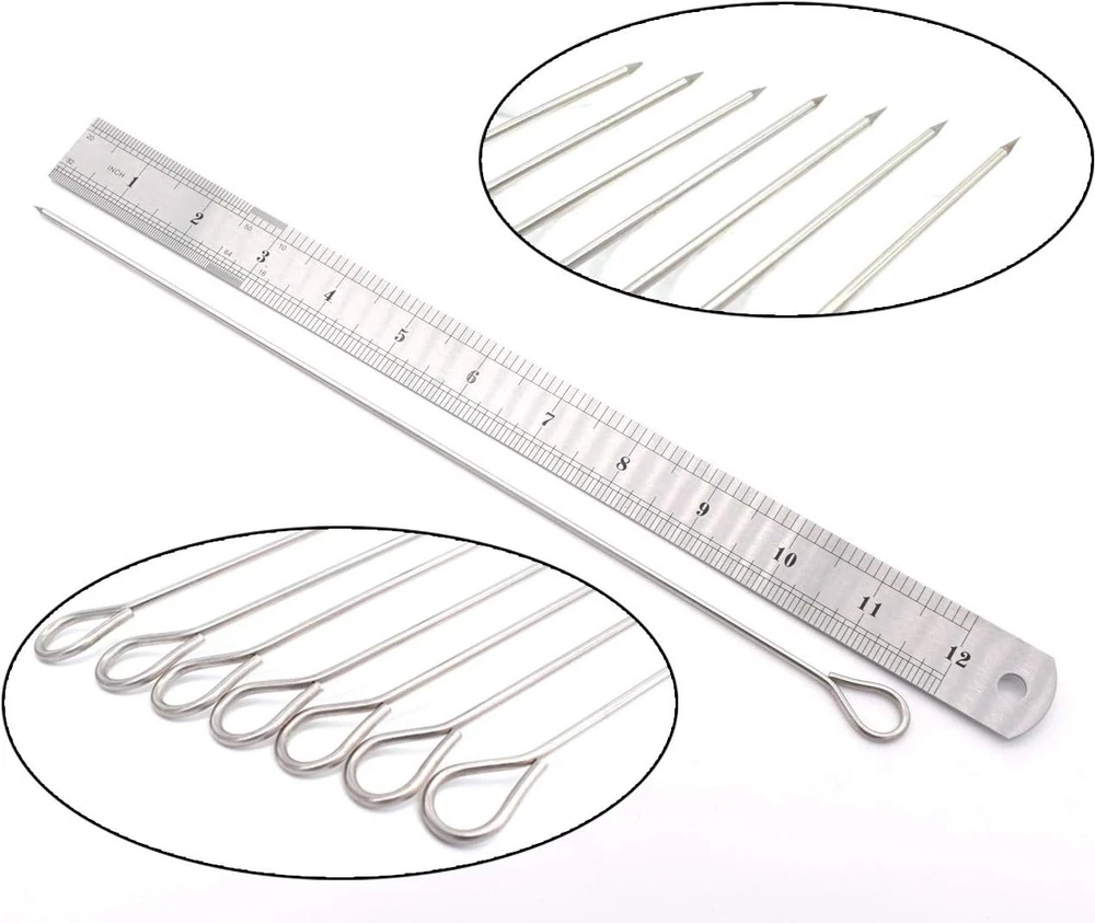 12 Inch Long Metal BBQ Kabob, Stainless Steel Skewers 12Inch Skewers-30p Product Details Material: Stainless Steel Color: 12Inch BBQ Skewers-30p Item Length: 12 Inches Brand: HONSHEN Item Weight: 0.38 Kilograms Number of Pieces: 12 UPC: 798610407257 Item Weight: 13.4 ounces Manufacturer: HONSHEN Item model number: 12in-30 Barbecue Skewers is stainless steel and offer the most reliable and reusable grill accessories for any outdoor barbecue, picnic, cooking kitchen, restaurant, and home dinner; Ring-tip handle for finger-tip handling; Ease to clean, dishwasher safe; Each stainless steel kebab/kabob skewer measures (30cm)12 inches long and comes in a pack of 30. Just enough to keep your barbecue and outdoor picnic grilling for everyone to get some chicken, shrimp, beef, peppers, and all other meats HONSHEN 12 Inch 30Pcs Barbecue Skewers is stainless steel and offer the most reliable and reusable grill accessories for any outdoor barbecue, picnic, cooking kitchen, restaurant, and home dinner.
